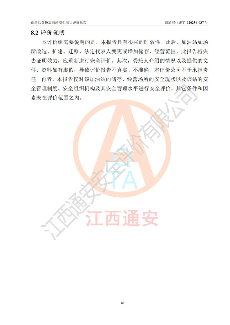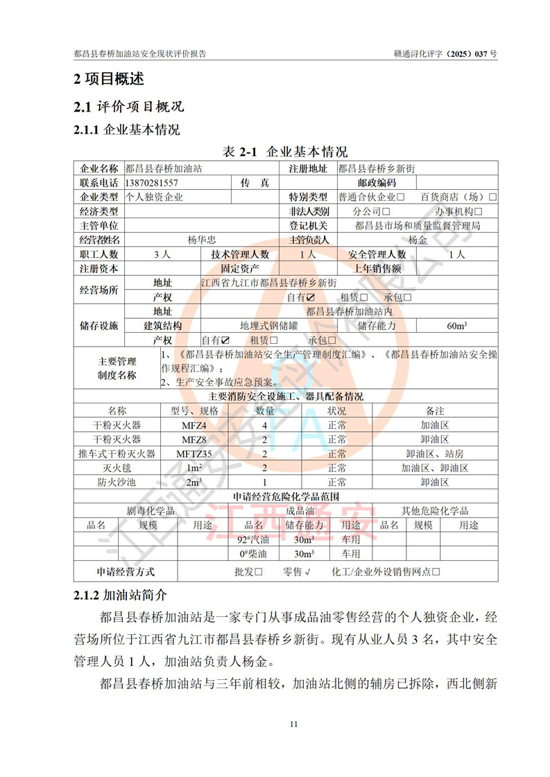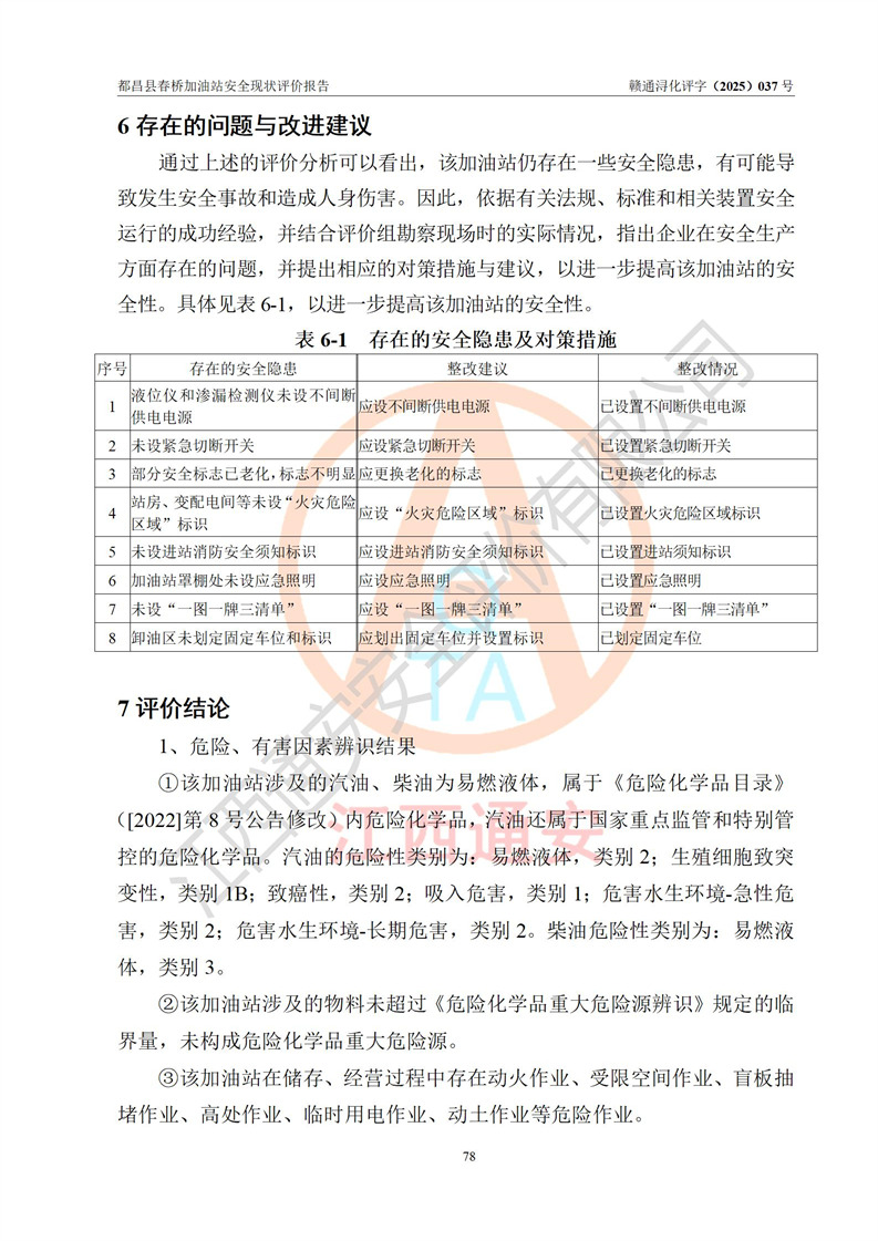 評價報告名稱 | 都昌縣春橋加油站安全現(xiàn)狀評價報告 | |||