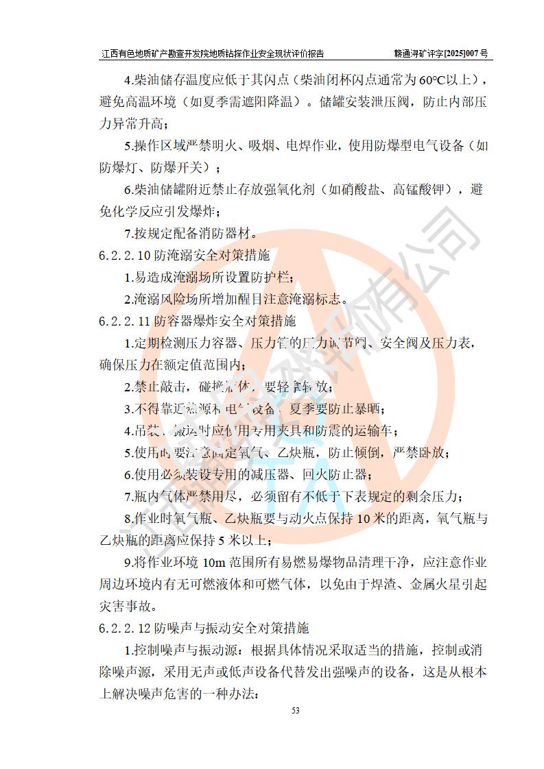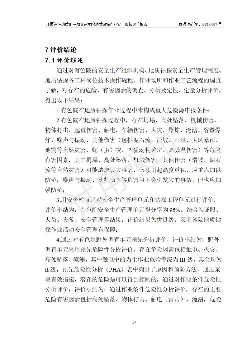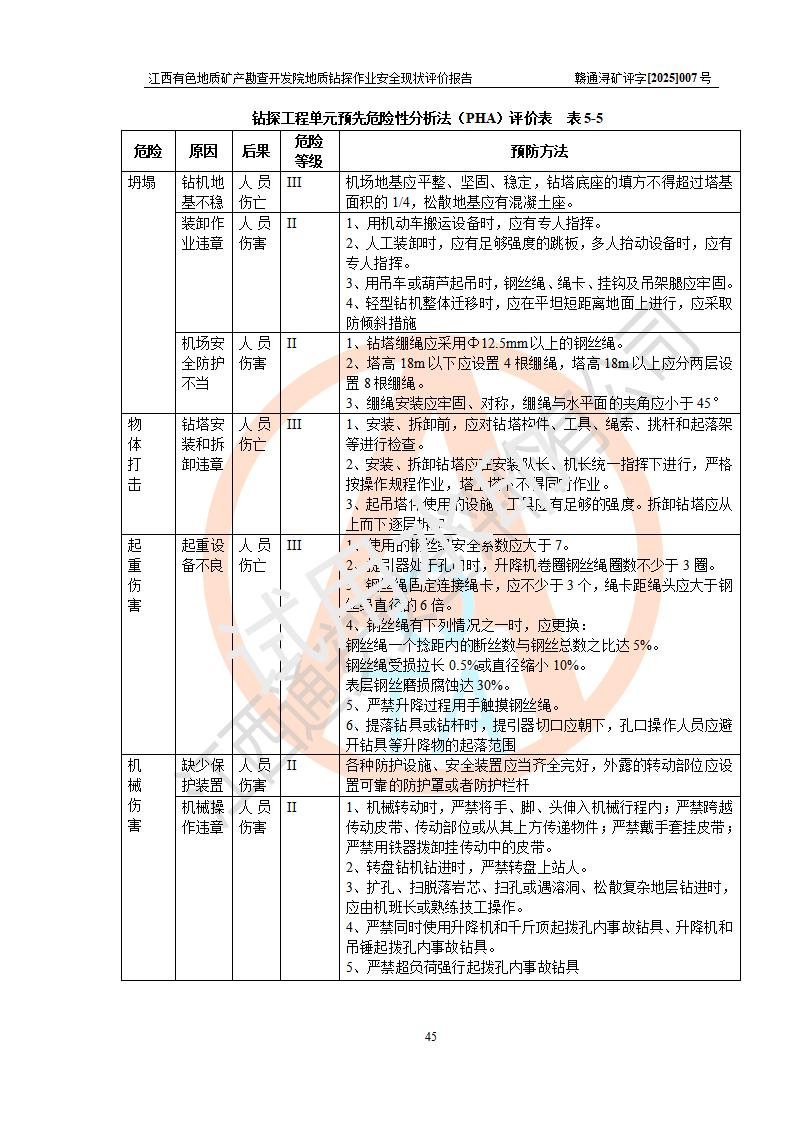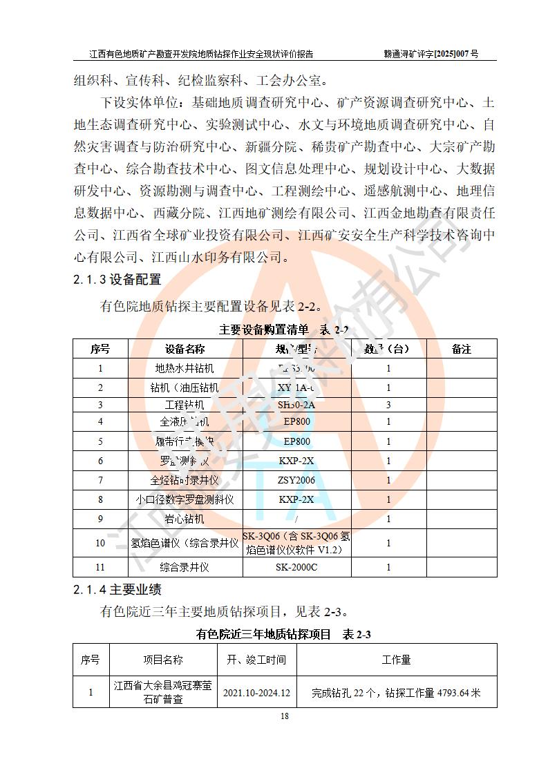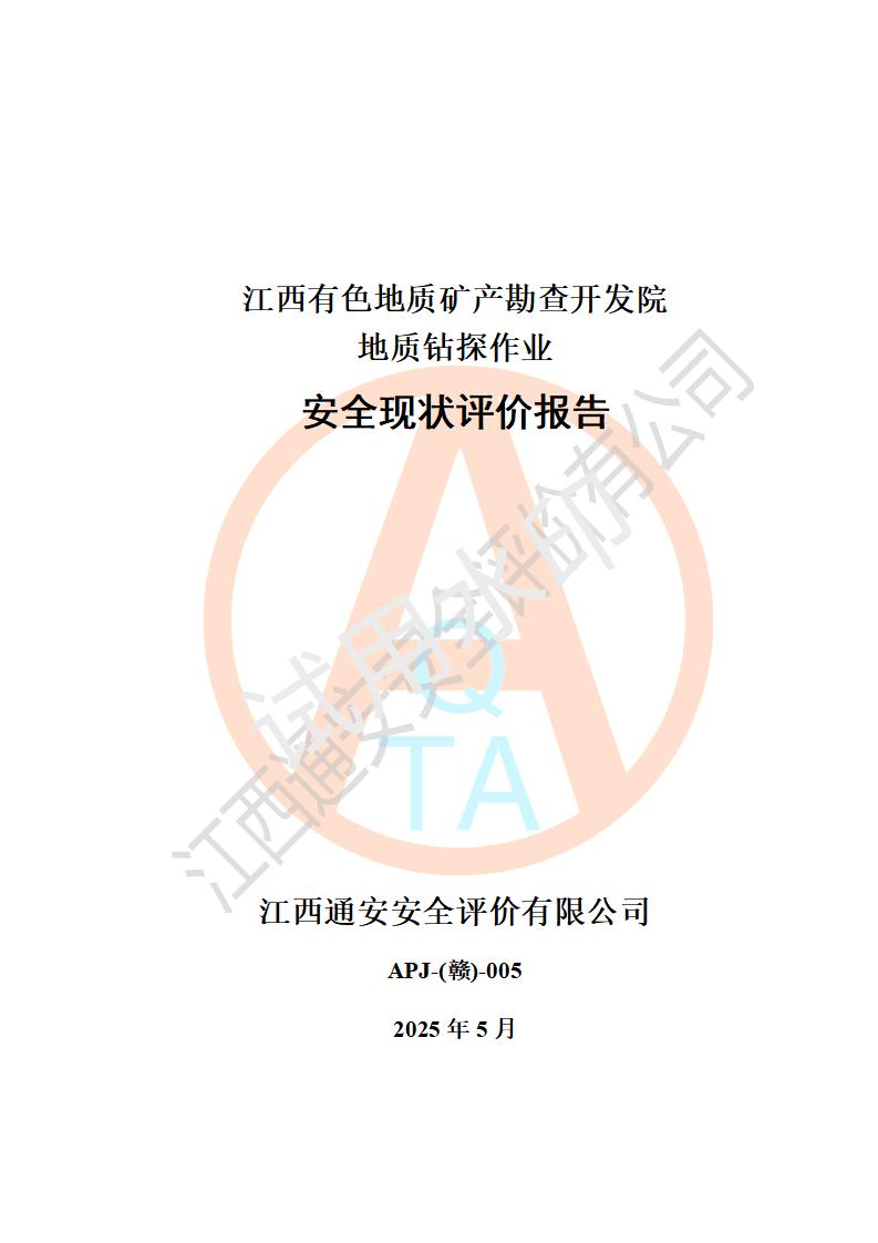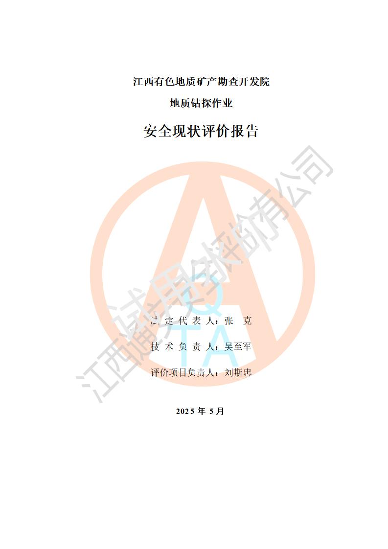 報(bào)告名稱 | 江西有色地質(zhì)礦產(chǎn)勘查開發(fā)院地質(zhì)鉆探作業(yè)安全現(xiàn)狀評(píng)價(jià)報(bào)告 | |||||