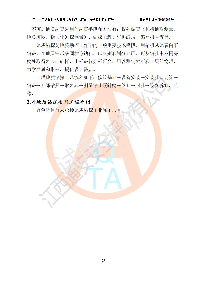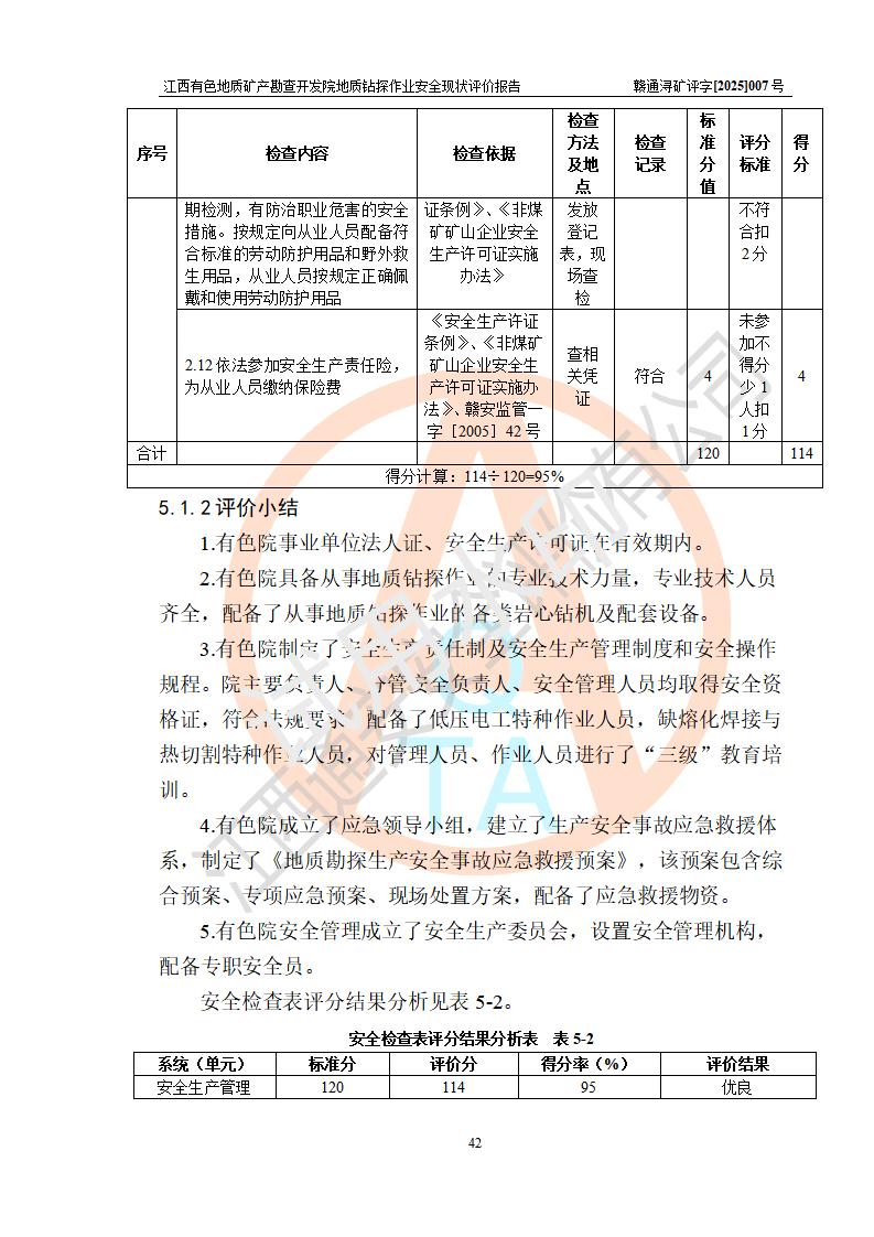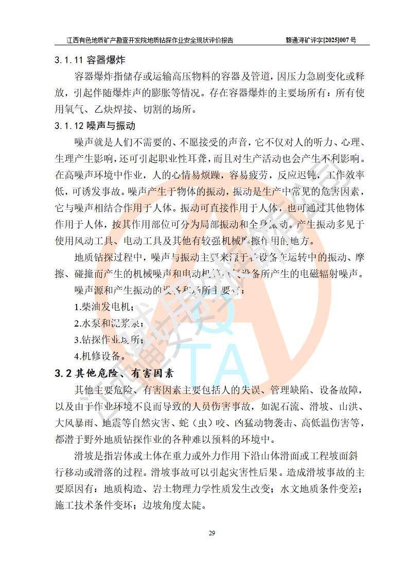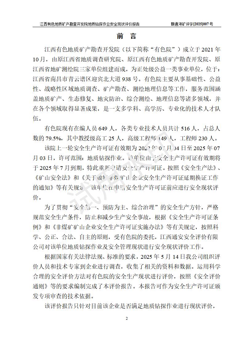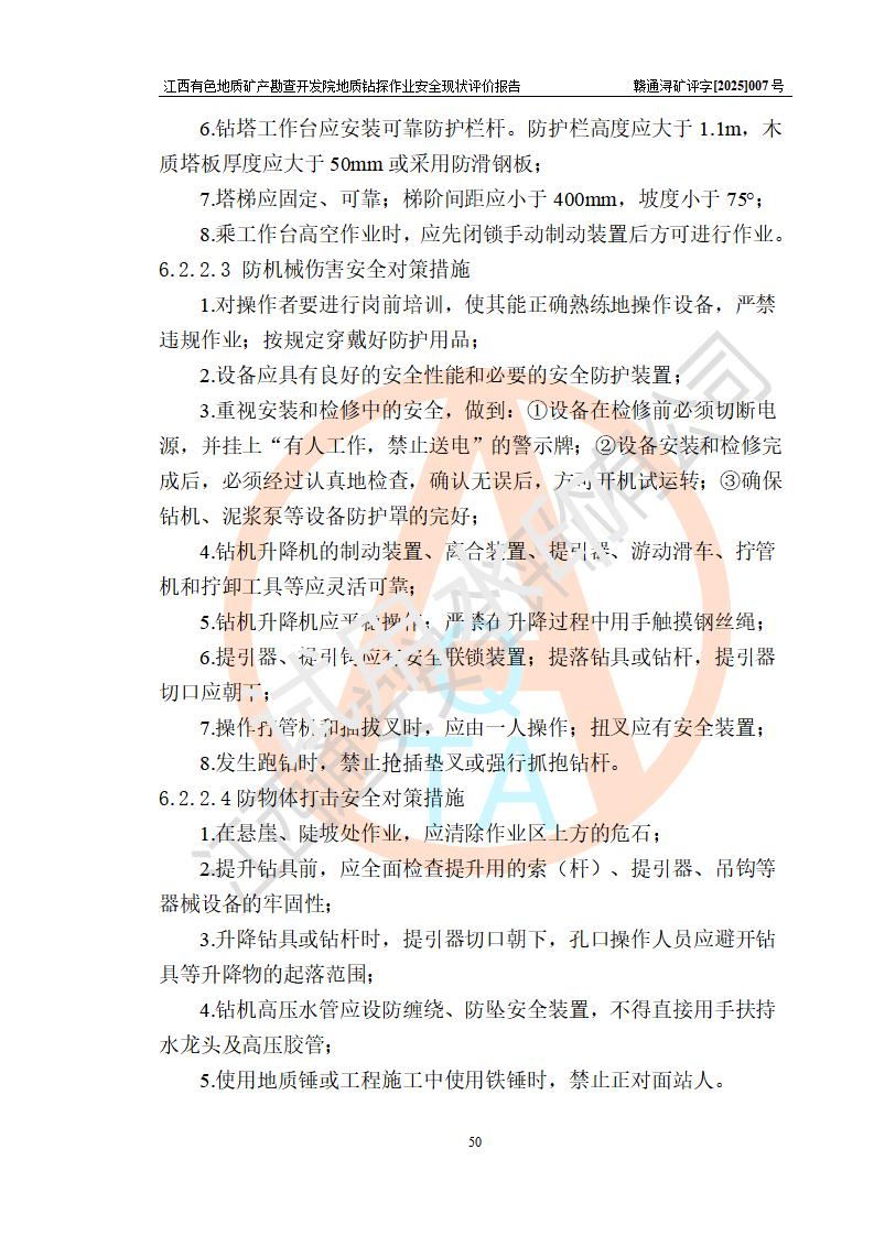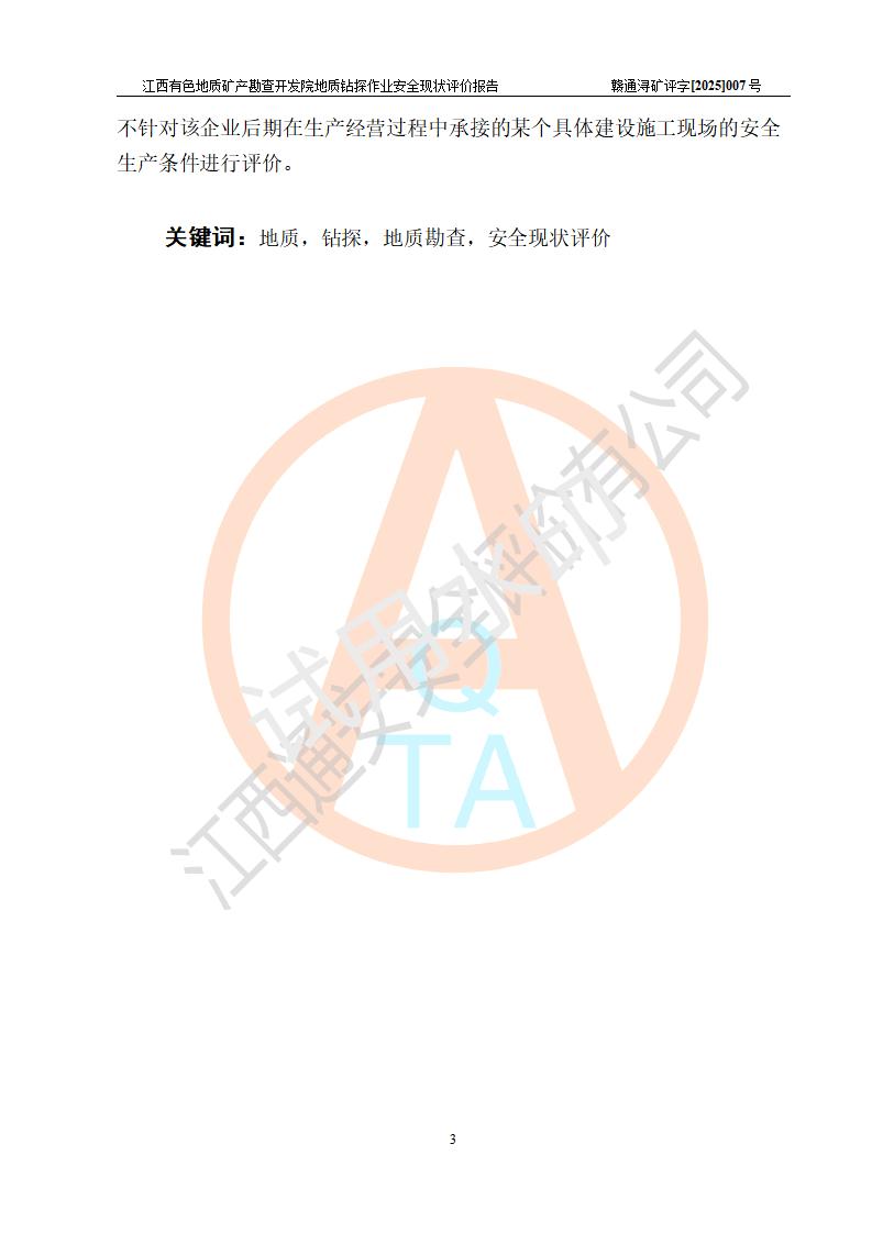 報(bào)告名稱 | 江西有色地質(zhì)礦產(chǎn)勘查開發(fā)院地質(zhì)鉆探作業(yè)安全現(xiàn)狀評(píng)價(jià)報(bào)告 | |||||