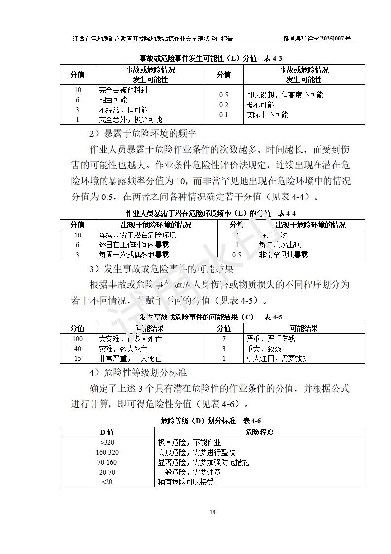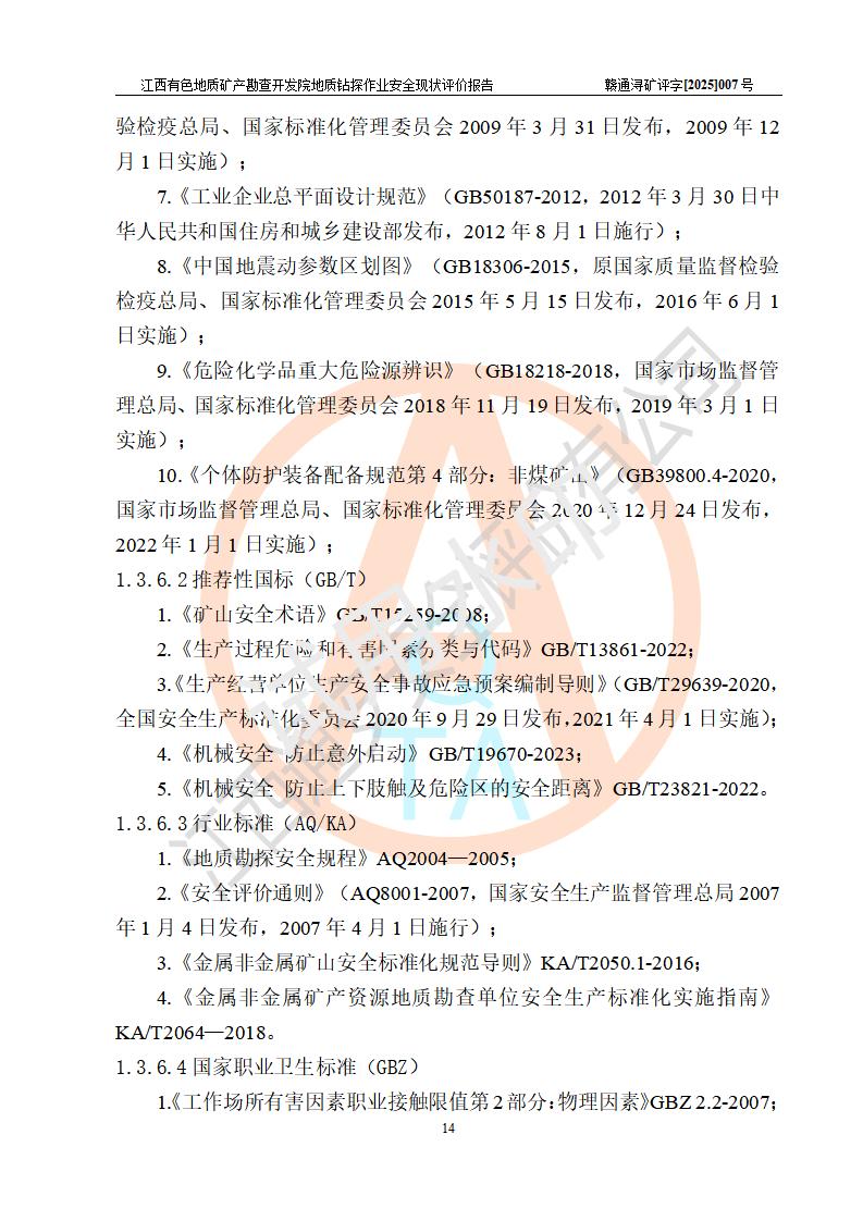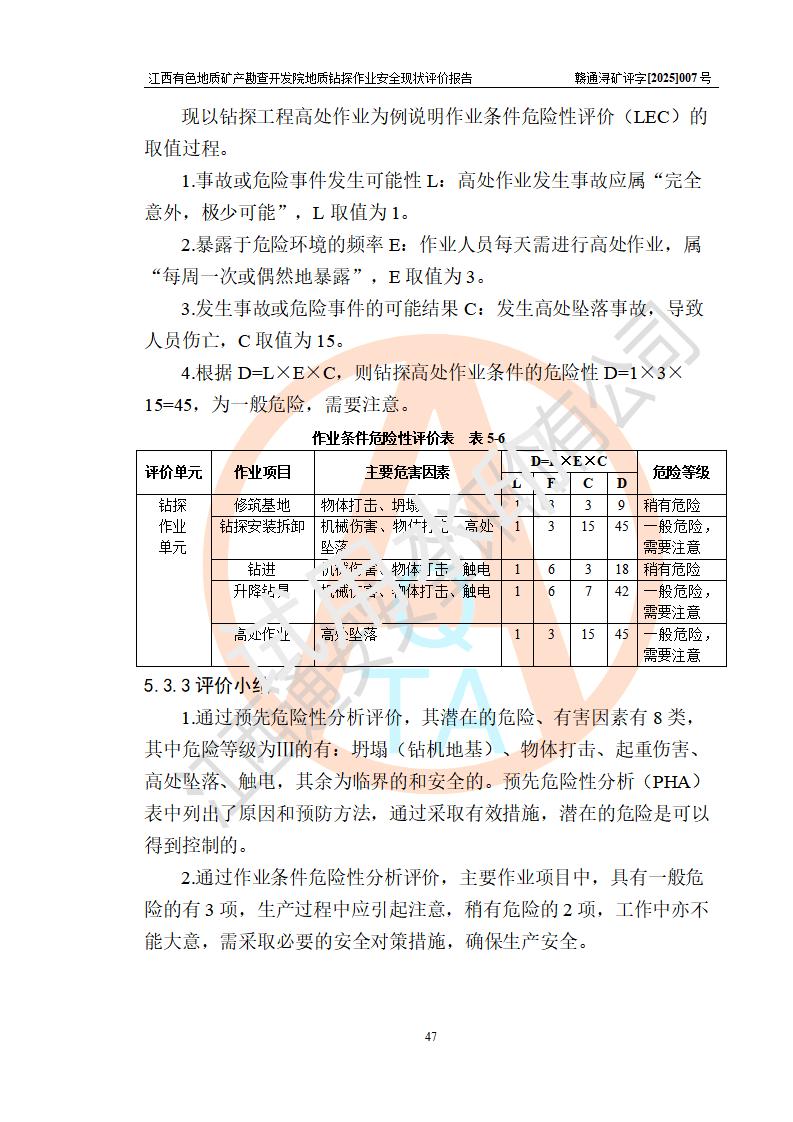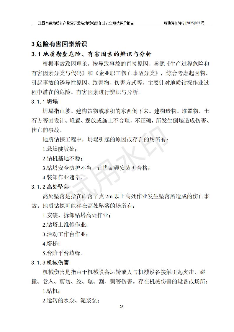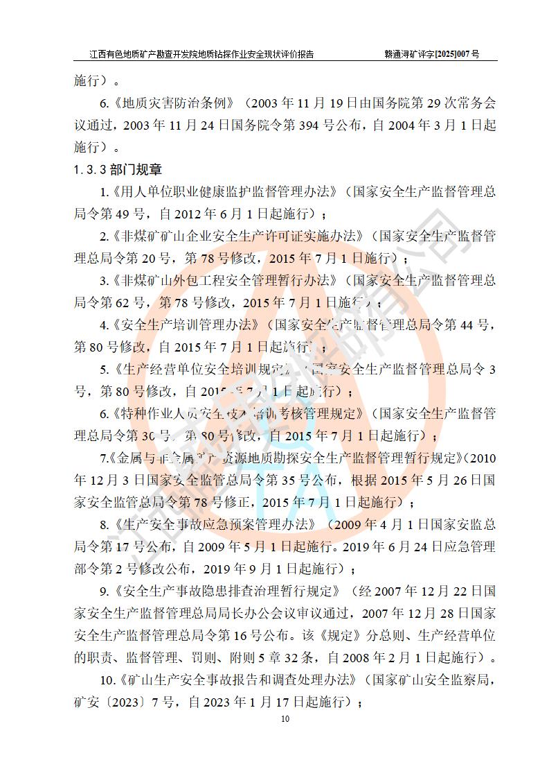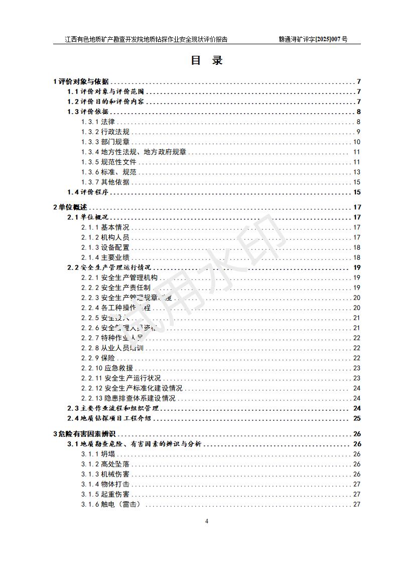 報(bào)告名稱 | 江西有色地質(zhì)礦產(chǎn)勘查開發(fā)院地質(zhì)鉆探作業(yè)安全現(xiàn)狀評(píng)價(jià)報(bào)告 | |||||