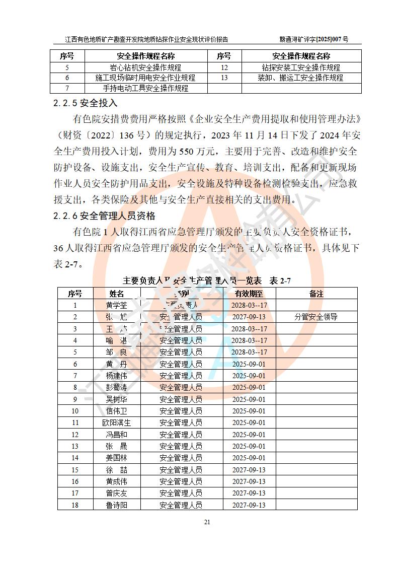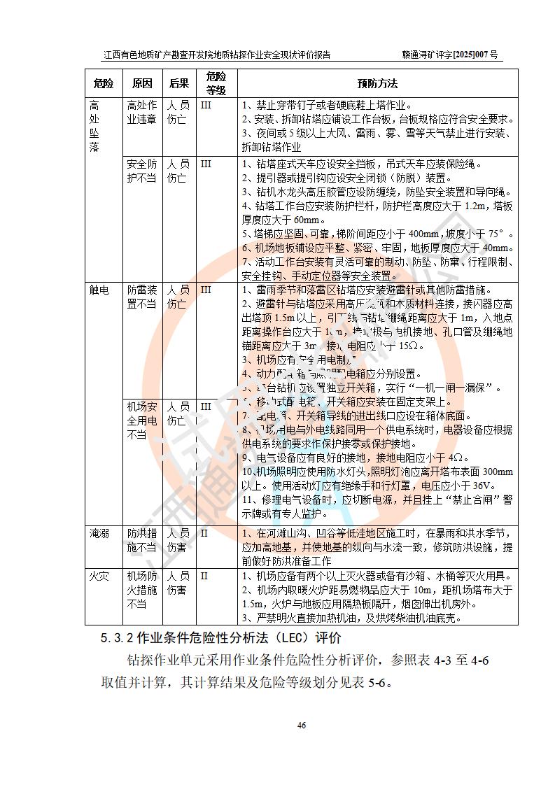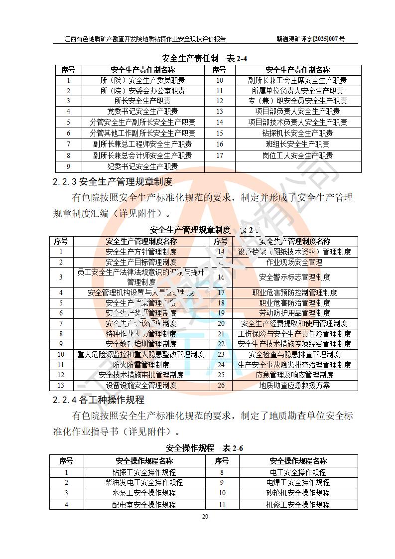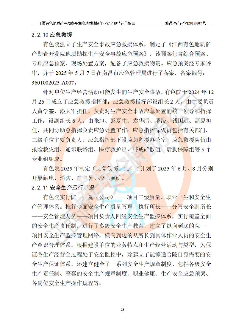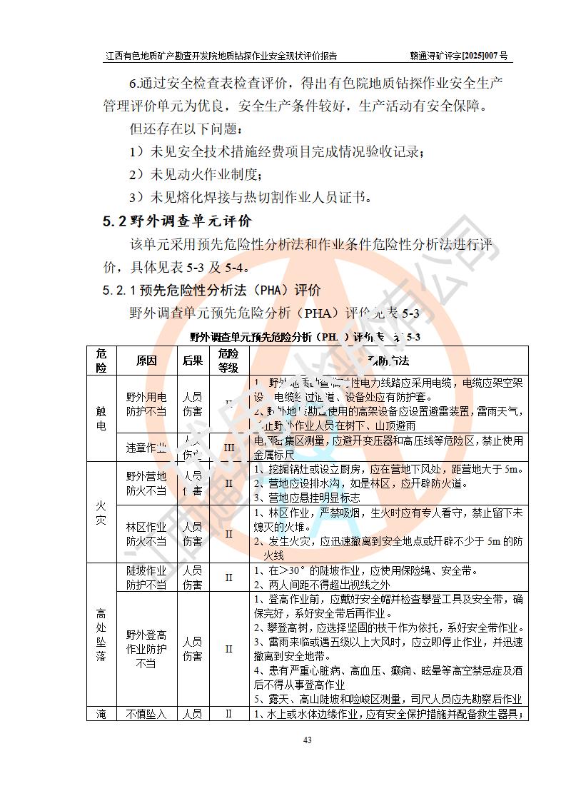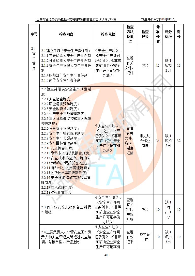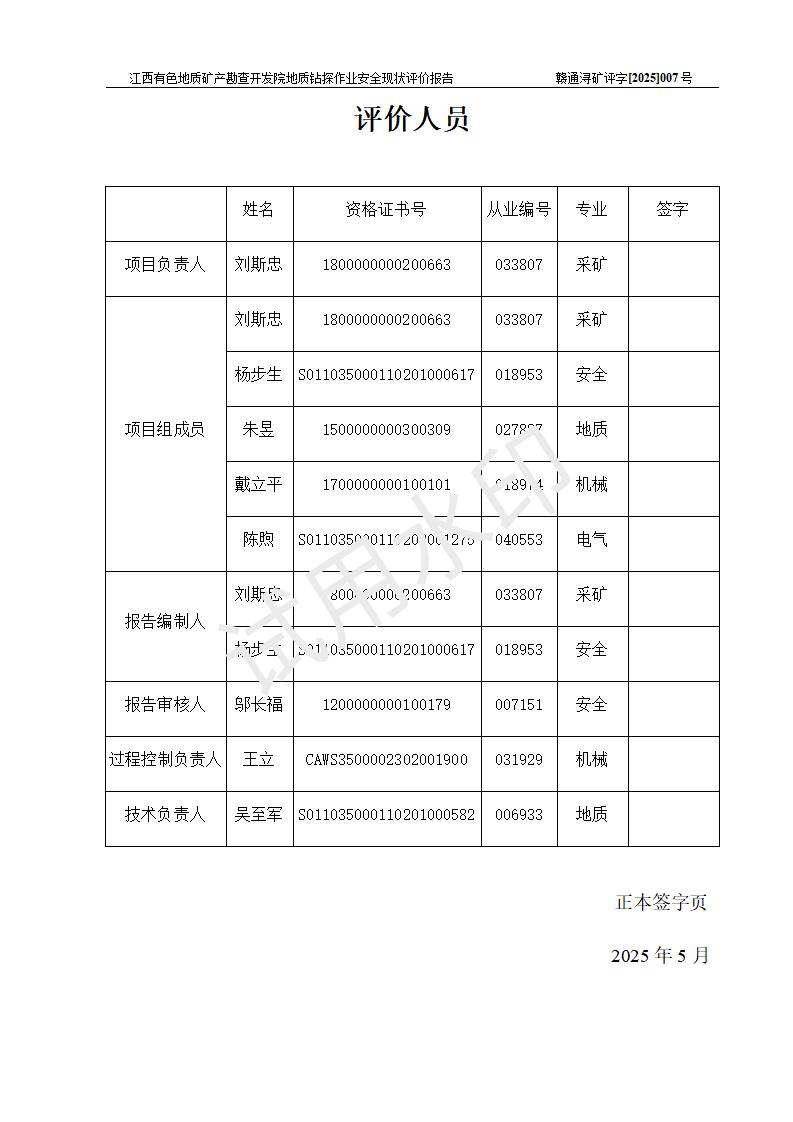 報(bào)告名稱 | 江西有色地質(zhì)礦產(chǎn)勘查開發(fā)院地質(zhì)鉆探作業(yè)安全現(xiàn)狀評(píng)價(jià)報(bào)告 | |||||