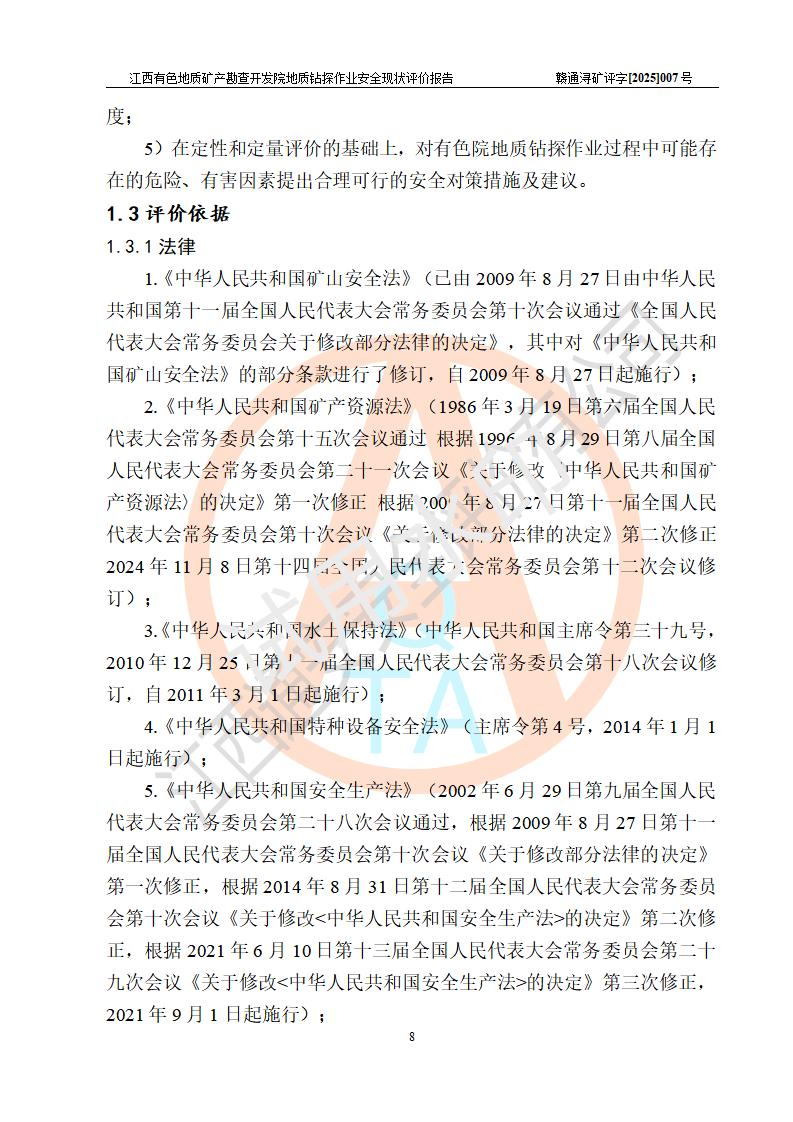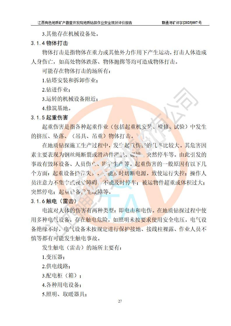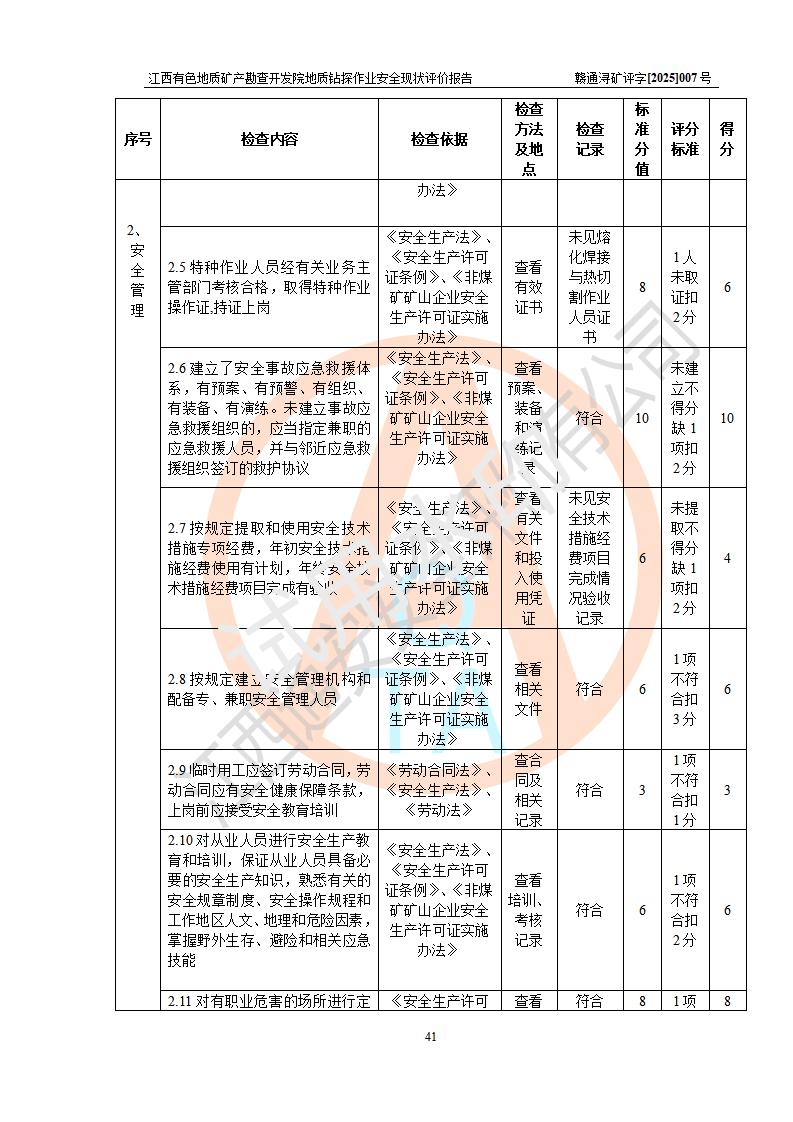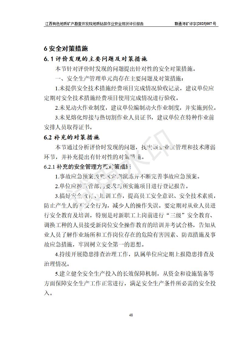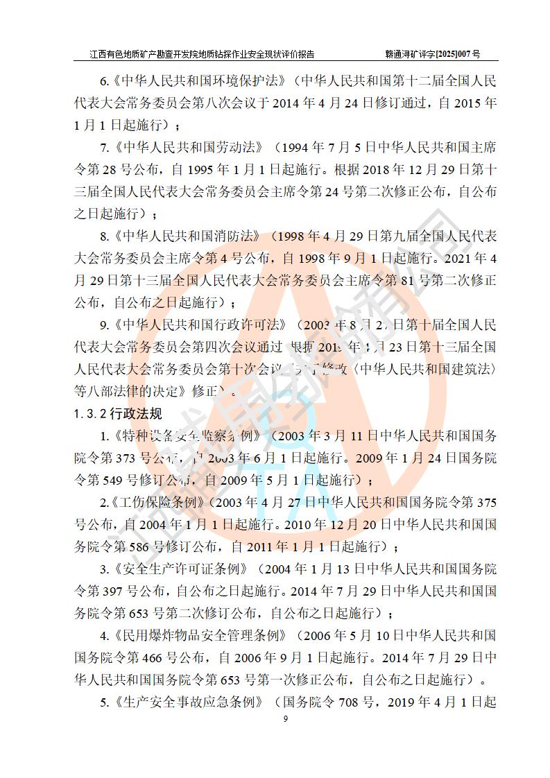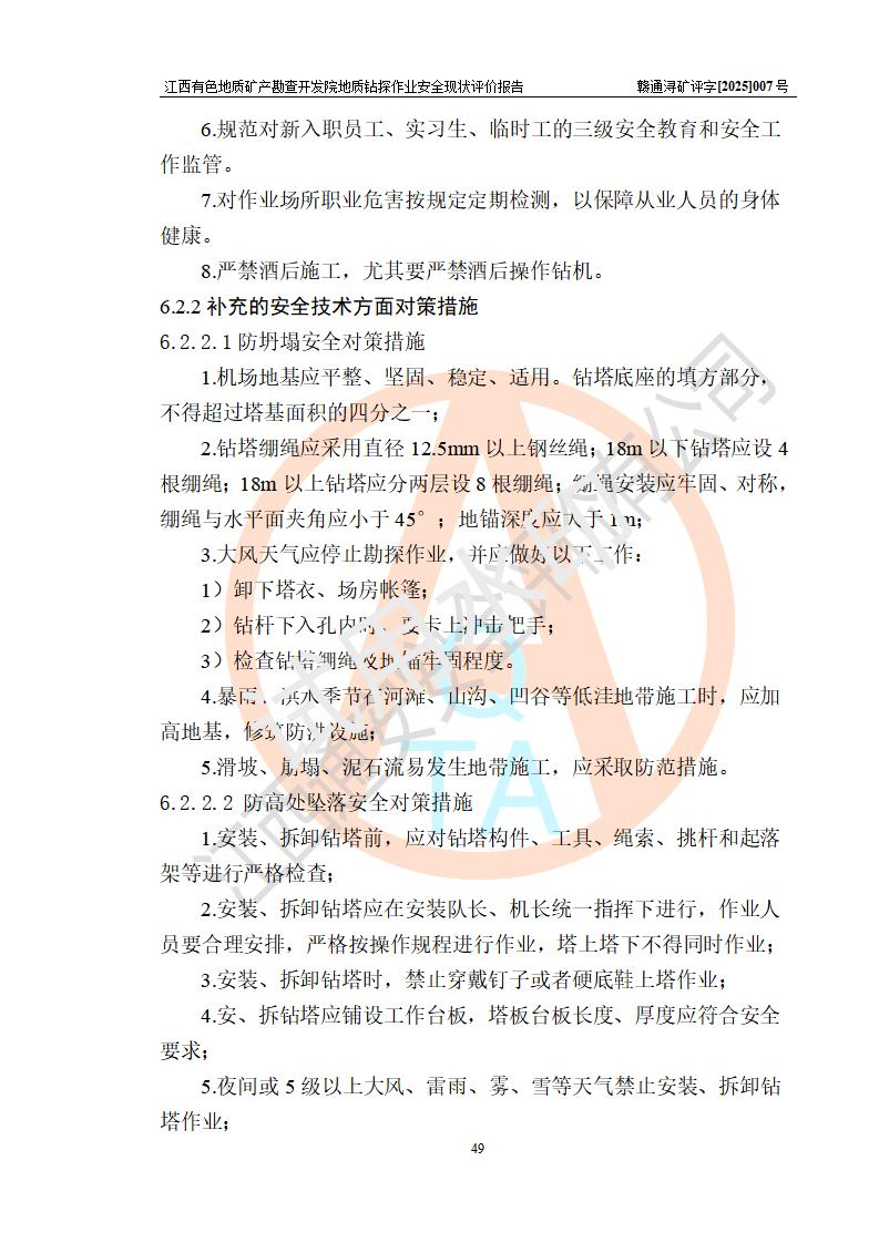 報(bào)告名稱 | 江西有色地質(zhì)礦產(chǎn)勘查開發(fā)院地質(zhì)鉆探作業(yè)安全現(xiàn)狀評(píng)價(jià)報(bào)告 | |||||