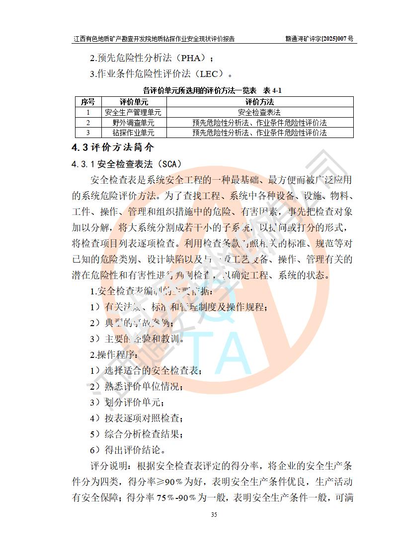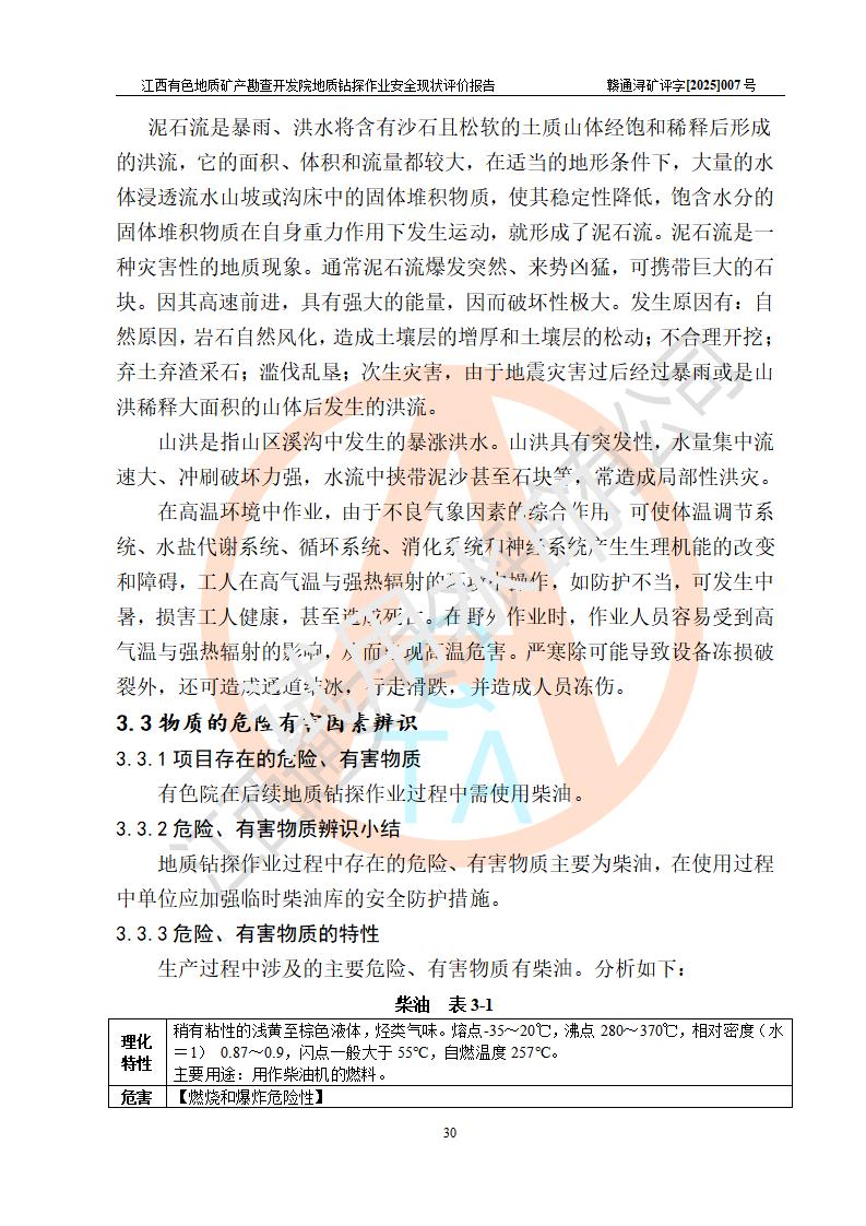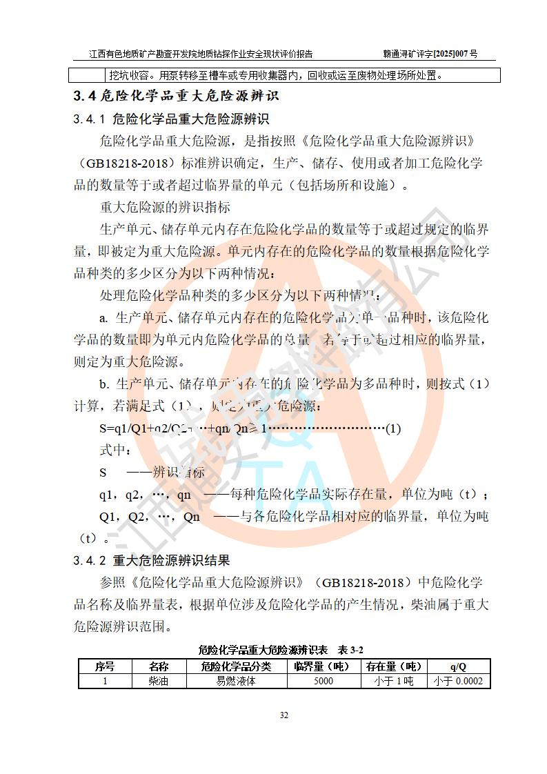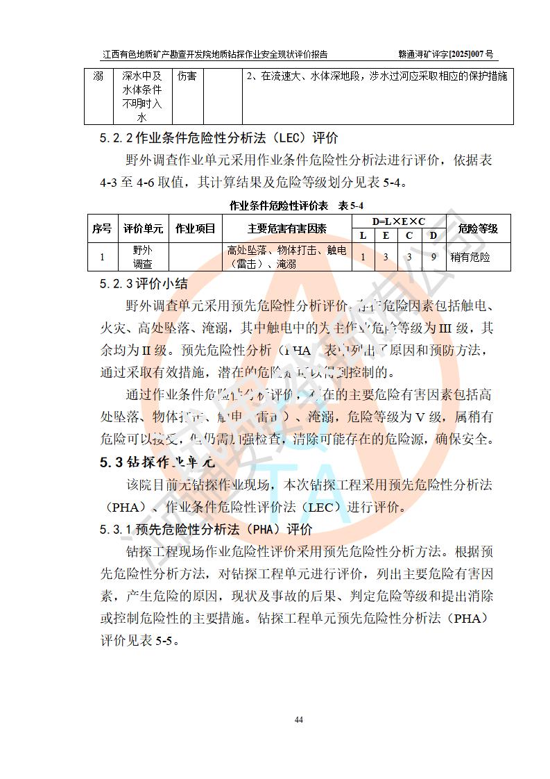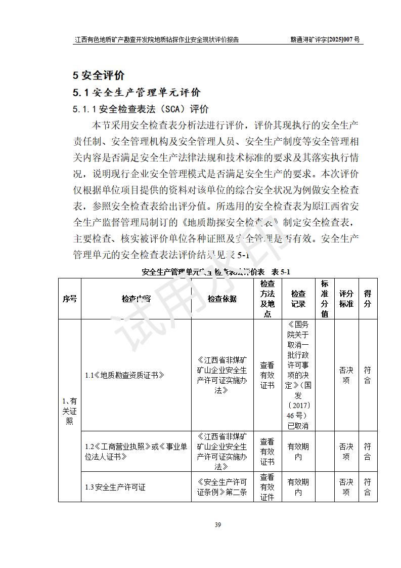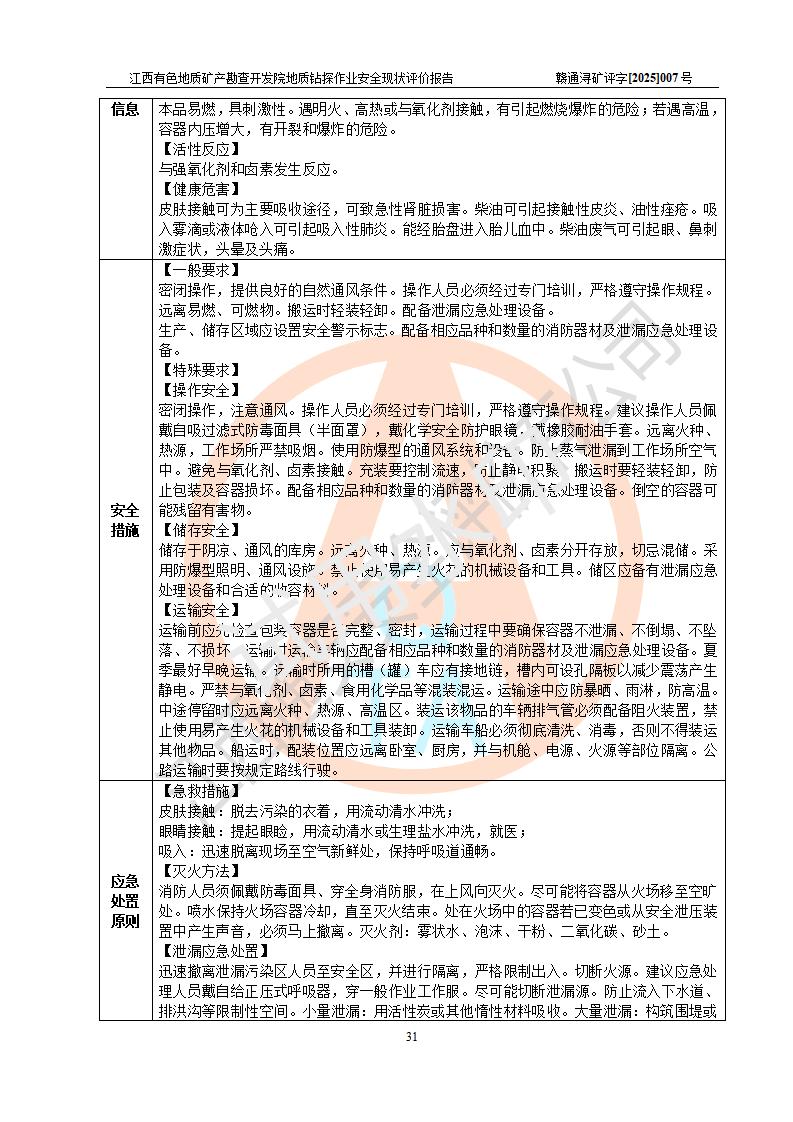 報(bào)告名稱 | 江西有色地質(zhì)礦產(chǎn)勘查開發(fā)院地質(zhì)鉆探作業(yè)安全現(xiàn)狀評(píng)價(jià)報(bào)告 | |||||
