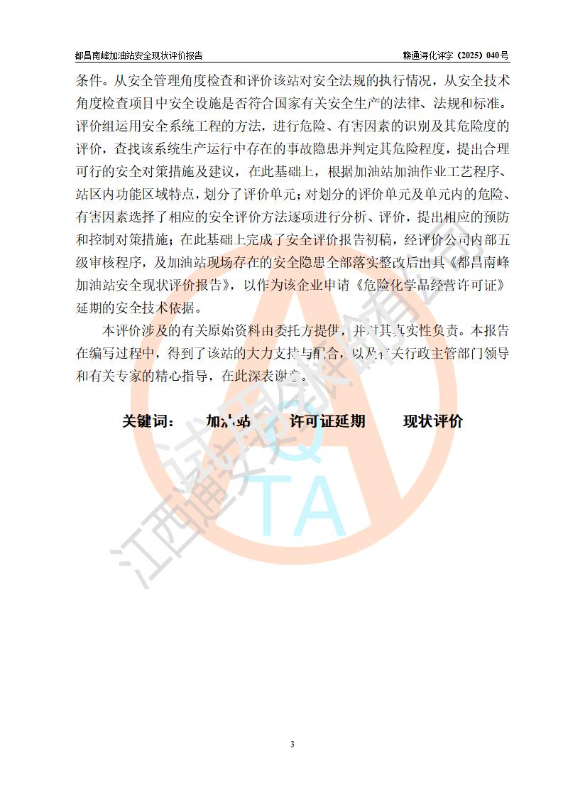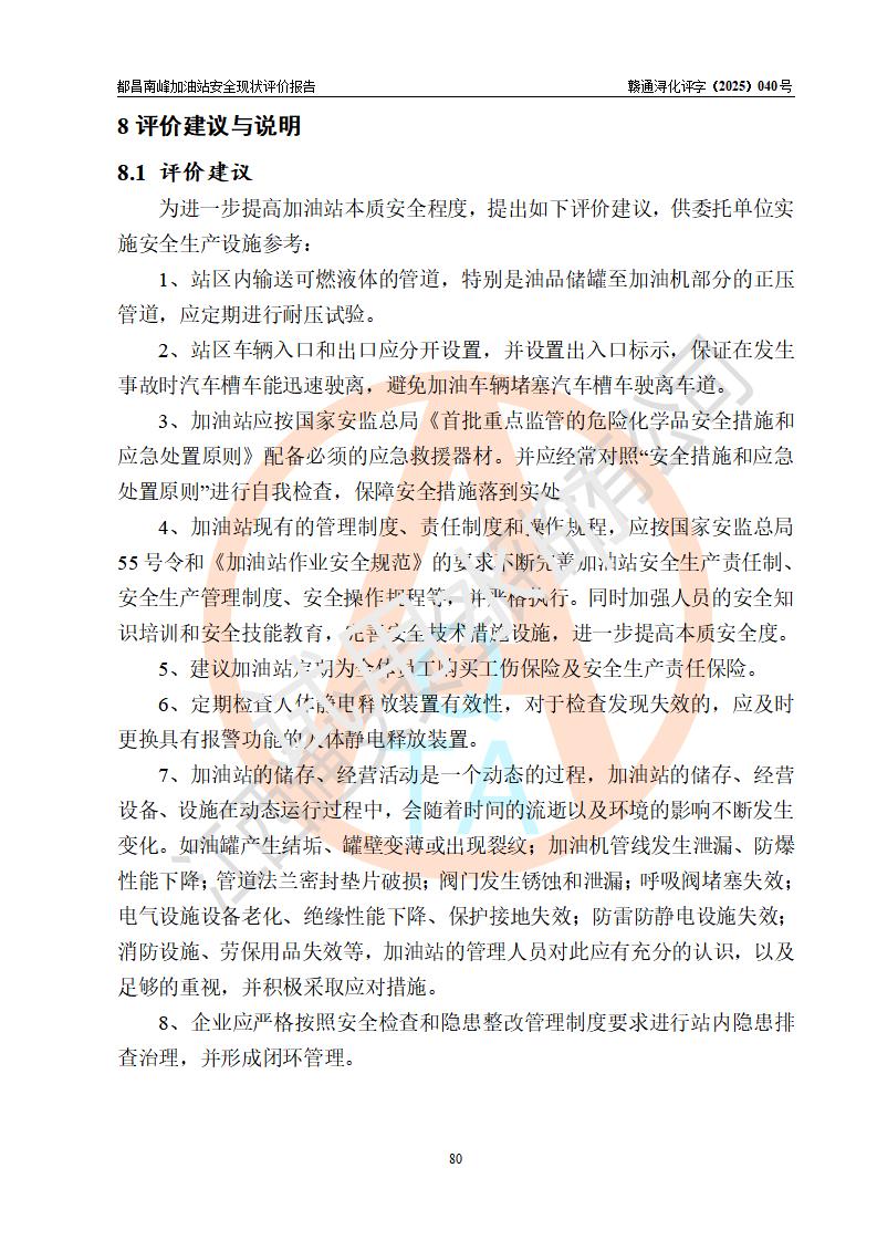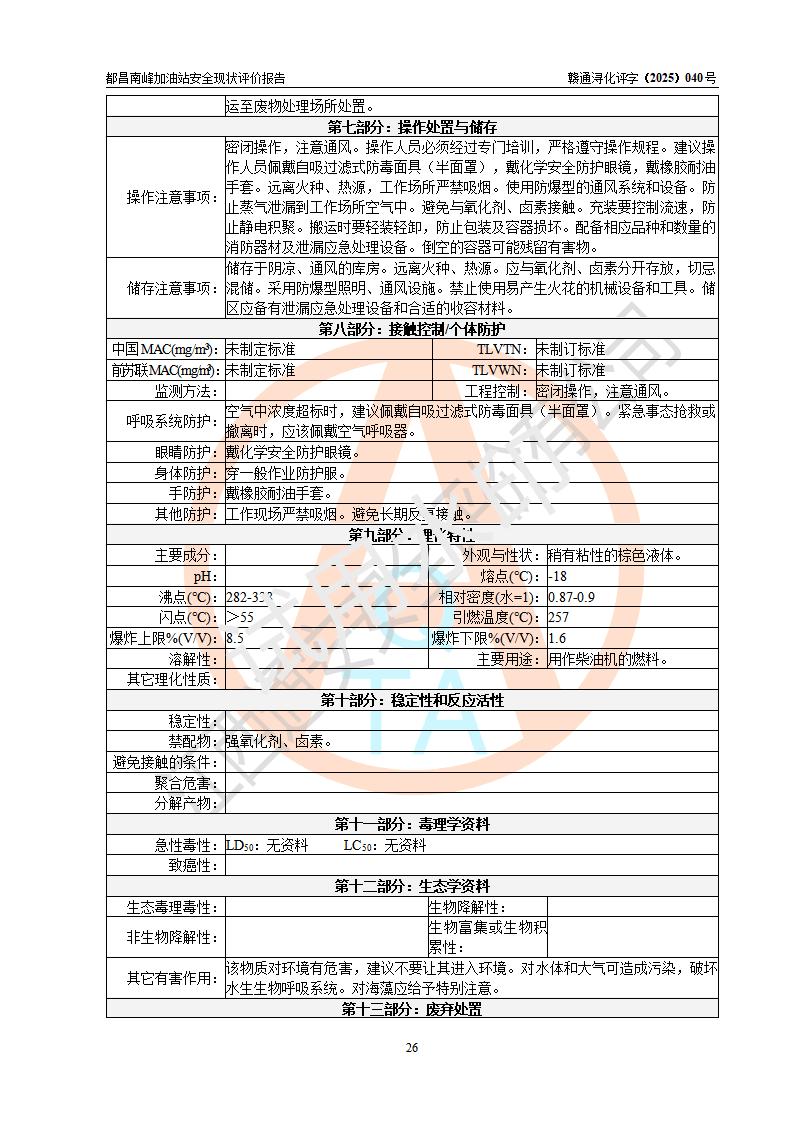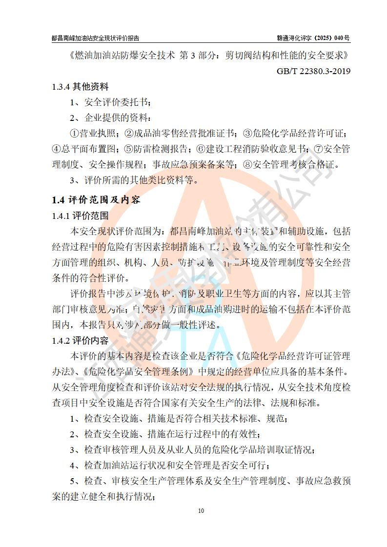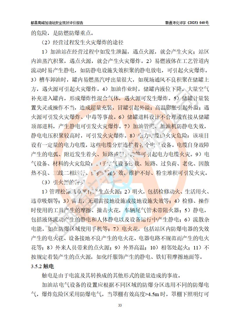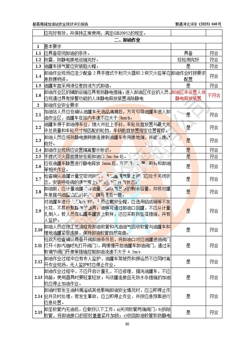 都昌南峰加油站是一家專門從事成品油零售經營的個人獨資企業(yè),投資人馮上生,經營場所位于都昌縣南峰鎮(zhèn)南峰街。該加油站現有從業(yè)人員4人,其中安全管理人員1人,主要負責人馮肖肖。 該加油站占地面積約520m2,站區(qū)內設置有2臺雙槍程控燃油加油機及配套的工藝管線、50m3雙層0#柴油儲罐1臺、30m3雙層92#汽油儲罐1臺、30m3雙層95#汽油儲罐1臺,油品儲罐總容積為110m3(折算成汽油為85m3),。按現行《汽車加油加氣加氫站技術標準》對加油站的等級劃分原則,該站屬于三級加油站。 該站由九江市行政審批局換發(fā)《危險化學品經營許可證》(證號:贛九行審經(甲)字[2022]000075號),**期限2022年06月24日至2025年06月23日。 |