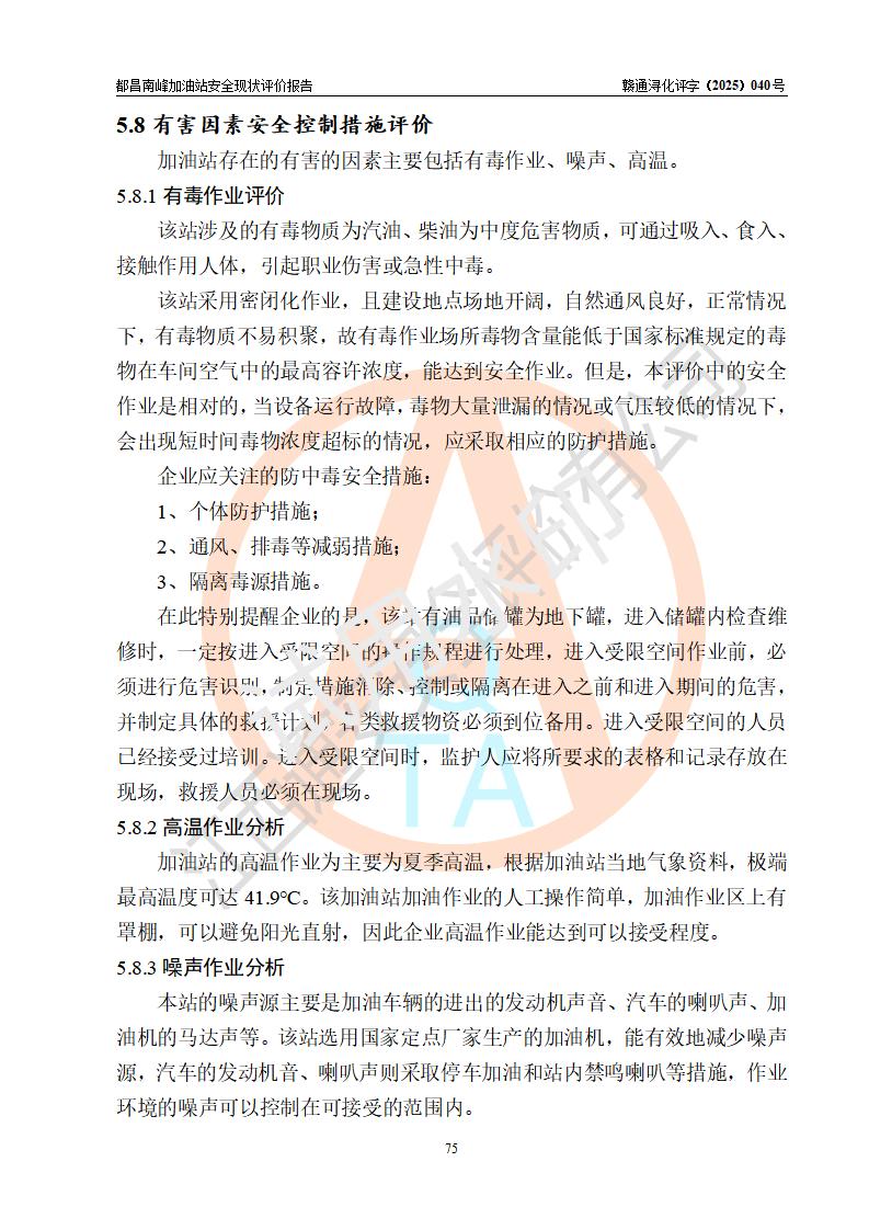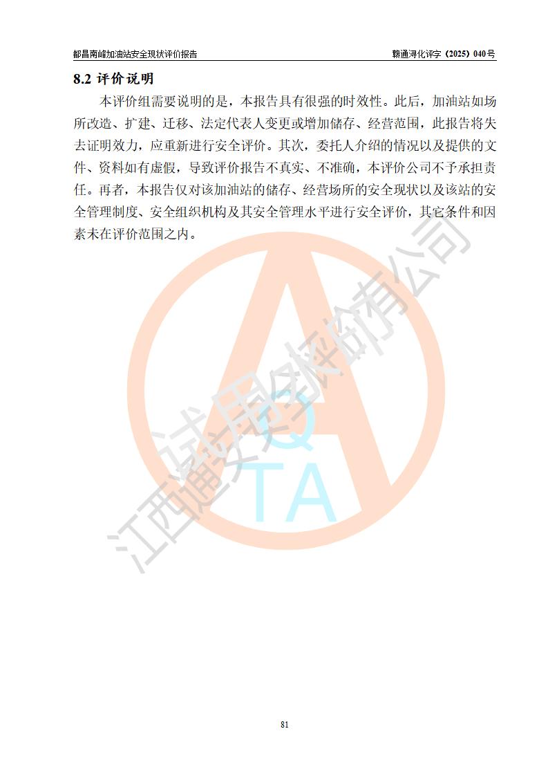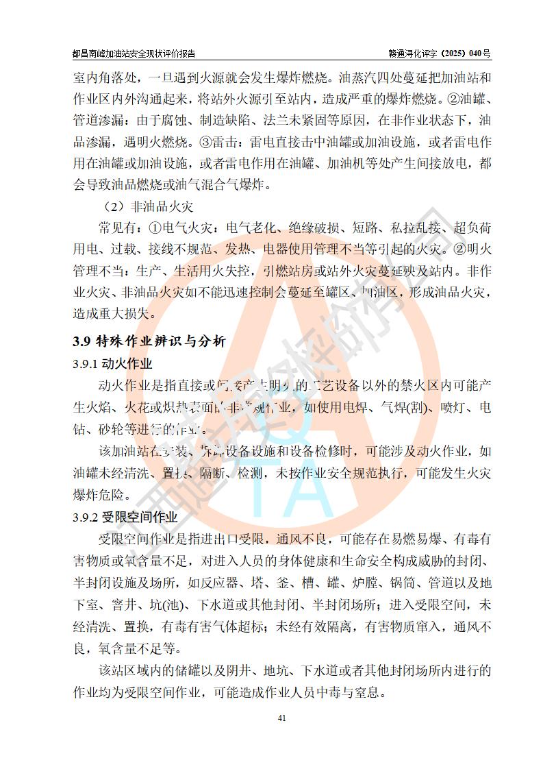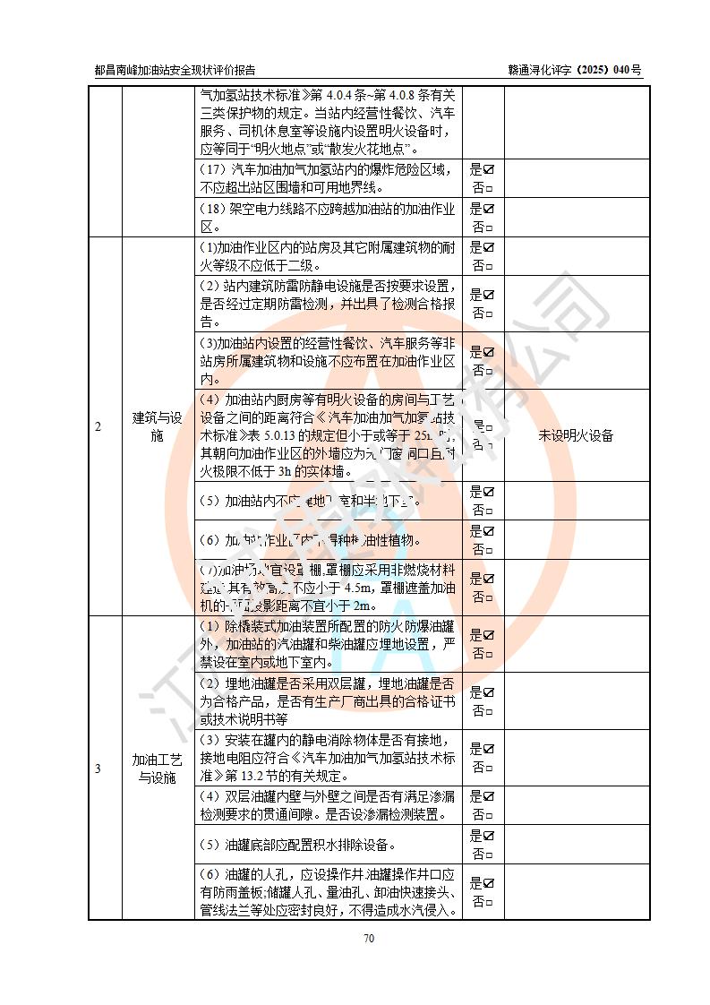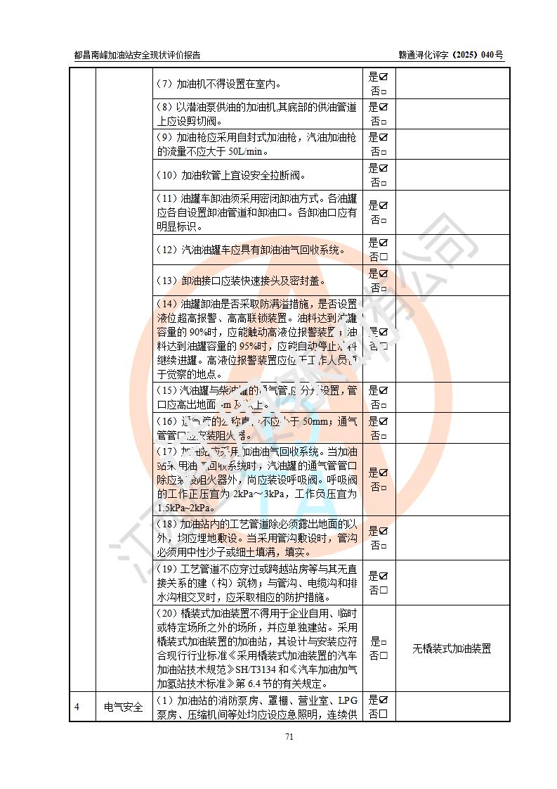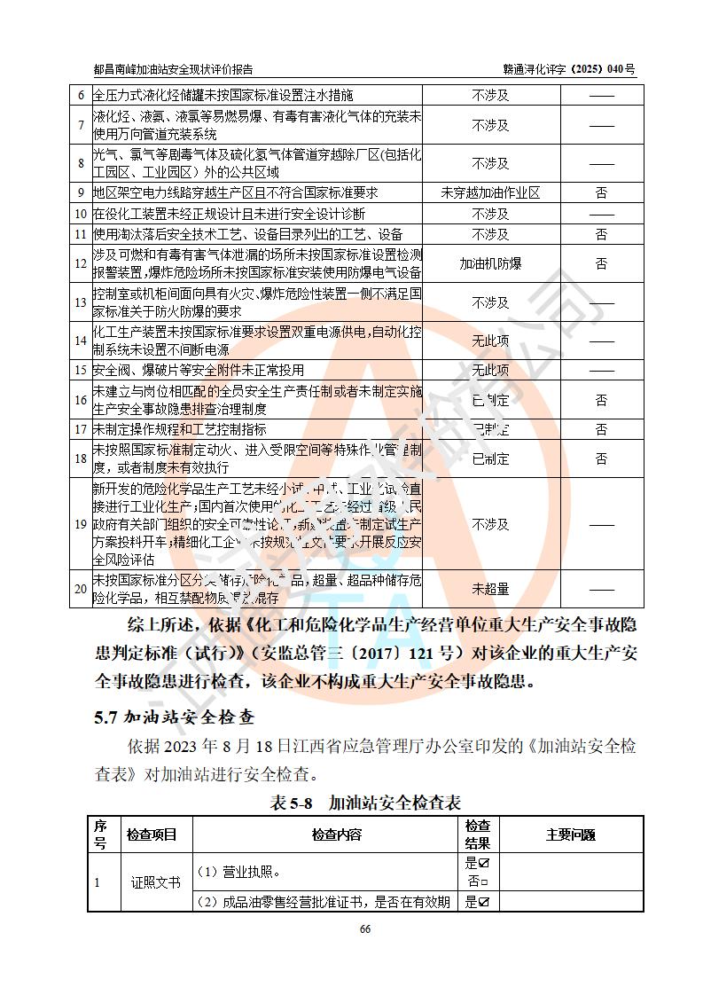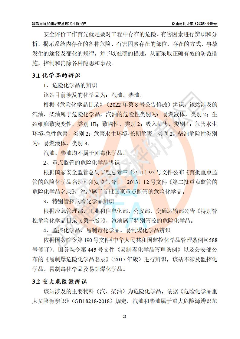 都昌南峰加油站是一家專門從事成品油零售經營的個人獨資企業(yè),投資人馮上生,經營場所位于都昌縣南峰鎮(zhèn)南峰街。該加油站現有從業(yè)人員4人,其中安全管理人員1人,主要負責人馮肖肖。 該加油站占地面積約520m2,站區(qū)內設置有2臺雙槍程控燃油加油機及配套的工藝管線、50m3雙層0#柴油儲罐1臺、30m3雙層92#汽油儲罐1臺、30m3雙層95#汽油儲罐1臺,油品儲罐總容積為110m3(折算成汽油為85m3),。按現行《汽車加油加氣加氫站技術標準》對加油站的等級劃分原則,該站屬于三級加油站。 該站由九江市行政審批局換發(fā)《危險化學品經營許可證》(證號:贛九行審經(甲)字[2022]000075號),**期限2022年06月24日至2025年06月23日。 |