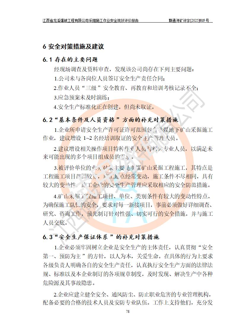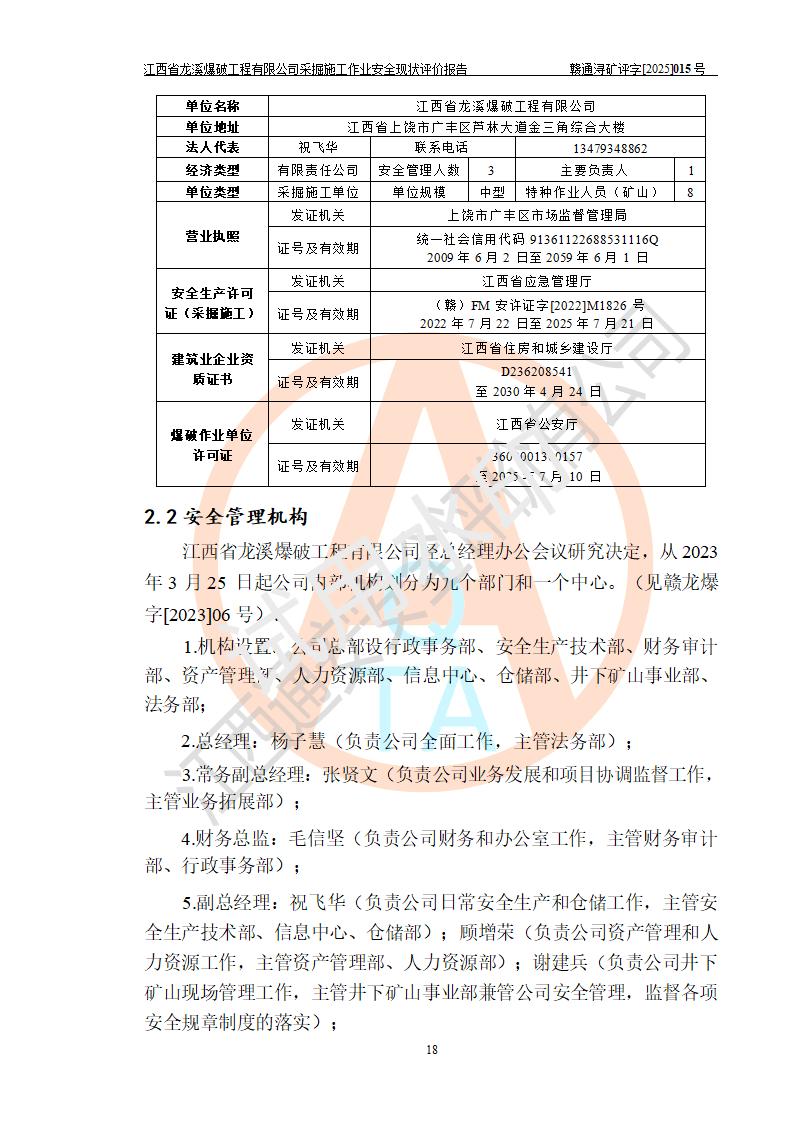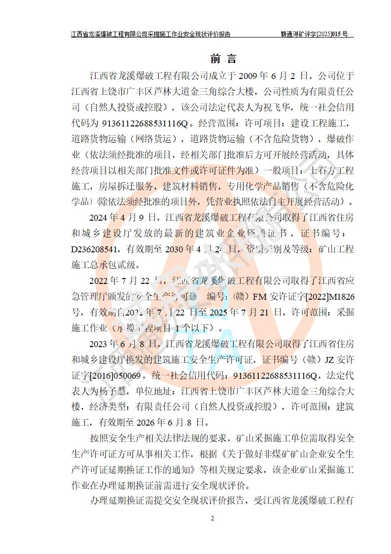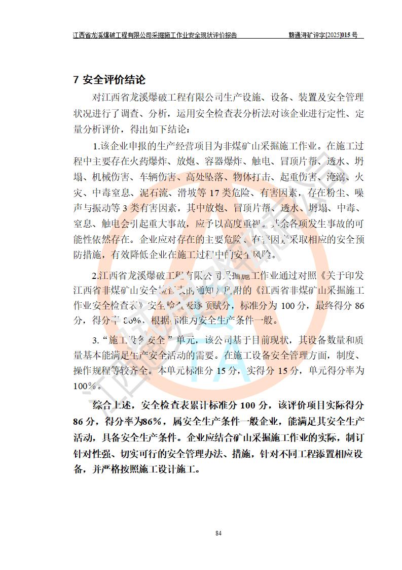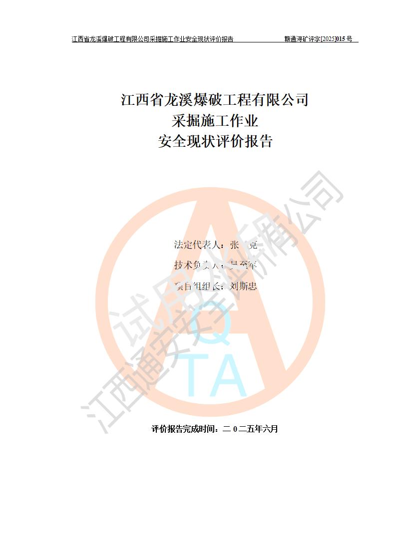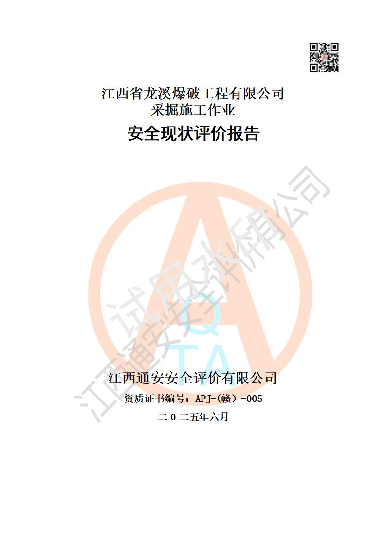 江西省龍溪爆破工程有限公司采掘施工作業(yè)安全現(xiàn)狀評(píng)價(jià)報(bào)告 | |||