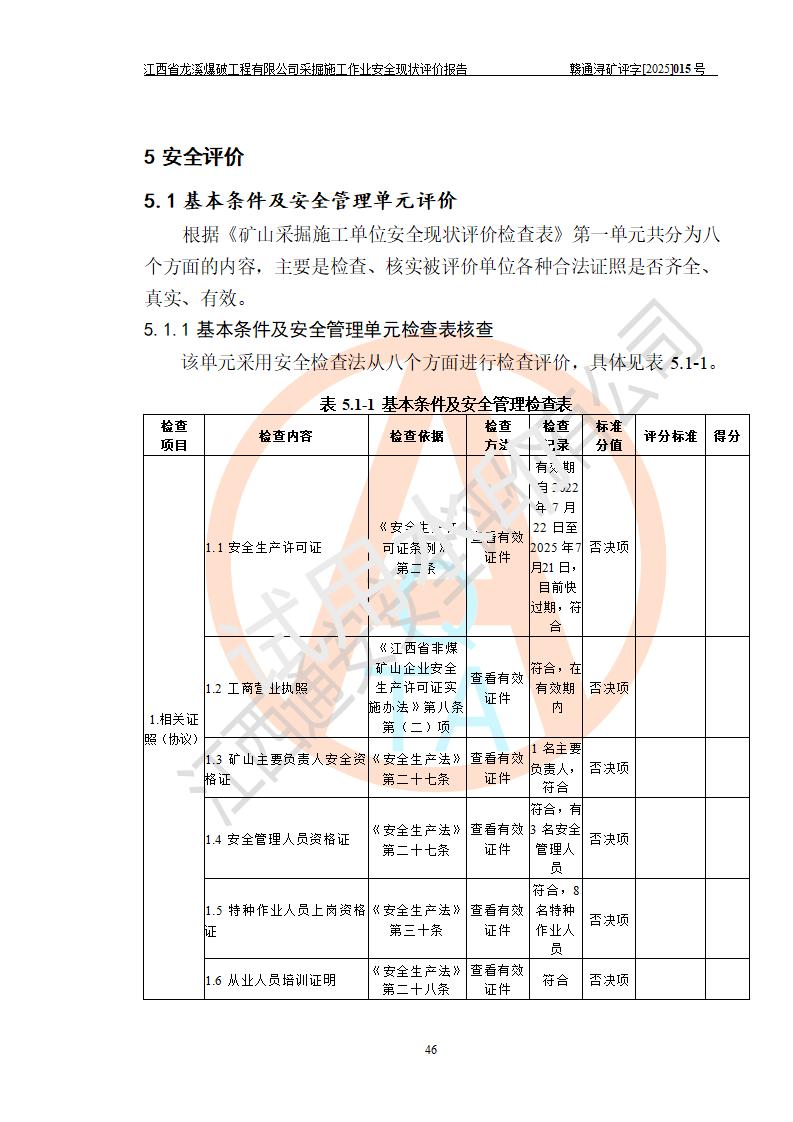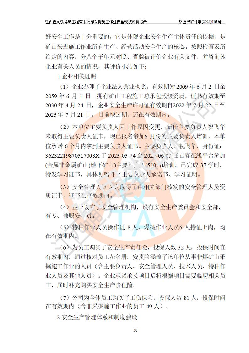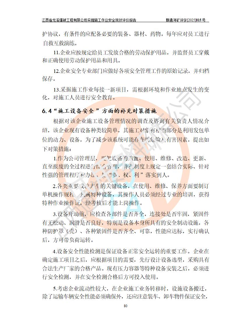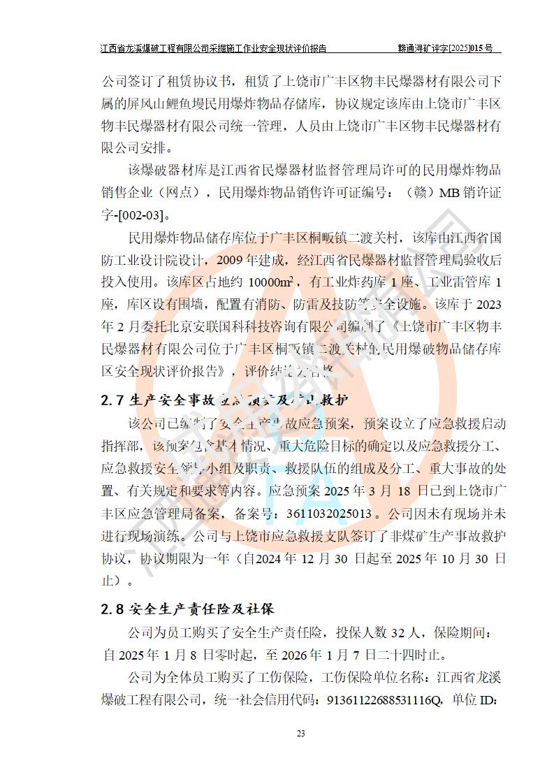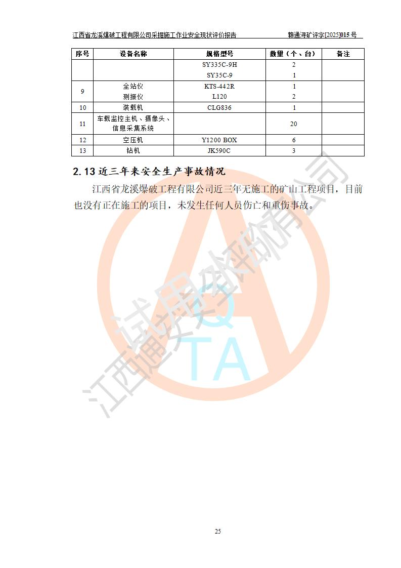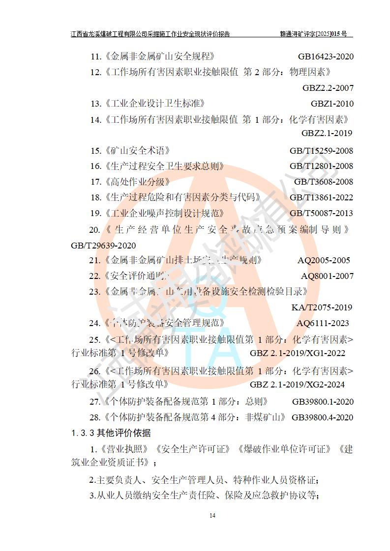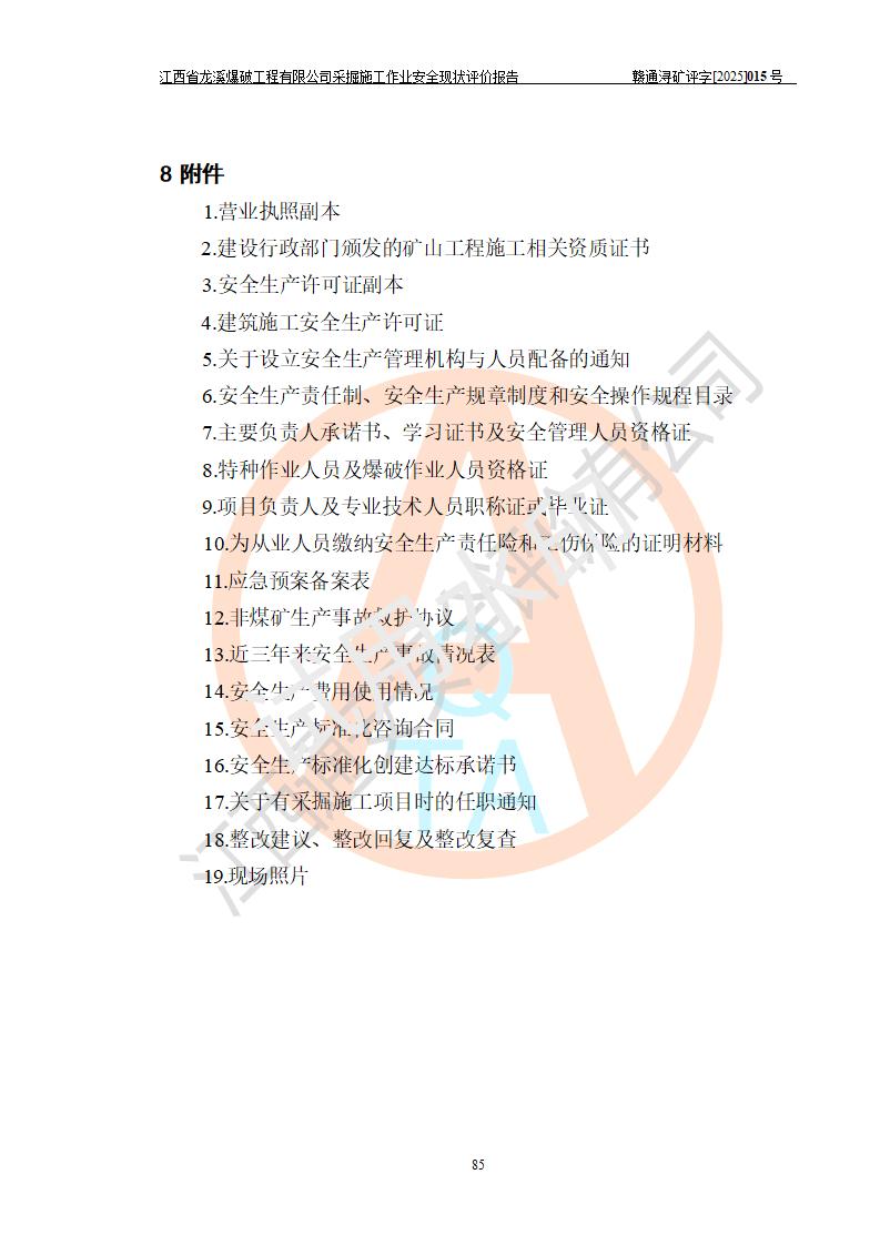 江西省龍溪爆破工程有限公司采掘施工作業(yè)安全現(xiàn)狀評(píng)價(jià)報(bào)告 | |||