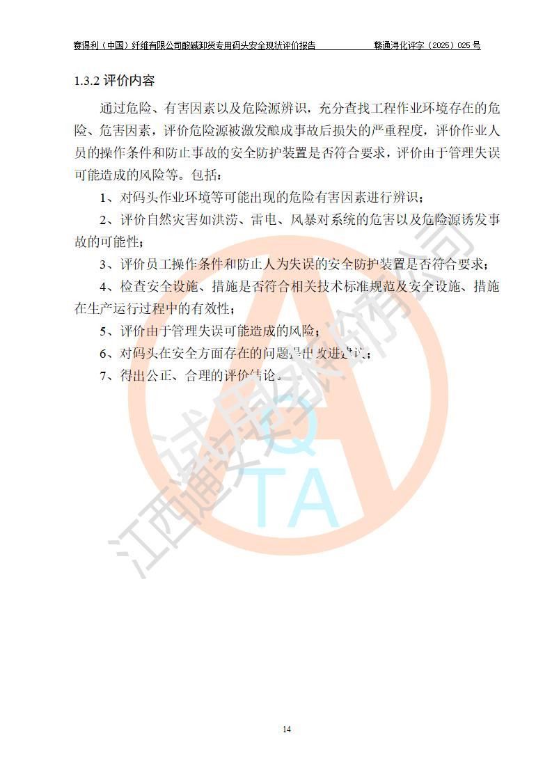 評價(jià)報(bào)告名稱 | 賽得利(中國)纖維有限公司酸堿卸貨**碼頭安全現(xiàn)狀評價(jià)報(bào)告 | |||||