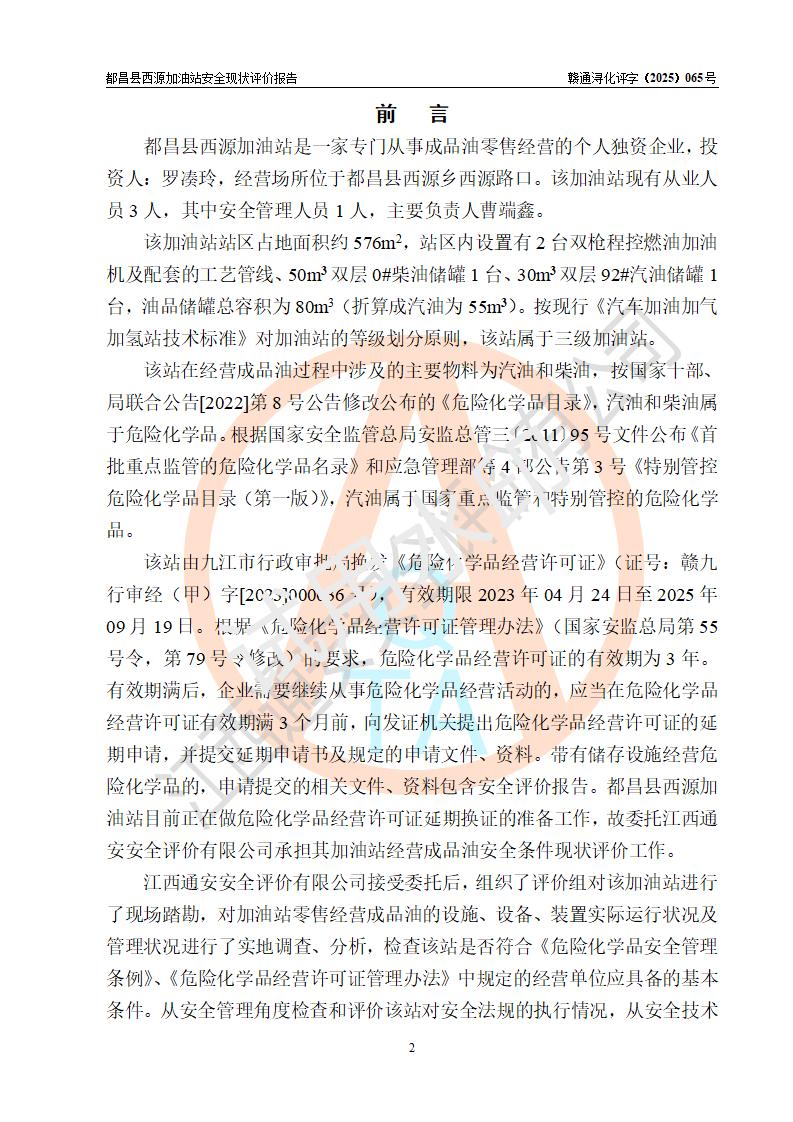 評(píng)價(jià)報(bào)告名稱 | 都昌縣西源加油站安全現(xiàn)狀評(píng)價(jià)報(bào)告 | |||
