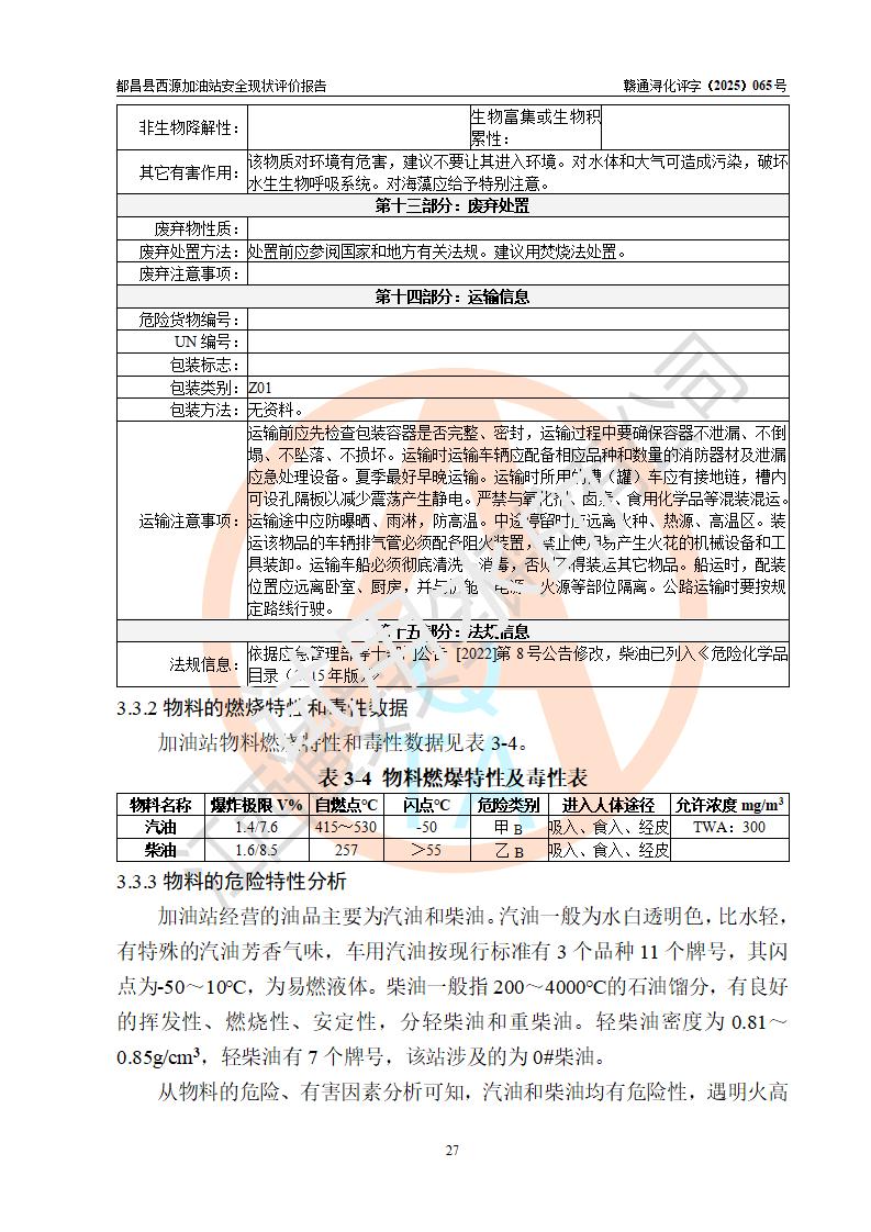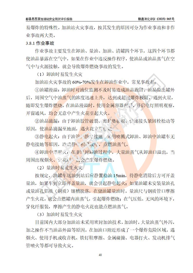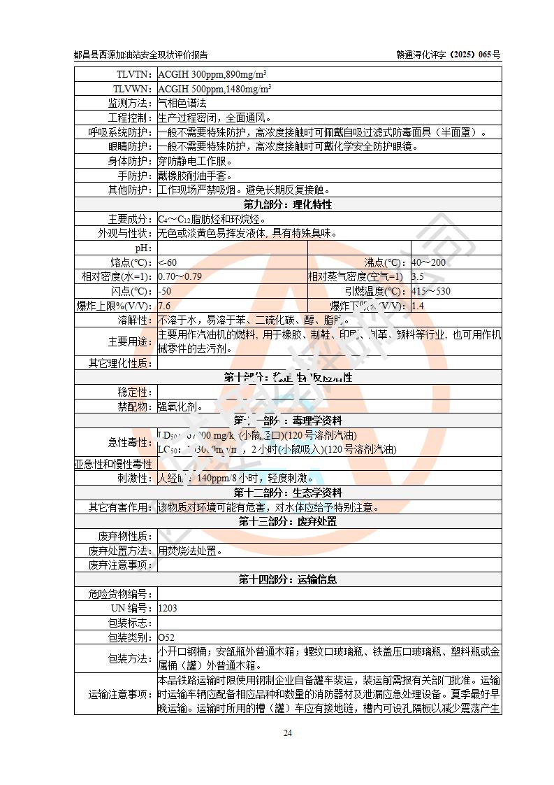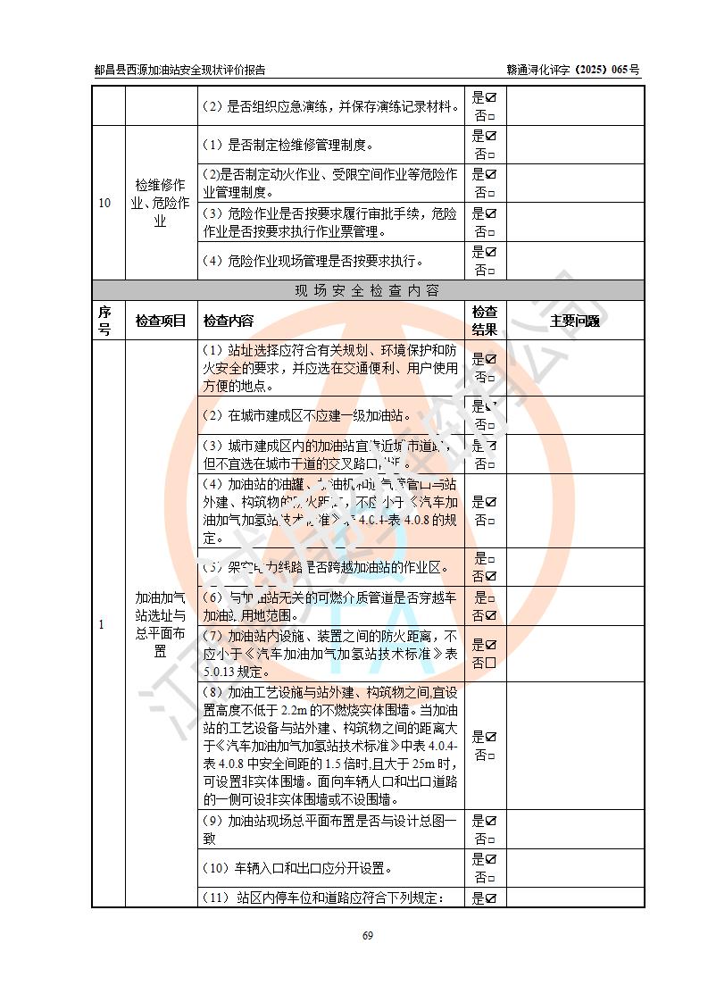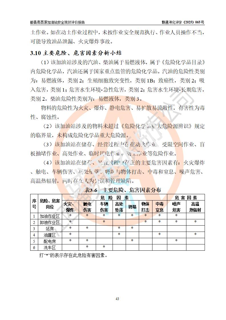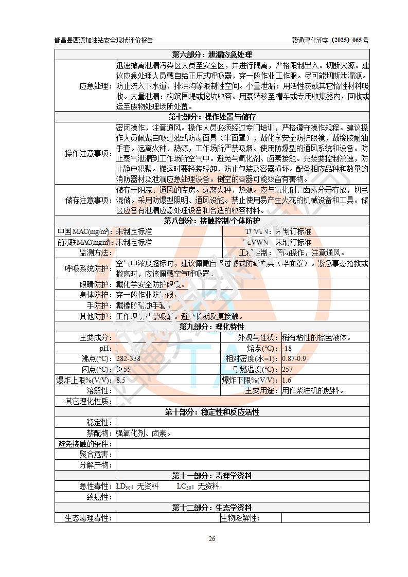 評(píng)價(jià)結(jié)論 | 都昌縣西源加油站涉及的安全條件、安全經(jīng)營(yíng)條件、安全生產(chǎn)管理符合《危險(xiǎn)化學(xué)品經(jīng)營(yíng)許可證管理辦法》、《汽車加油加氣加氫站技術(shù)標(biāo)準(zhǔn)》等**有關(guān)法規(guī)、標(biāo)準(zhǔn)、規(guī)范要求,能滿足危險(xiǎn)化學(xué)品經(jīng)營(yíng)安全條件。 | |||