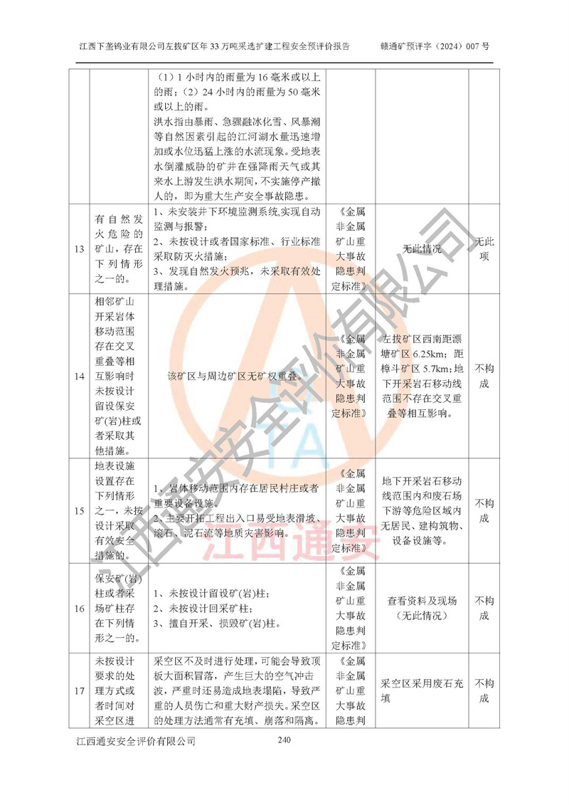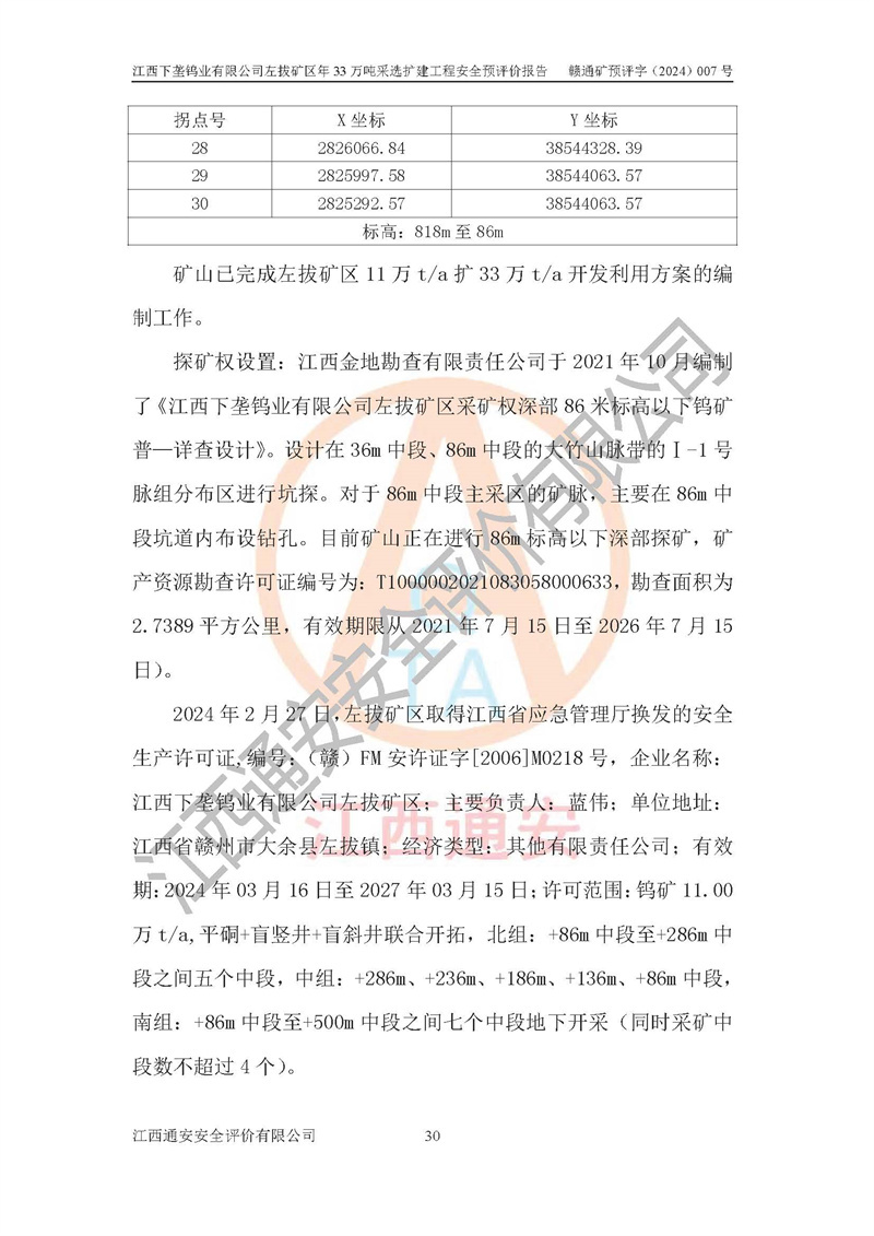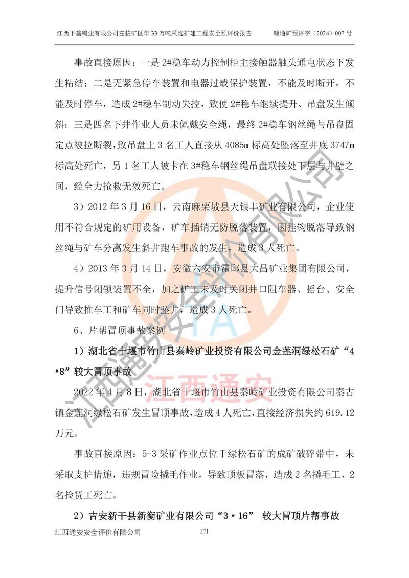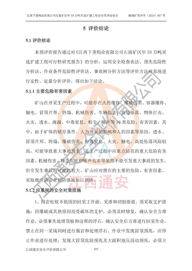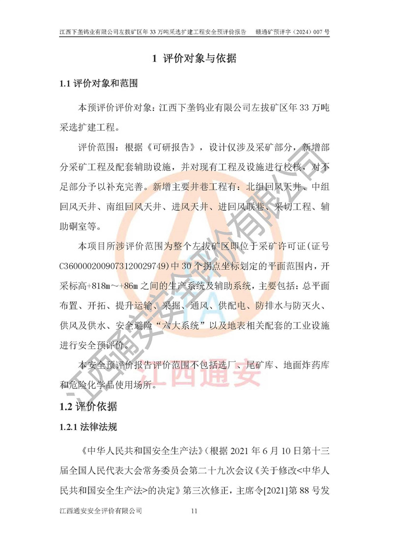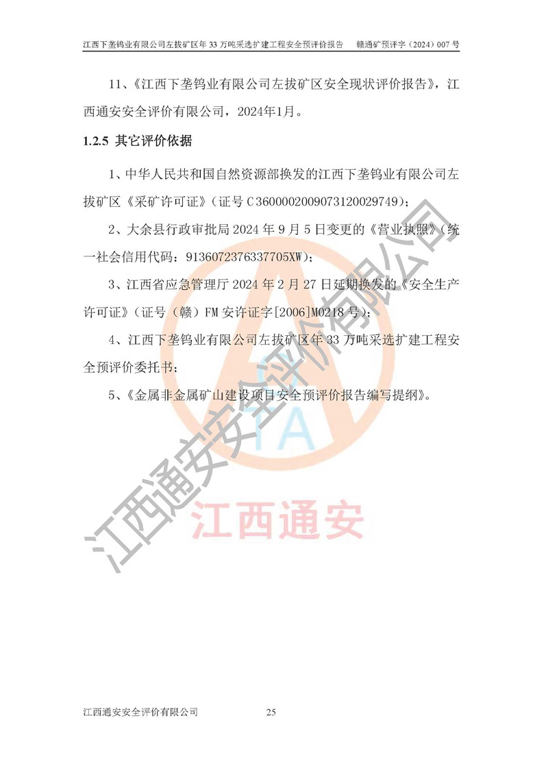 項(xiàng)目名稱 | 江西下壟鎢業(yè)有限公司左拔礦區(qū)年33萬(wàn)噸采選擴(kuò)建工程項(xiàng)目安全預(yù)評(píng)價(jià)報(bào)告 | ||||