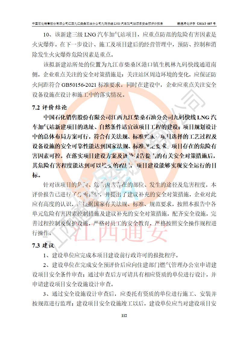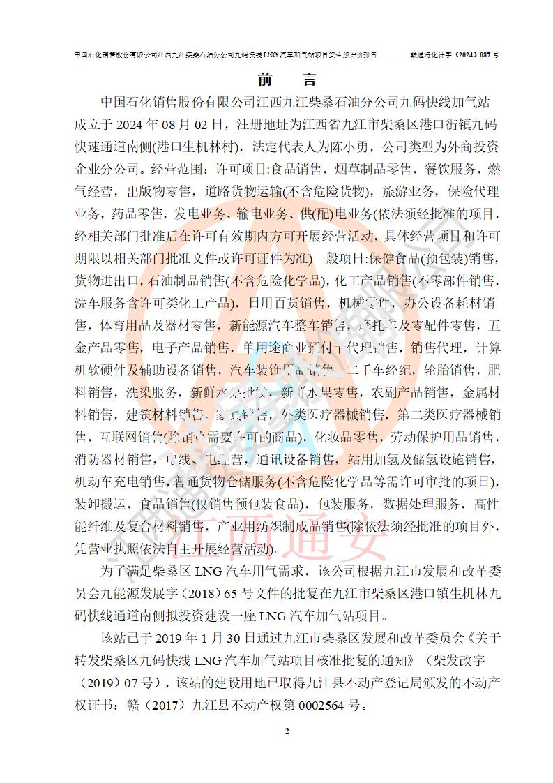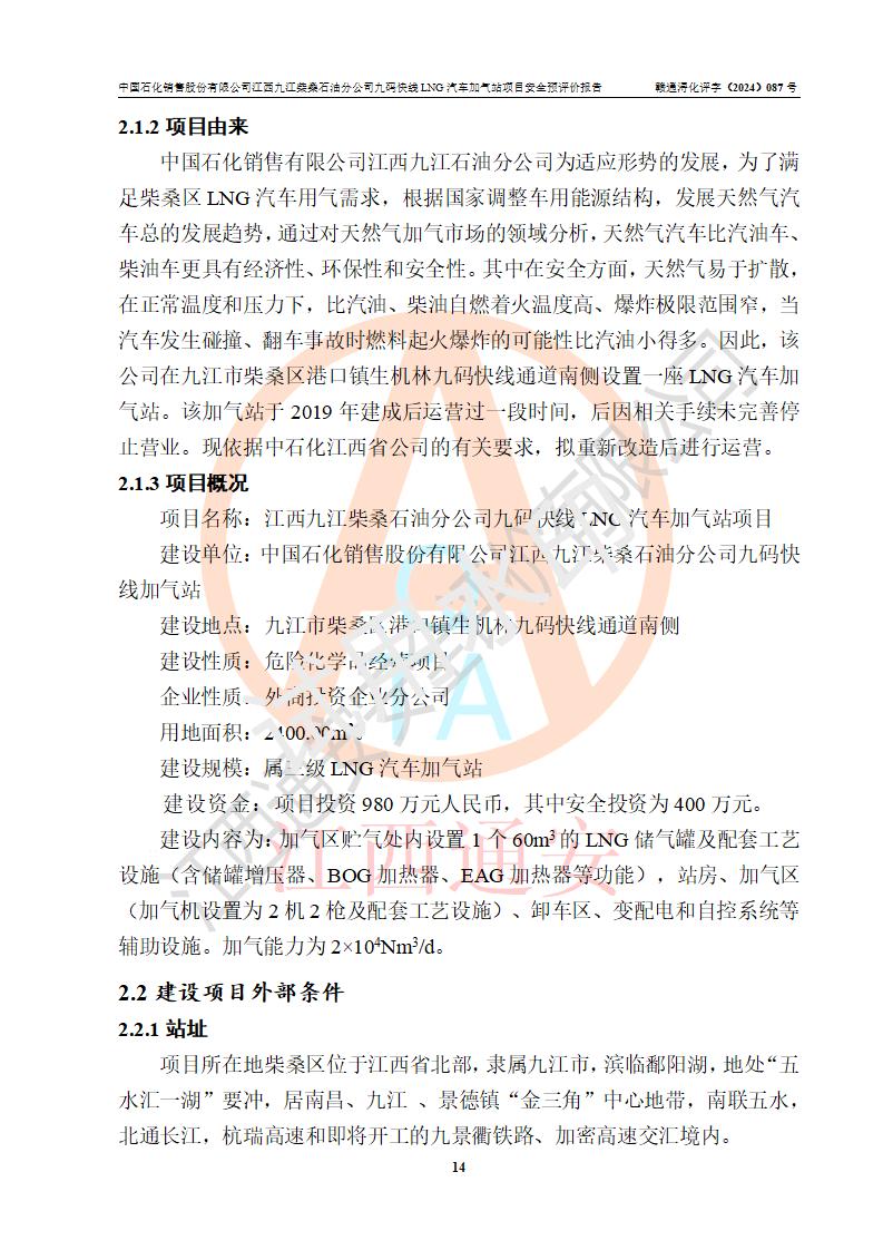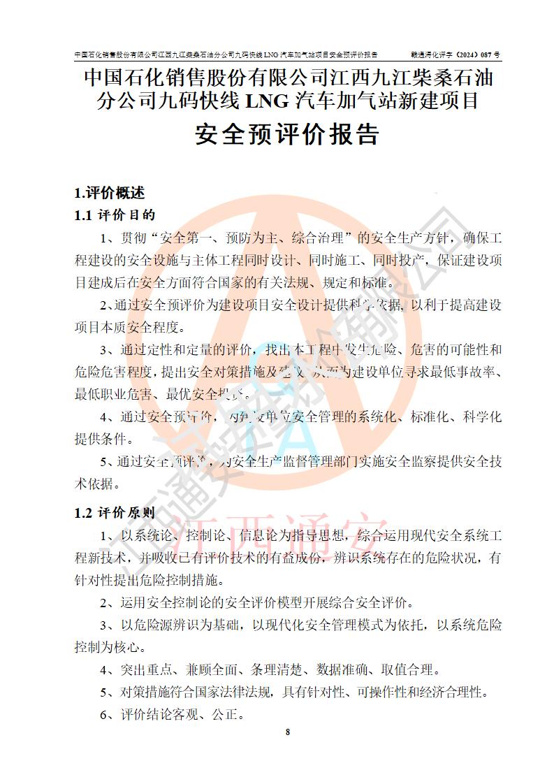 評(píng)價(jià)報(bào)告名稱 | 中國(guó)石化銷(xiāo)售股份有限公司江西九江柴桑石油分公司九碼快線加氣站LNG汽車(chē)加氣站項(xiàng)目安全預(yù)評(píng)價(jià)報(bào)告 | ||||||