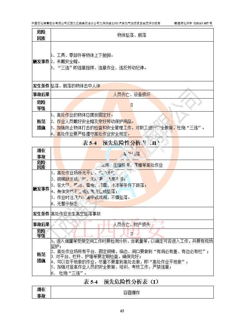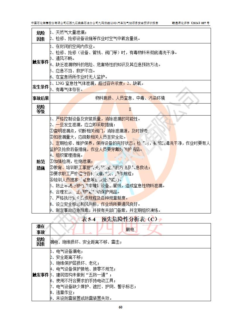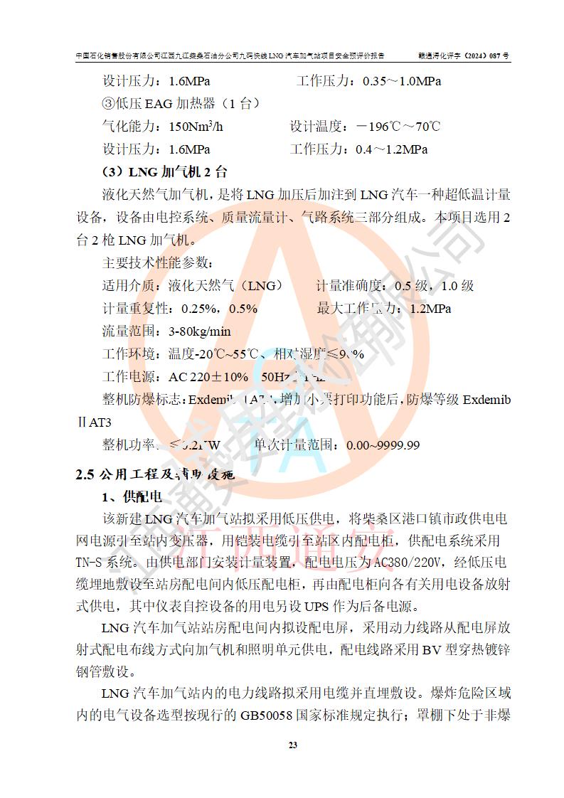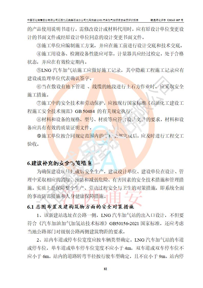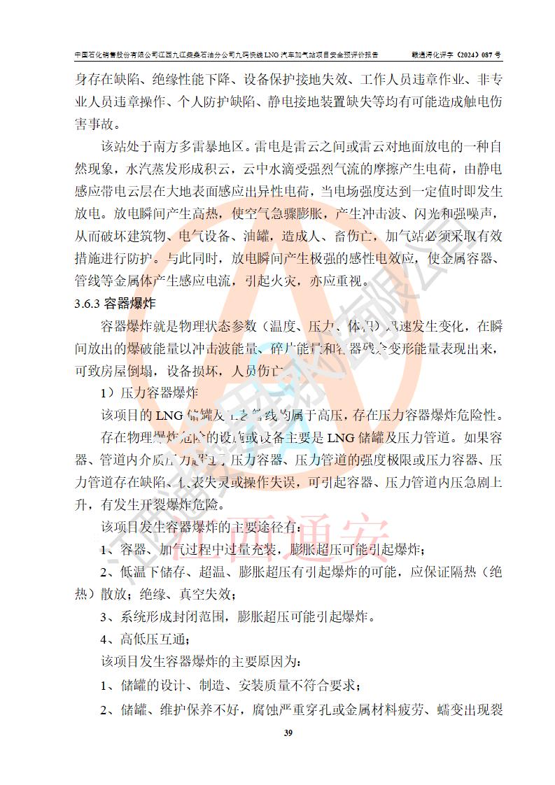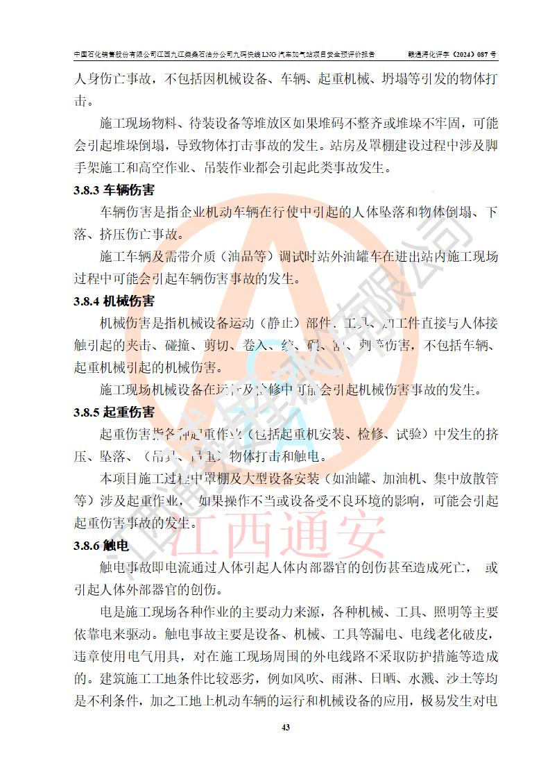 項(xiàng)目簡(jiǎn)介 | 中國(guó)石化銷(xiāo)售股份有限公司江西九江柴桑石油分公司九碼快線加氣站成立于2024年08月02日,注冊(cè)地址為江西省九江市柴桑區(qū)港口街鎮(zhèn)九碼**通道南側(cè)(港口生機(jī)林村),法定**人為陳小勇,公司類型為外商投資企業(yè)分公司。經(jīng)營(yíng)范圍:許可項(xiàng)目:食品銷(xiāo)售,煙草制品零售,餐飲服務(wù),燃?xì)饨?jīng)營(yíng),出版物零售,道路貨物運(yùn)輸(不含危險(xiǎn)貨物),旅游業(yè)務(wù),**代理業(yè)務(wù),藥品零售,發(fā)電業(yè)務(wù)、輸電業(yè)務(wù)、供(配)電業(yè)務(wù)(依法須經(jīng)批準(zhǔn)的項(xiàng)目,經(jīng)相關(guān)部門(mén)批準(zhǔn)后在許可**期內(nèi)方可開(kāi)展經(jīng)營(yíng)活動(dòng),具體經(jīng)營(yíng)項(xiàng)目和許可期限以相關(guān)部門(mén)批準(zhǔn)文件或許可證件為準(zhǔn))一般項(xiàng)日:保健食品(預(yù)包裝)銷(xiāo)售,貨物進(jìn)出口,石油制品銷(xiāo)售(不含危險(xiǎn)化學(xué)品),化工產(chǎn)品銷(xiāo)售(不零部件銷(xiāo)售,洗車(chē)服務(wù)含許可類化工產(chǎn)品),日用百貨銷(xiāo)售,機(jī)械零件,辦公設(shè)備耗材銷(xiāo)售,體育用品及器材零售,新能源汽車(chē)整車(chē)銷(xiāo)售,摩托車(chē)及零配件零售,五金產(chǎn)品零售,電子產(chǎn)品銷(xiāo)售,單用途商業(yè)預(yù)付卡代理銷(xiāo)售,銷(xiāo)售代理,計(jì)算機(jī)軟硬件及輔助設(shè)備銷(xiāo)售,汽車(chē)裝飾用品銷(xiāo)售,二手車(chē)經(jīng)紀(jì),輪胎銷(xiāo)售,肥料銷(xiāo)售,洗染服務(wù),新鮮水果批發(fā),新鮮水果零售,農(nóng)副產(chǎn)品銷(xiāo)售,金屬材料銷(xiāo)售,建筑材料銷(xiāo)售,家具銷(xiāo)售,外類醫(yī)療器械銷(xiāo)售,第二類醫(yī)療器械銷(xiāo)售,互聯(lián)網(wǎng)銷(xiāo)售(除銷(xiāo)售需要許可的商品),化妝品零售,勞動(dòng)保護(hù)用品銷(xiāo)售,消防器材銷(xiāo)售,電線、電經(jīng)營(yíng),通訊設(shè)備銷(xiāo)售,站用加氫及儲(chǔ)氫設(shè)施銷(xiāo)售,機(jī)動(dòng)車(chē)充電銷(xiāo)售,普通貨物倉(cāng)儲(chǔ)服務(wù)(不含危險(xiǎn)化學(xué)品等需許可審批的項(xiàng)日),裝卸搬運(yùn),食品銷(xiāo)售(僅銷(xiāo)售預(yù)包裝食品),包裝服務(wù),數(shù)據(jù)處理服務(wù),***纖維及復(fù)合材料銷(xiāo)售,產(chǎn)業(yè)用紡織制成品銷(xiāo)售(除依法須經(jīng)批準(zhǔn)的項(xiàng)目外,憑營(yíng)業(yè)執(zhí)照依法自主開(kāi)展經(jīng)營(yíng)活動(dòng))。 為了滿足柴桑區(qū)LNG汽車(chē)用氣需求,該公司根據(jù)九江市發(fā)展和改革委員會(huì)九能源發(fā)展字(2018)65號(hào)文件的批復(fù)在九江市柴桑區(qū)港口鎮(zhèn)生機(jī)林九碼快線通道南側(cè)擬投資建設(shè)一座LNG汽車(chē)加氣站項(xiàng)目。 該站已于2019年1月30日通過(guò)九江市柴桑區(qū)發(fā)展和改革委員會(huì)《關(guān)于轉(zhuǎn)發(fā)柴桑區(qū)九碼快線LNG汽車(chē)加氣站項(xiàng)目核準(zhǔn)批復(fù)的通知》(柴發(fā)改字(2019)07號(hào)),該站的建設(shè)用地已取得九江縣不動(dòng)產(chǎn)登記局頒發(fā)的不動(dòng)產(chǎn)權(quán)證書(shū):贛(2017)九江縣不動(dòng)產(chǎn)權(quán)第0002564號(hào)。 擬新建LNG汽車(chē)加氣站總用地面積為5779.00m2,總建筑面積為2400.00m2,站區(qū)內(nèi)加氣機(jī)擬設(shè)置為2機(jī)2槍。LNG貯氣區(qū)內(nèi)設(shè)置1個(gè)60m3的LNG儲(chǔ)氣罐,加氣能力為2×104Nm3/d。按現(xiàn)行《汽車(chē)加油加氣加氫站技術(shù)標(biāo)準(zhǔn)》對(duì)LNG加氣站的等級(jí)劃分,該LNG汽車(chē)加氣站屬三級(jí)站。 依據(jù)《中華人民共和國(guó)安全生產(chǎn)法》、《燃?xì)饨?jīng)營(yíng)許可管理辦法》、《城鎮(zhèn)燃?xì)夤芾項(xiàng)l例》、《危險(xiǎn)化學(xué)品安全管理?xiàng)l例》等法律和規(guī)定的要求,新建、改建、擴(kuò)建危險(xiǎn)化學(xué)品儲(chǔ)存裝置和設(shè)施的建設(shè)項(xiàng)目安全條件審查(審批、核準(zhǔn)、備案)前,建設(shè)單位應(yīng)當(dāng)選擇有資質(zhì)的安全評(píng)價(jià)機(jī)構(gòu)對(duì)建設(shè)項(xiàng)目進(jìn)行安全條件評(píng)價(jià),以保障工程項(xiàng)目的安全設(shè)施與主體工程同時(shí)設(shè)計(jì)、同時(shí)施工、同時(shí)投入使用,為保障工程項(xiàng)目在安全生產(chǎn)及安全管理方面符合**及行業(yè)有關(guān)法律法規(guī)及標(biāo)準(zhǔn),中國(guó)石化銷(xiāo)售股份有限公司江西九江柴桑石油分公司九碼快線加氣站委托江西通安安全評(píng)價(jià)有限公司承擔(dān)中國(guó)石化銷(xiāo)售股份有限公司江西九江柴桑石油分公司九碼快線LNG汽車(chē)加氣站新建項(xiàng)目的安全預(yù)評(píng)價(jià)。該企業(yè)應(yīng)辦理燃?xì)饨?jīng)營(yíng)許可證。 江西通安安全評(píng)價(jià)有限公司接受委托后,成立了評(píng)價(jià)組,于2024年8月踏勘了建設(shè)地址。根據(jù)相關(guān)法律、法規(guī)和標(biāo)準(zhǔn)的規(guī)定,按照《安全評(píng)價(jià)通則》(AQ8001-2007)、《安全預(yù)評(píng)價(jià)導(dǎo)則》(AQ8002-2007)的要求,在資料收集、現(xiàn)場(chǎng)勘探和類比調(diào)查的基礎(chǔ)上,對(duì)項(xiàng)目的工程技術(shù)資料進(jìn)行了認(rèn)真分析。建設(shè)項(xiàng)目?jī)?nèi)在的危險(x