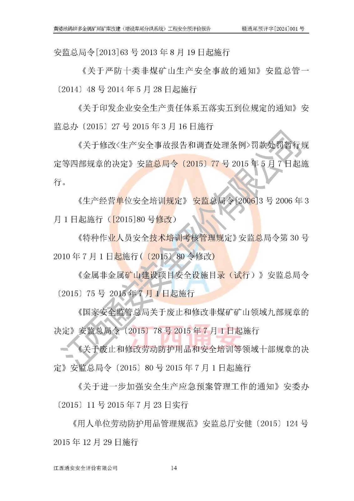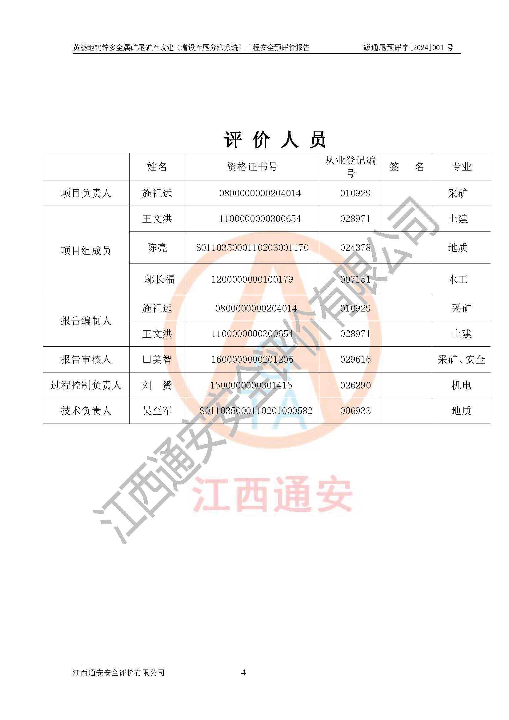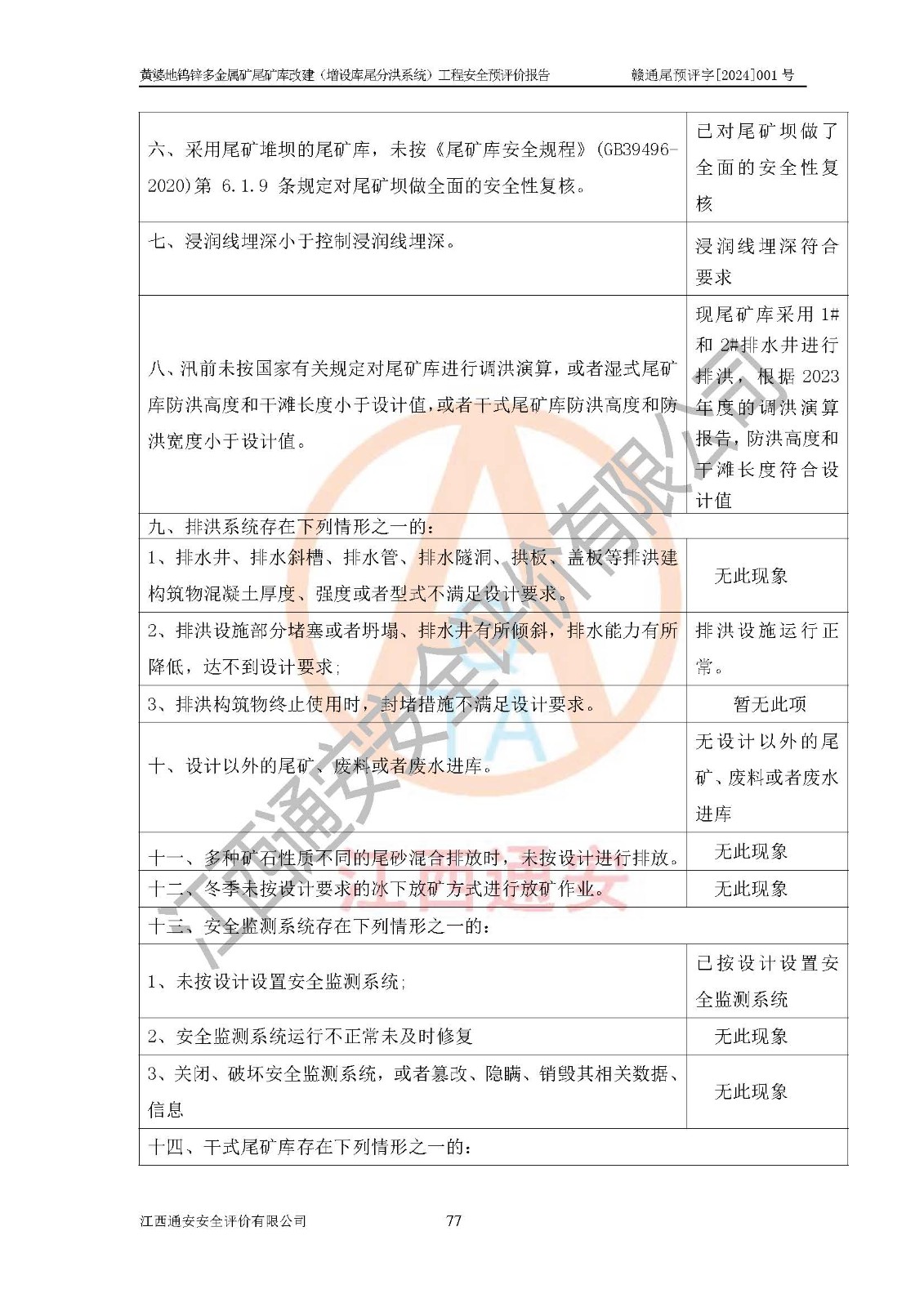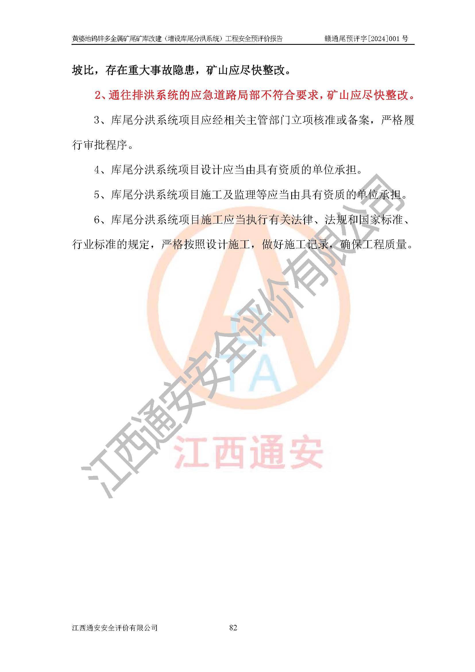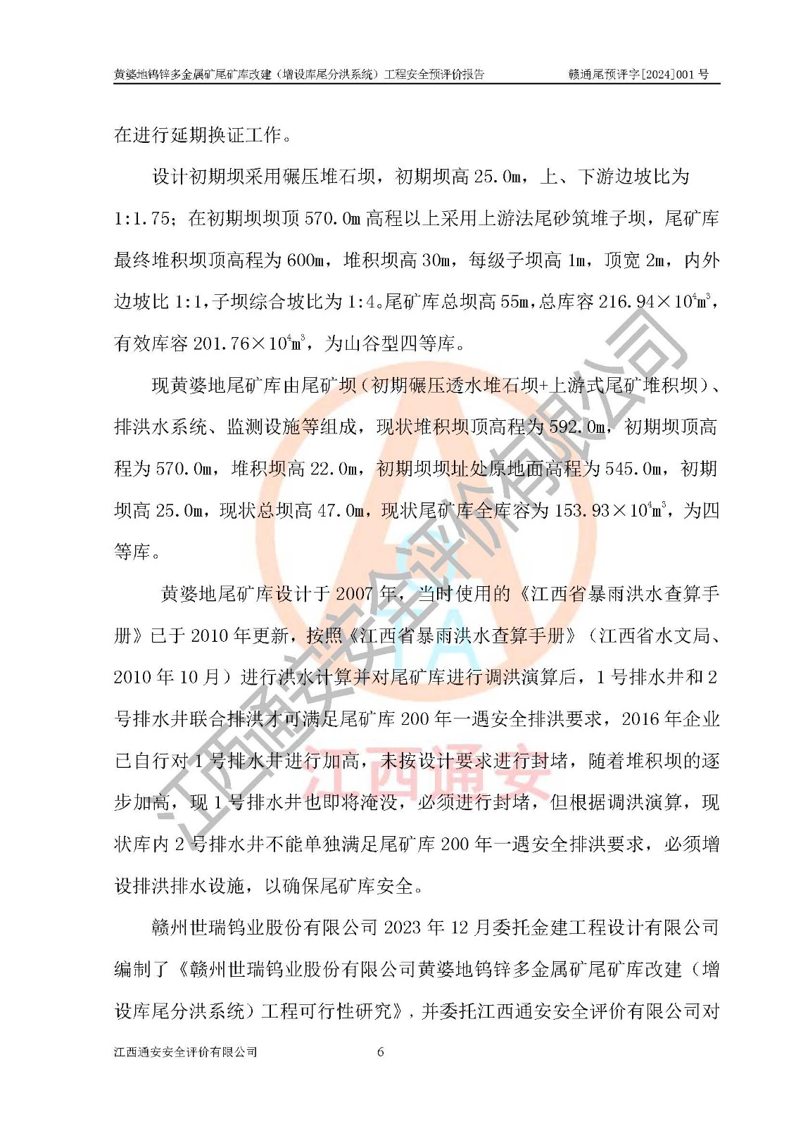 評價報告名稱 | 贛州世瑞鎢業(yè)股份有限公司黃婆地鎢鋅多金屬礦尾礦庫改建(增設(shè)庫尾分洪系統(tǒng))安全預(yù)評價報告 | |||