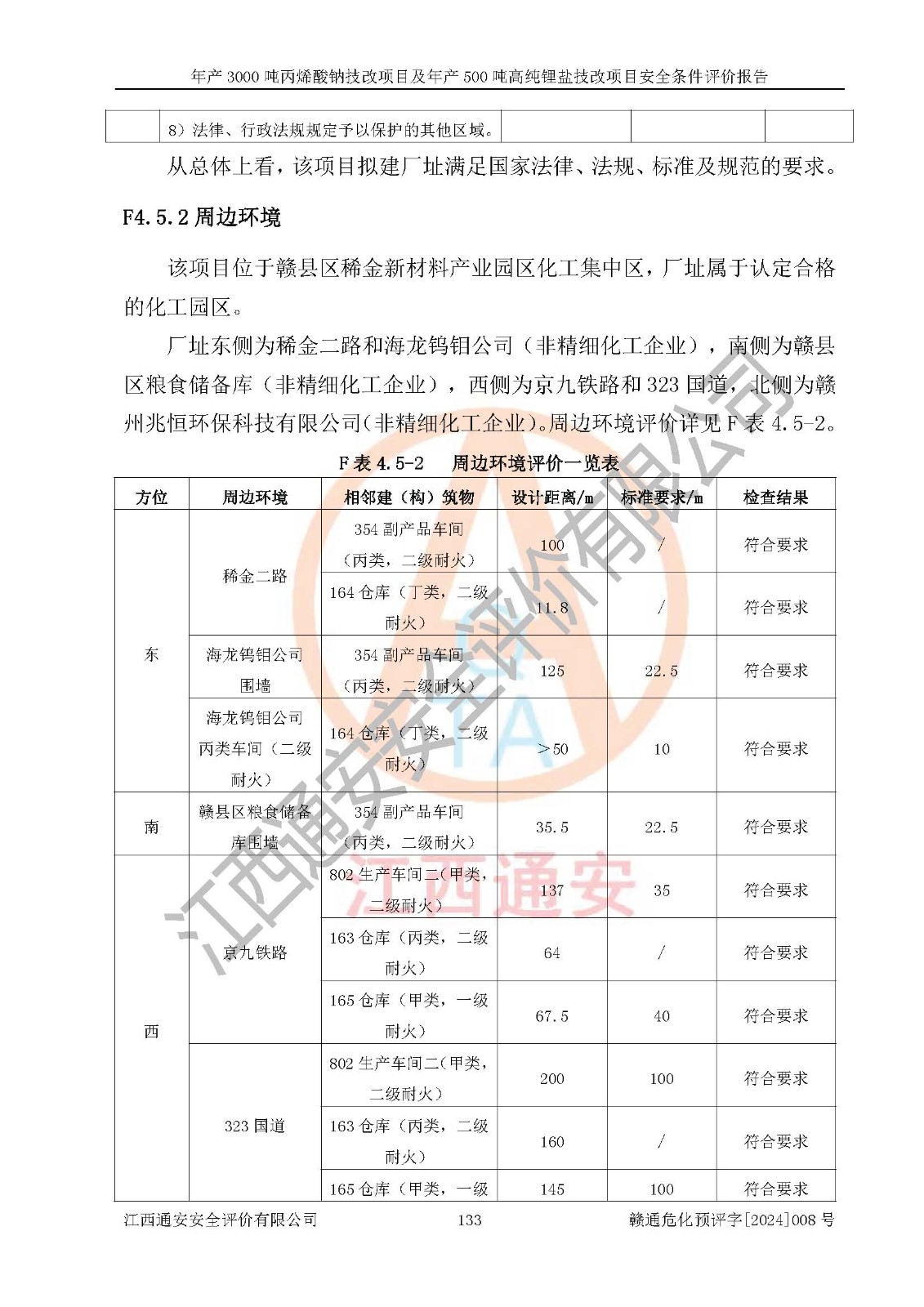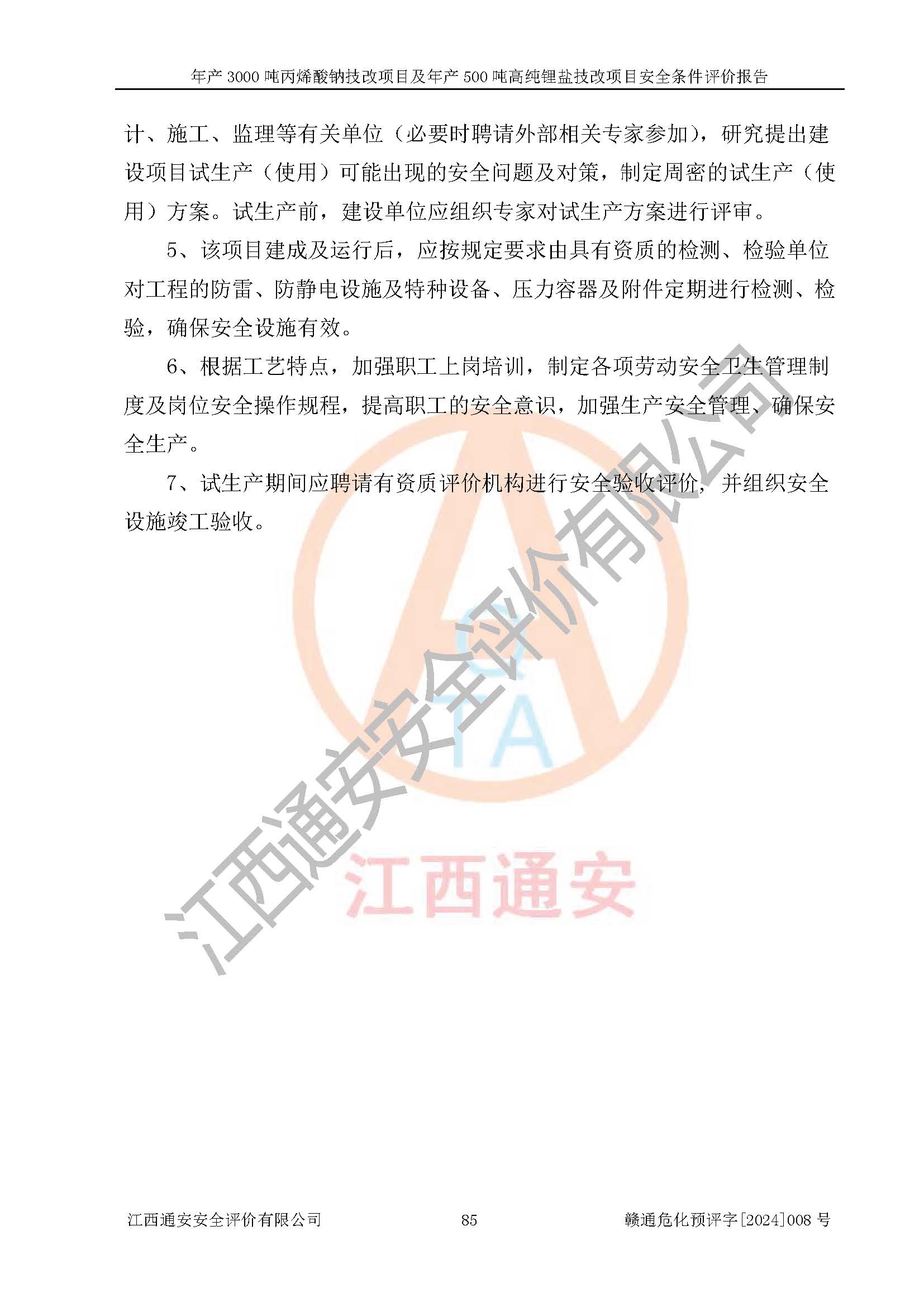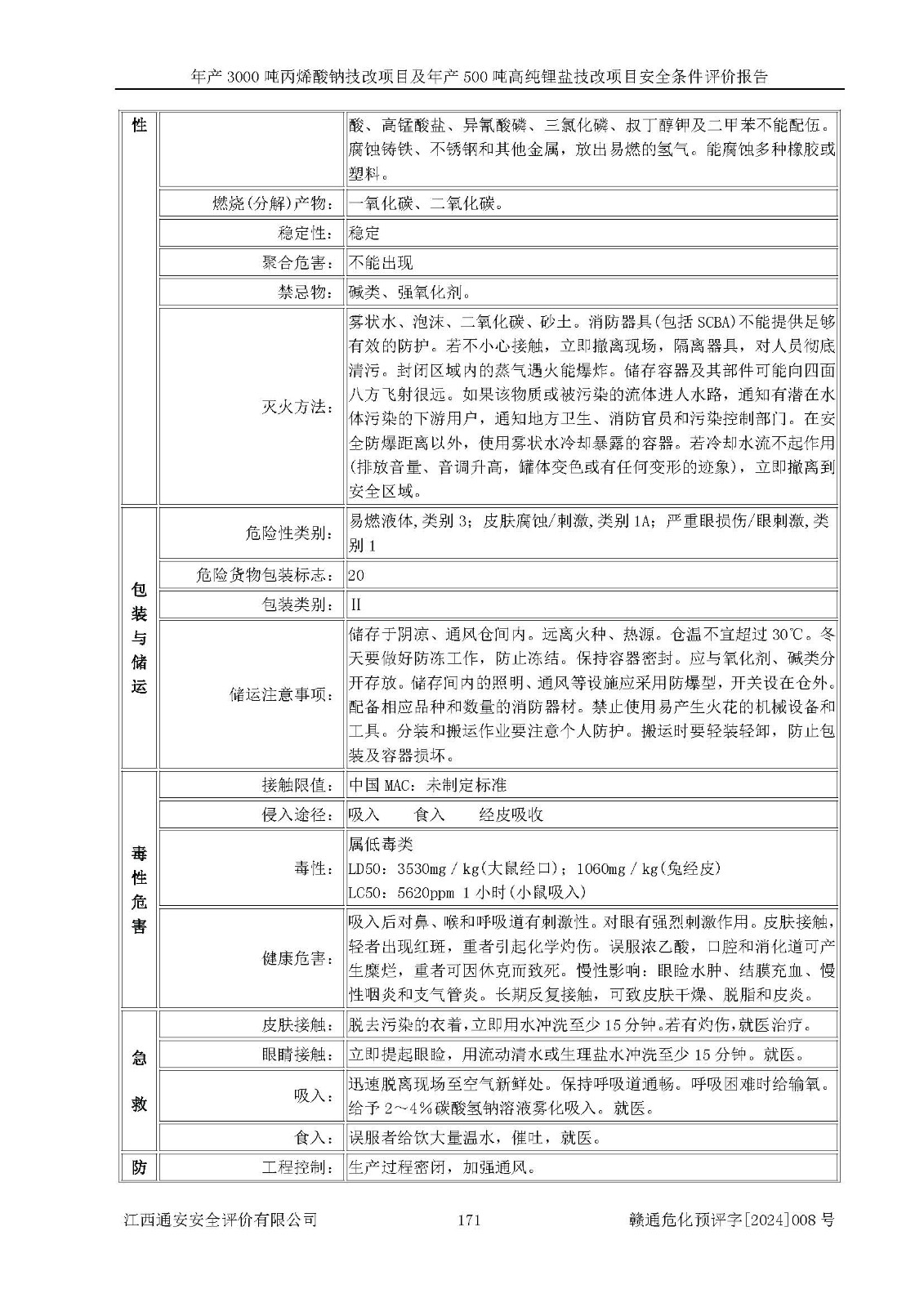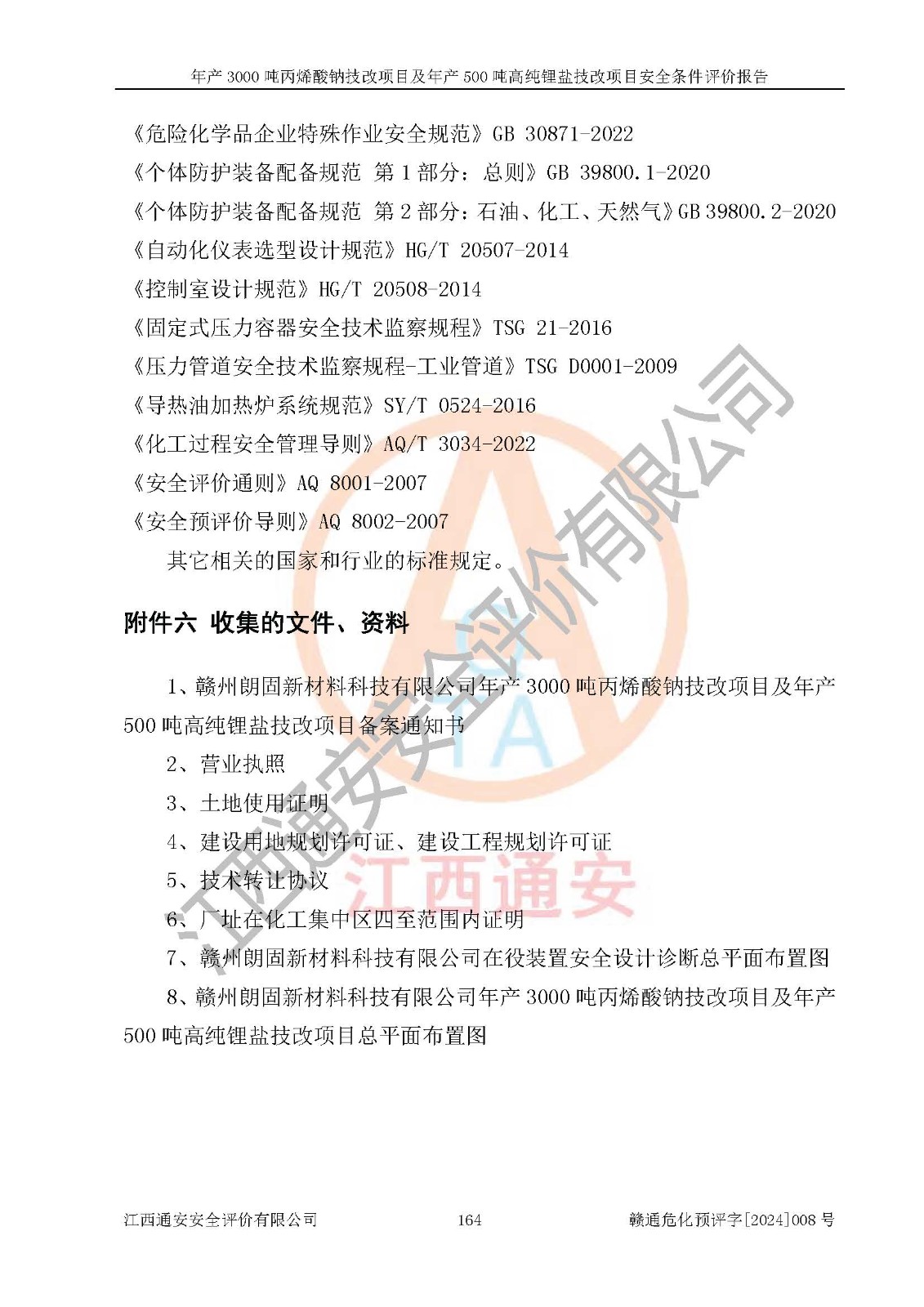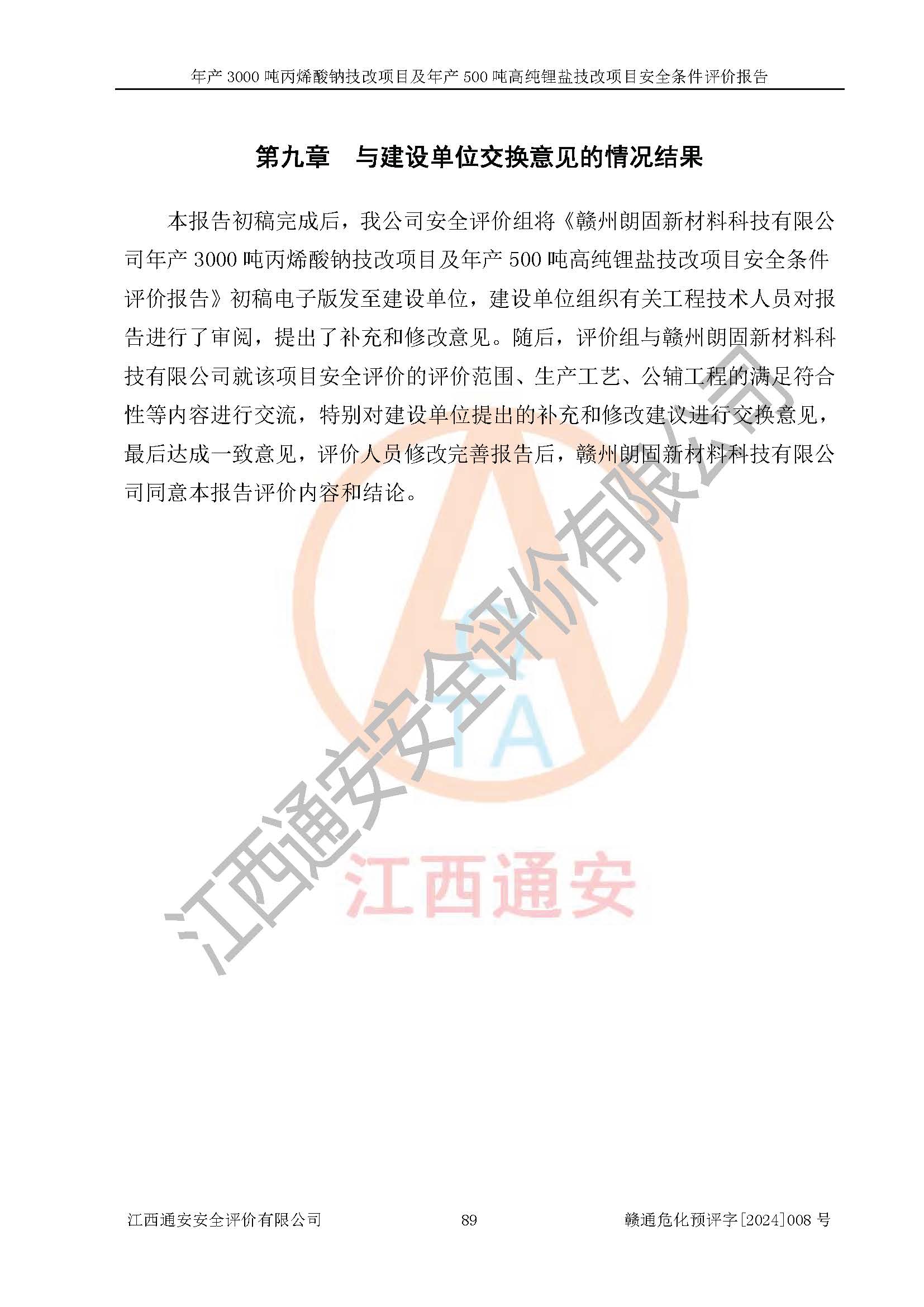 評(píng)價(jià)報(bào)告名稱 | 贛州朗固新材料科技有限公司年產(chǎn)3000噸丙烯酸鈉技改項(xiàng)目及年產(chǎn)500噸高純鋰鹽技改項(xiàng)目安全條件評(píng)價(jià)報(bào)告 | |||