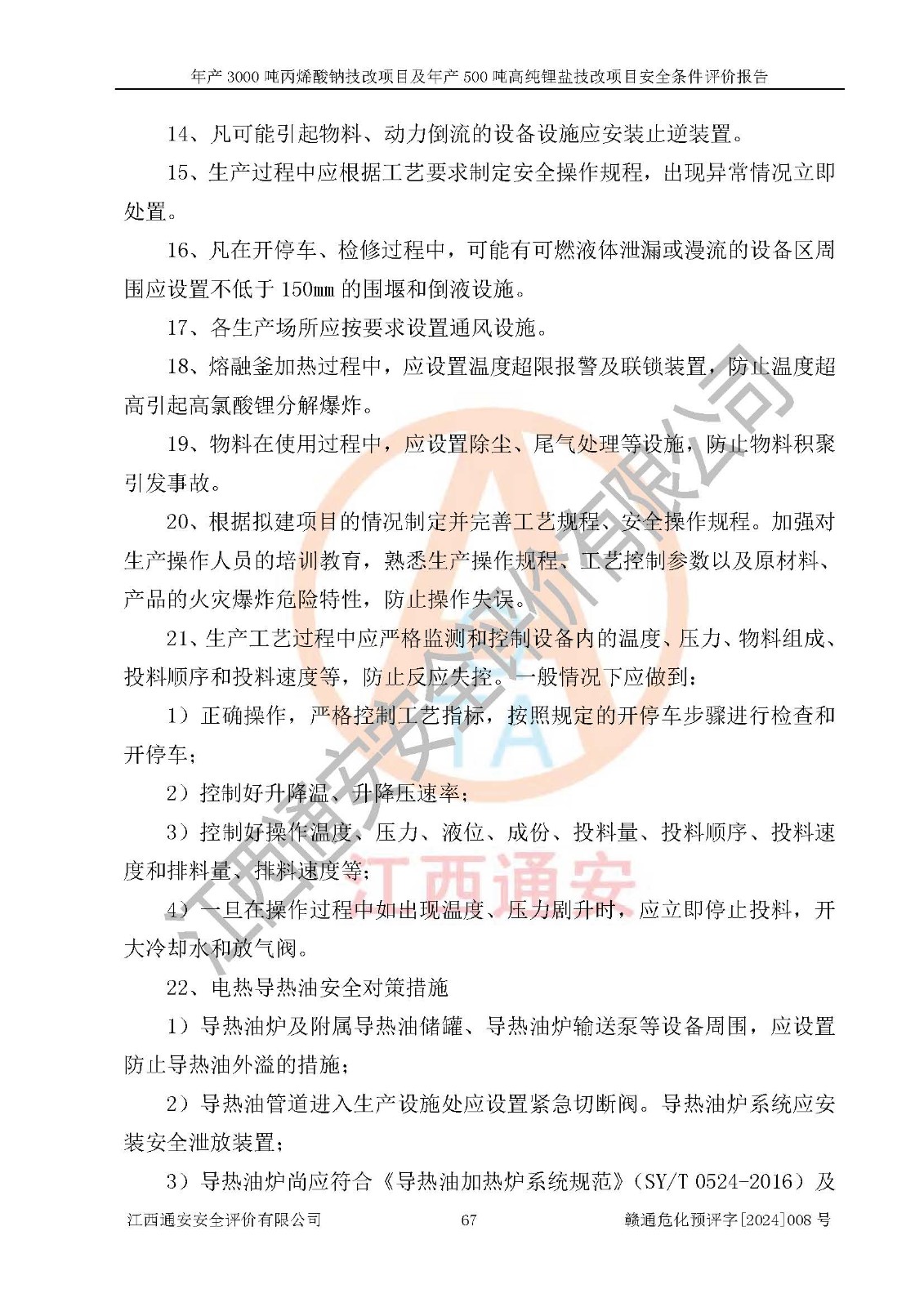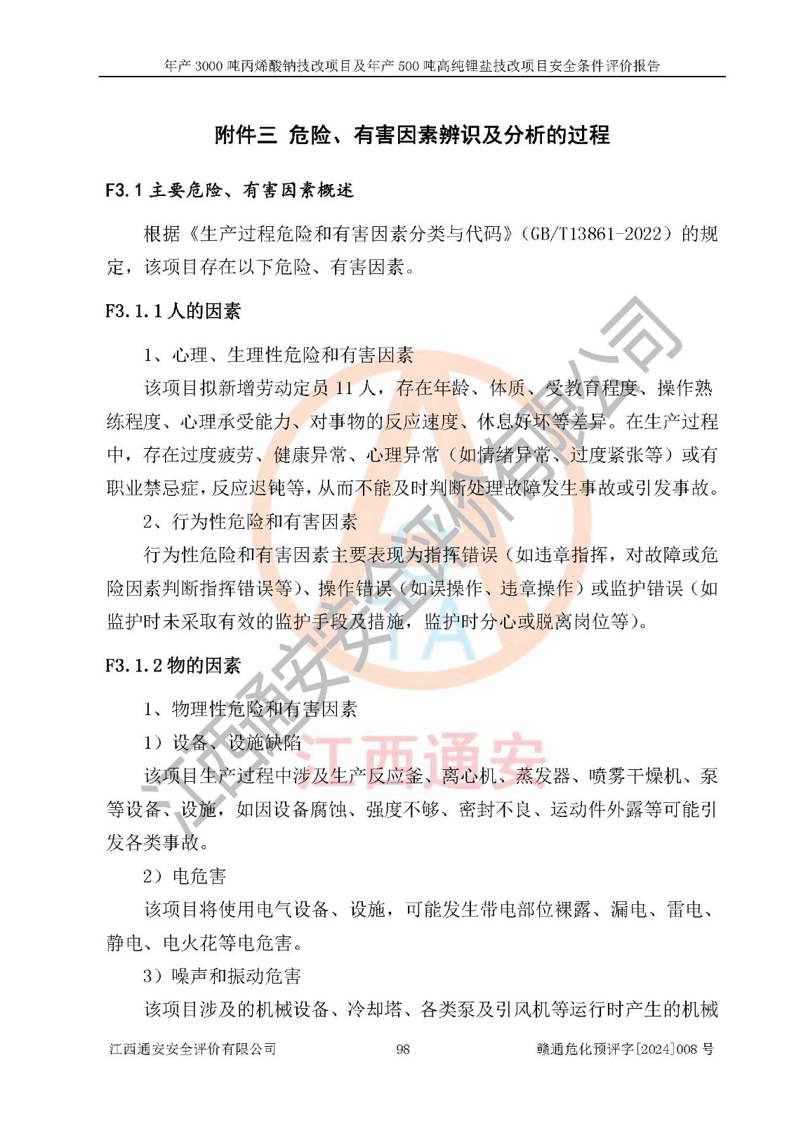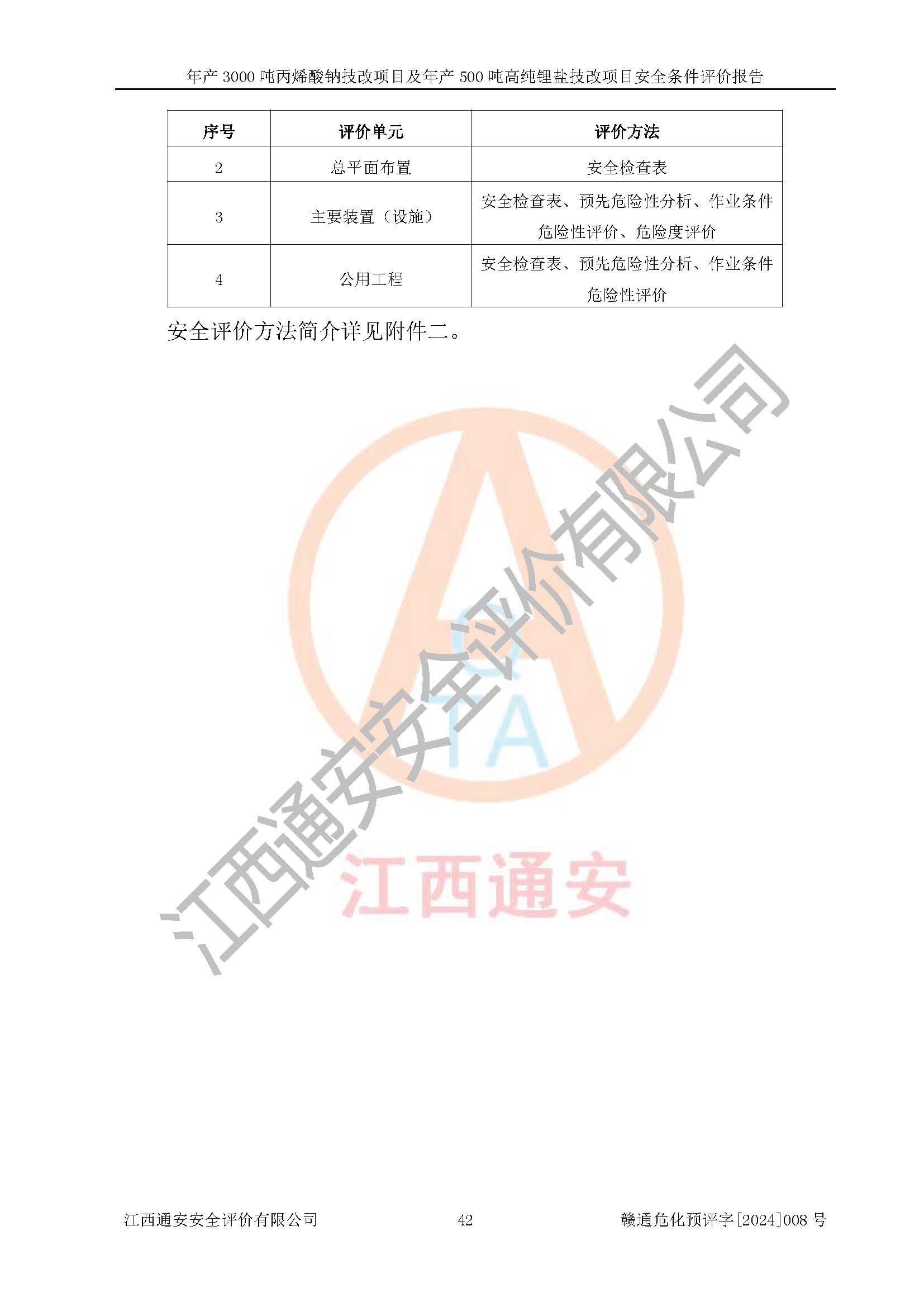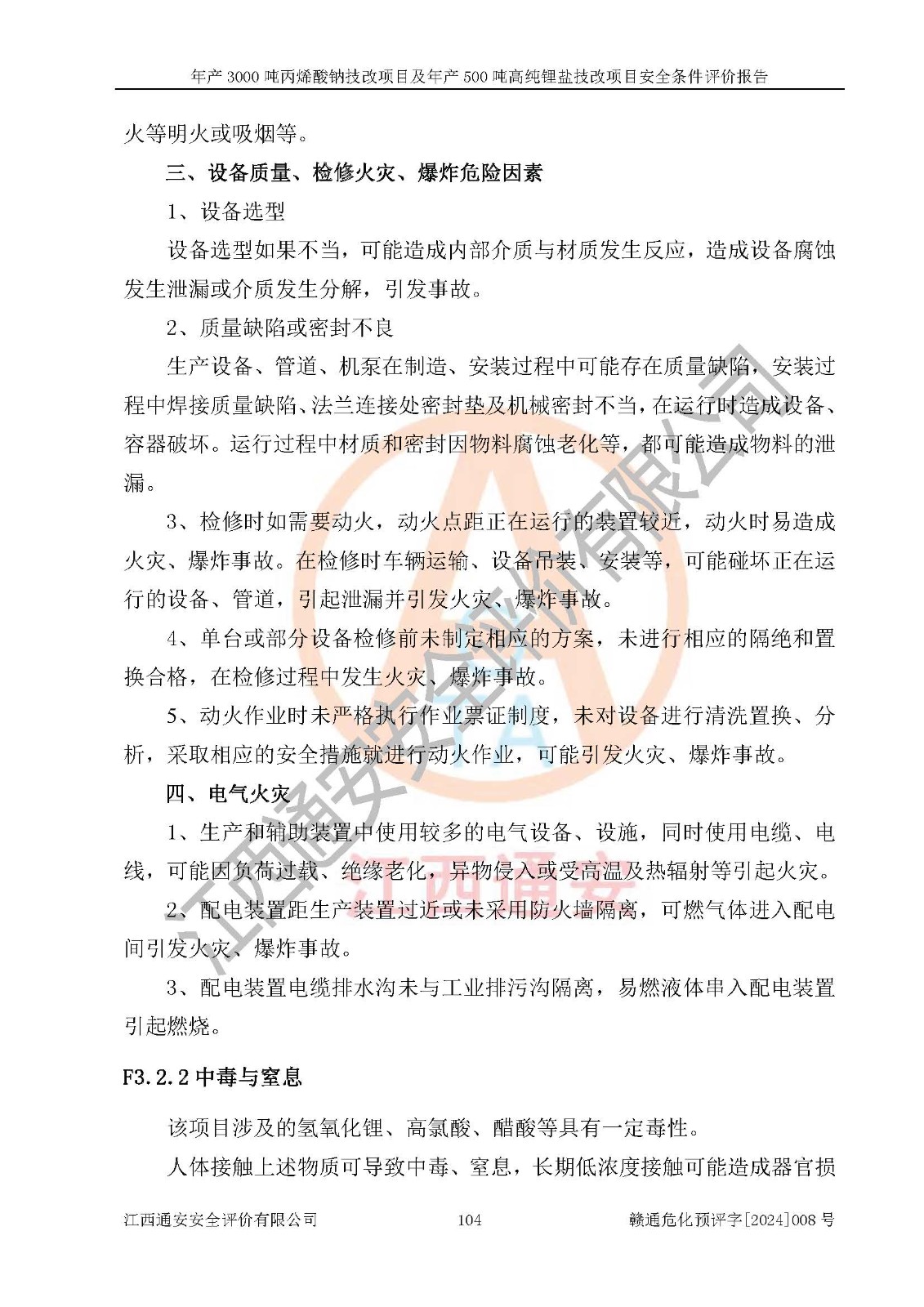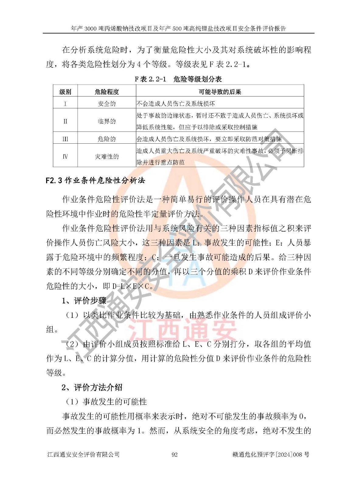 評(píng)價(jià)報(bào)告名稱 | 贛州朗固新材料科技有限公司年產(chǎn)3000噸丙烯酸鈉技改項(xiàng)目及年產(chǎn)500噸高純鋰鹽技改項(xiàng)目安全條件評(píng)價(jià)報(bào)告 | |||