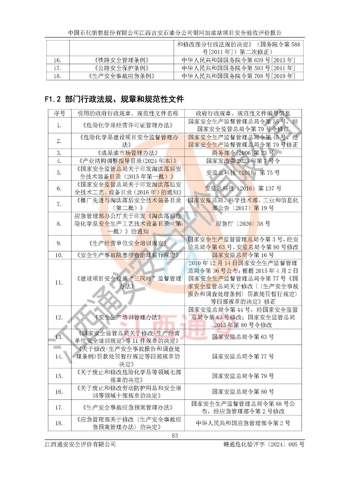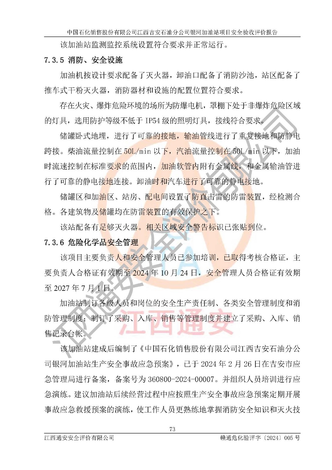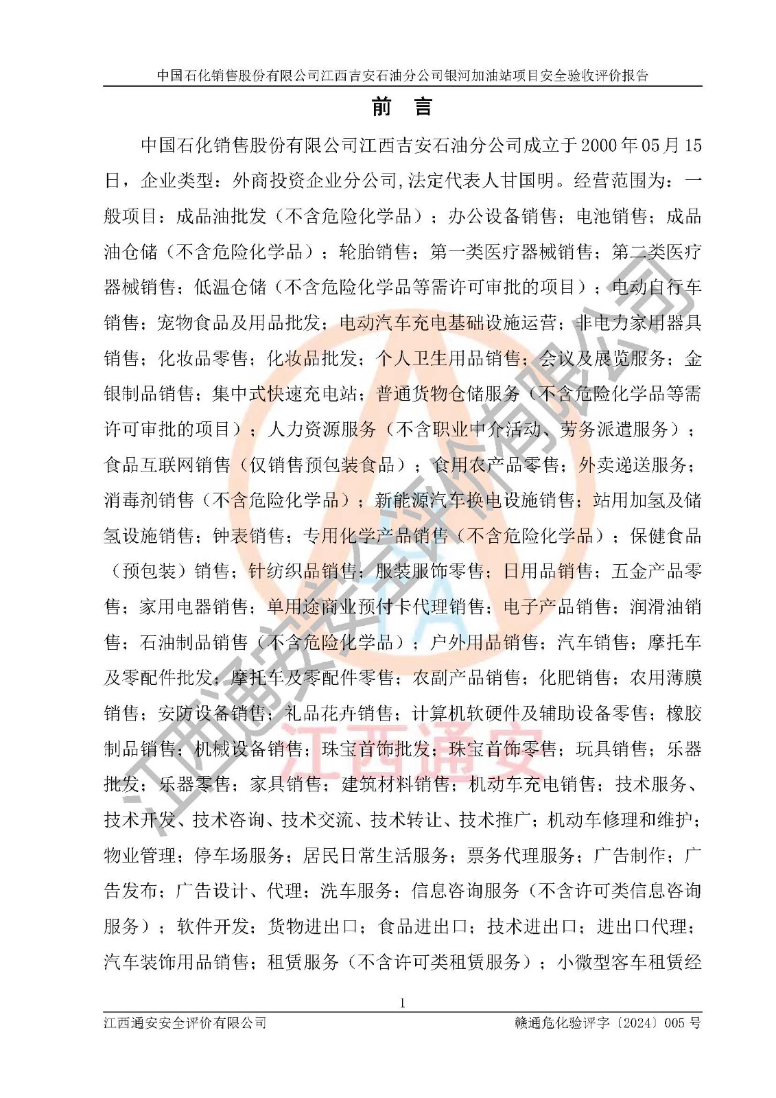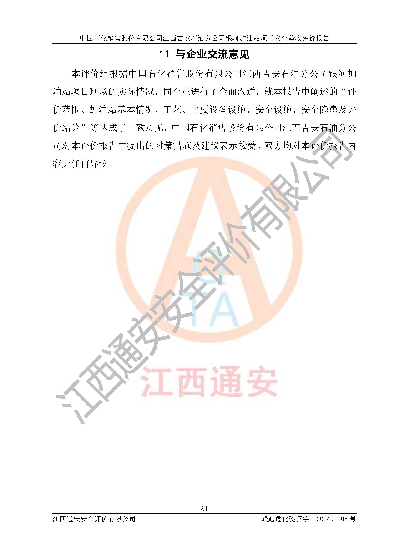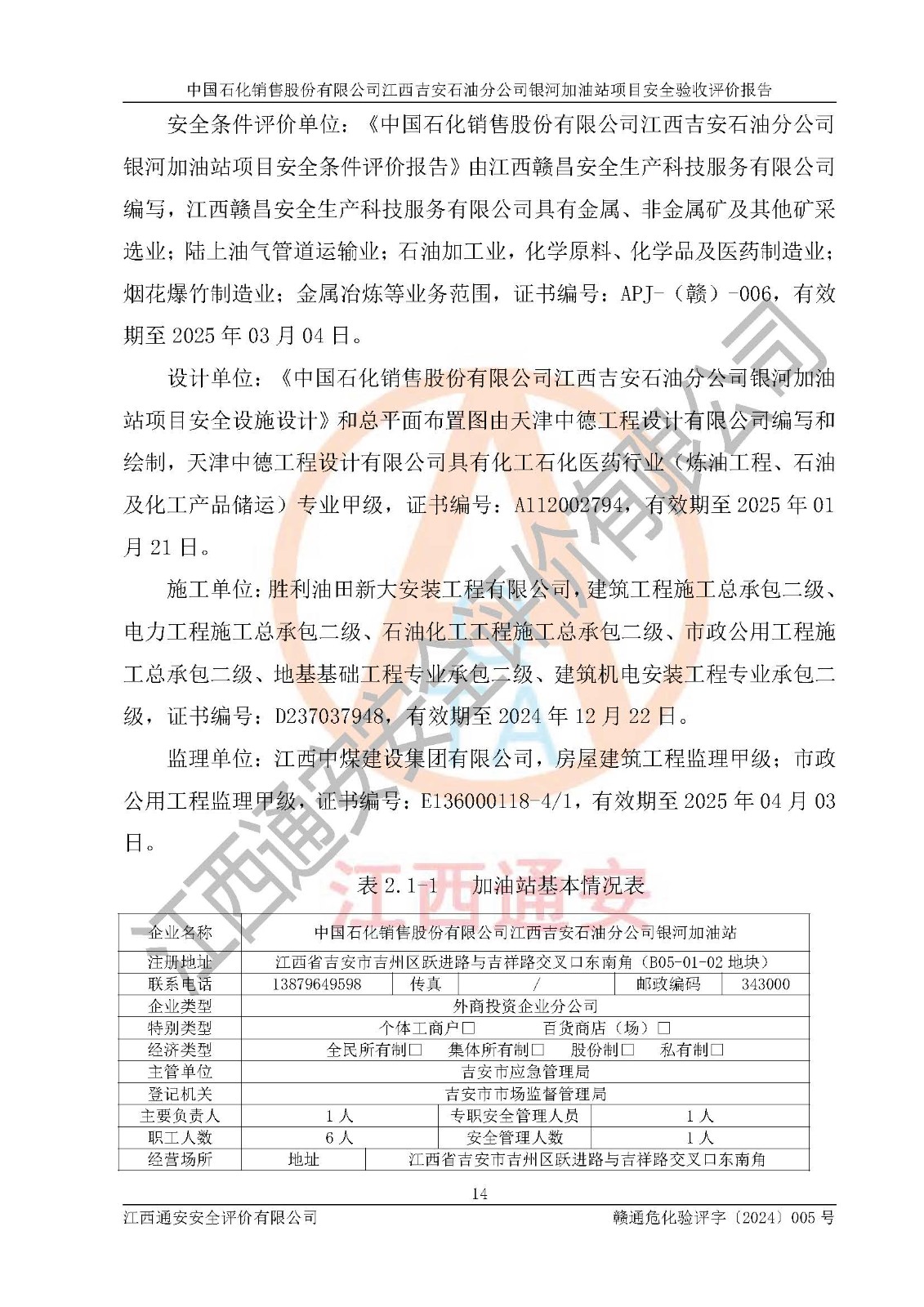 評(píng)價(jià)報(bào)告名稱 | 中國(guó)石化銷售股份有限公司江西吉安石油分公司銀河加油站安全驗(yàn)收狀評(píng)價(jià)報(bào)告 | |||
