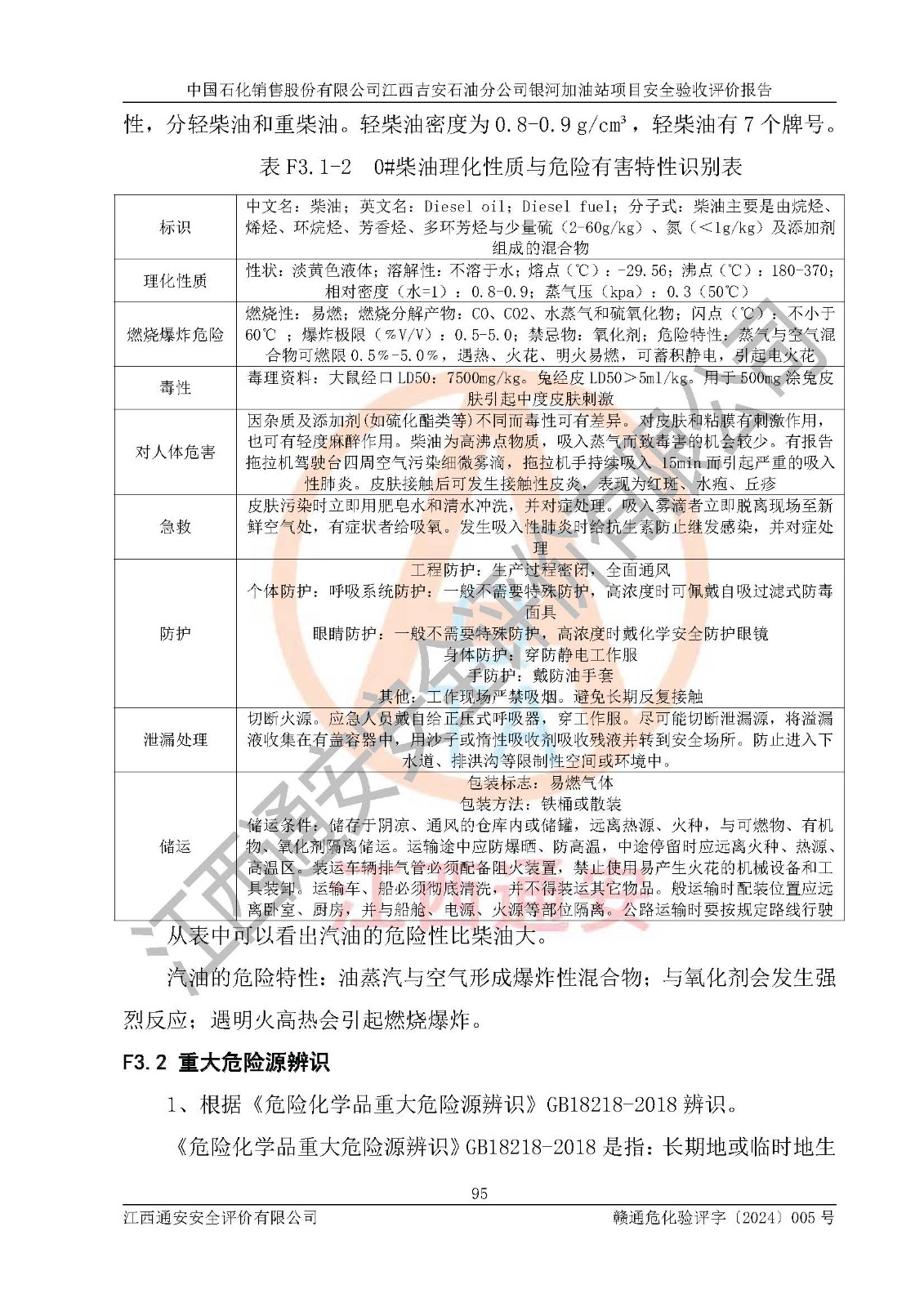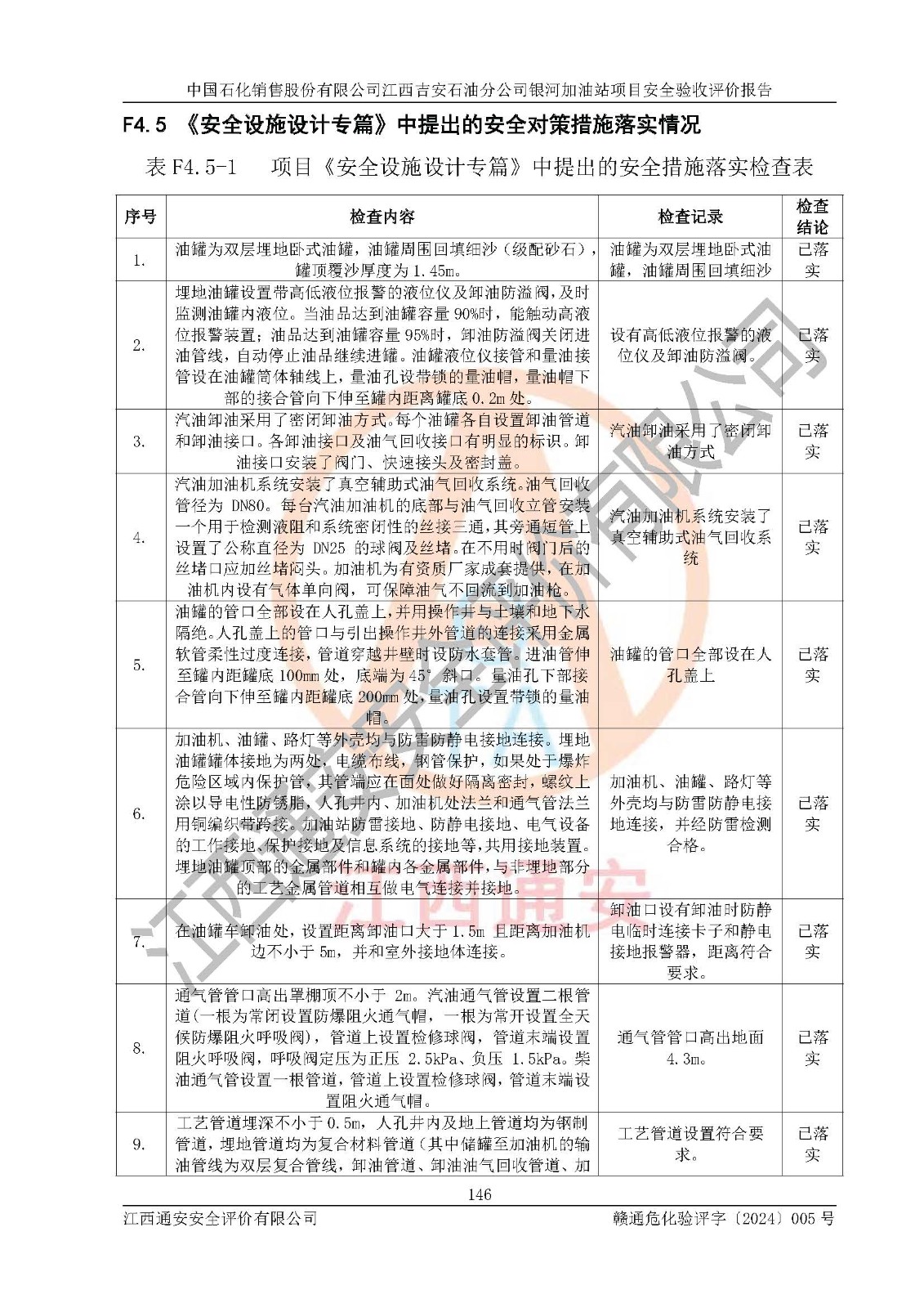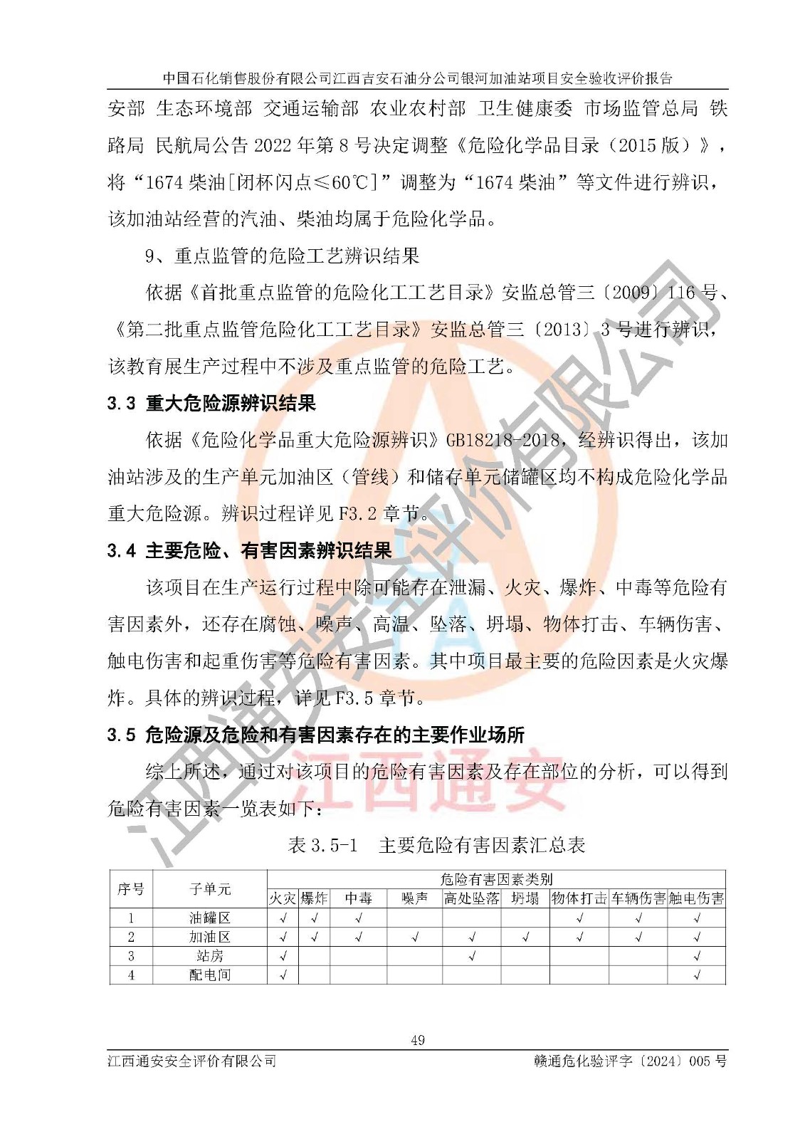 項(xiàng)目簡(jiǎn)介 | 中國(guó)石化銷售股份有限公司江西吉安石油分公司成立于2000年05月15日,企業(yè)類型:外商投資企業(yè)分公司,法定**人甘國(guó)明。 2023年1月21日中國(guó)石化銷售股份有限公司江西吉安石油分公司取得了吉安市吉州區(qū)行政審批局會(huì)出具的《江西省企業(yè)投資項(xiàng)目備案通知書》,項(xiàng)目名稱:中國(guó)石化銷售股份有限公司江西吉安設(shè)有分公司銀河加油站項(xiàng)目,項(xiàng)目統(tǒng)一代碼為:2201-360802-04-01-729745。 中國(guó)石化銷售股份有限公司江西吉安石油分公司銀河加油站項(xiàng)目位于江西省吉安市吉州區(qū)躍進(jìn)路與吉祥路交叉口東南角,加油站用地面積約7342m2。該加油站設(shè)有的1臺(tái)容積30m3的98#汽油埋地臥式油罐、1臺(tái)容積30m3的95#汽油埋地臥式油罐、2臺(tái)容積30m3的92#汽油埋地臥式雙層油罐、1臺(tái)容積30m3的0#柴油埋地臥式雙層油罐;*大存儲(chǔ)量為150m3,實(shí)際油品折算總?cè)萘繛?35m3(柴油折半),屬于二級(jí)加油站。該加油站埋地油罐設(shè)置在加油區(qū),位于車行道下,儲(chǔ)罐為承重罐。 中國(guó)石化銷售股份有限公司江西吉安石油分公司銀河加油站2022年7月委托江西贛昌安全生產(chǎn)科技服務(wù)有限公司編制《中國(guó)石化銷售股份有限公司江西吉安石油分公司銀河加油站項(xiàng)目安全條件評(píng)價(jià)報(bào)告》,并于2022年8月12日取得《危險(xiǎn)化學(xué)品建設(shè)項(xiàng)目安全條件備案告知意見書》(吉市危化項(xiàng)目安條審字[2022] 5 號(hào))。 中國(guó)石化銷售股份有限公司江西吉安石油分公司銀河加油站2022年8月委托天津中德工程設(shè)計(jì)有限公司編制《中國(guó)石化銷售股份有限公司江西吉安石油分公司銀河加油站項(xiàng)目安全設(shè)施設(shè)計(jì)》,并于2022年9月29日取得《危險(xiǎn)化學(xué)品建設(shè)項(xiàng)目安全設(shè)施設(shè)計(jì)審查意見書》(吉市危化項(xiàng)目安設(shè)審字[2022] 17 號(hào))。 項(xiàng)目生產(chǎn)過程中涉及的危險(xiǎn)化學(xué)品有:汽油、柴油等。 項(xiàng)目各生產(chǎn)和儲(chǔ)存單元均未構(gòu)成危險(xiǎn)化學(xué)品重大危險(xiǎn)源。 | |||