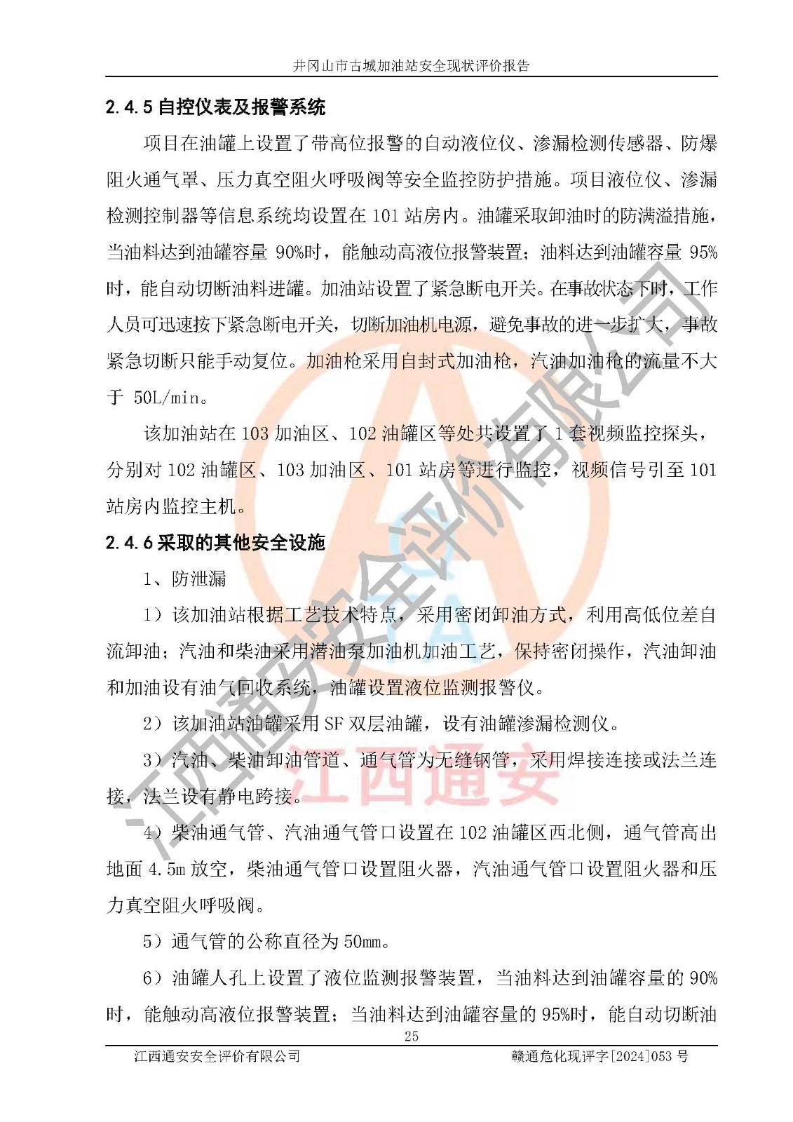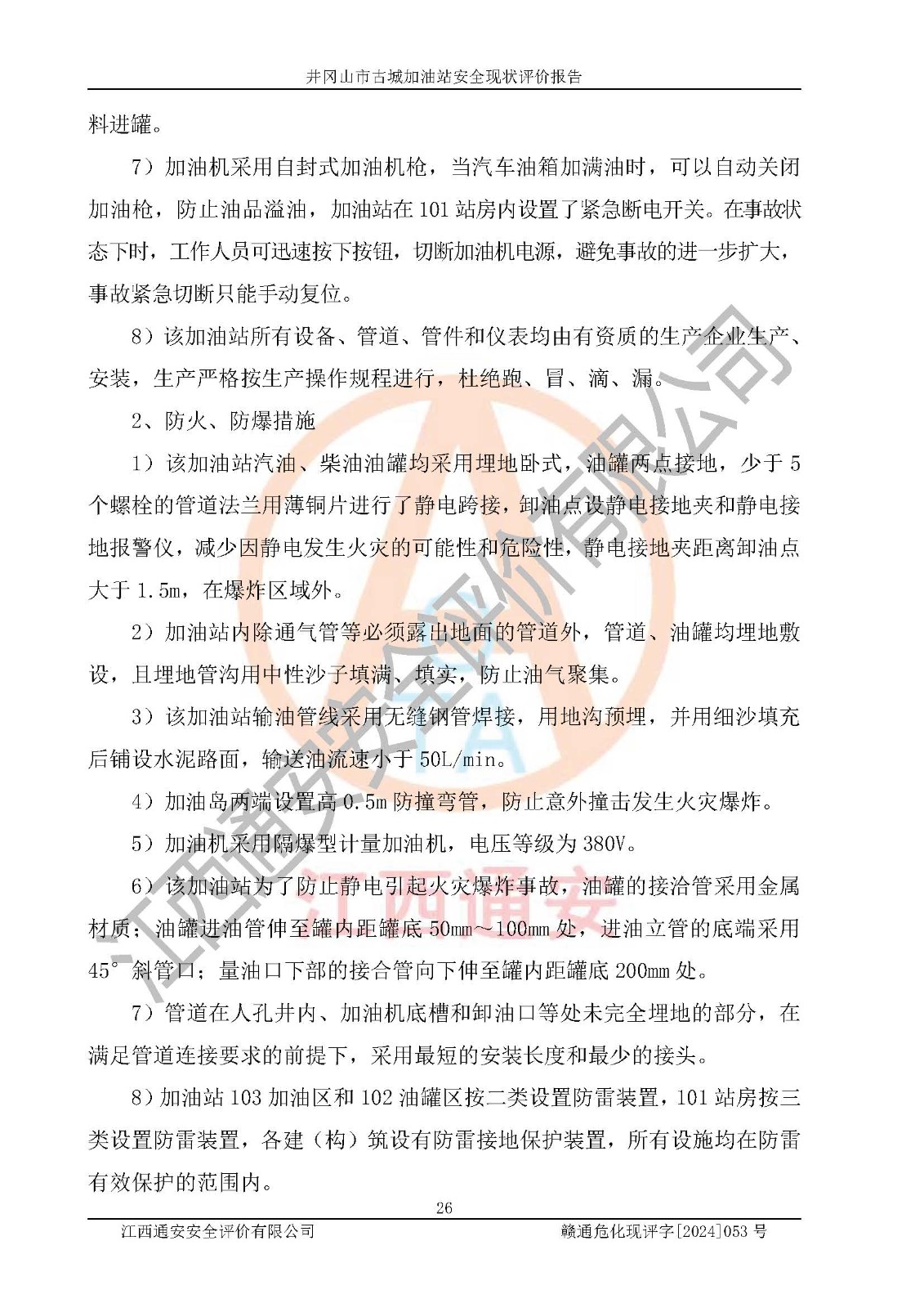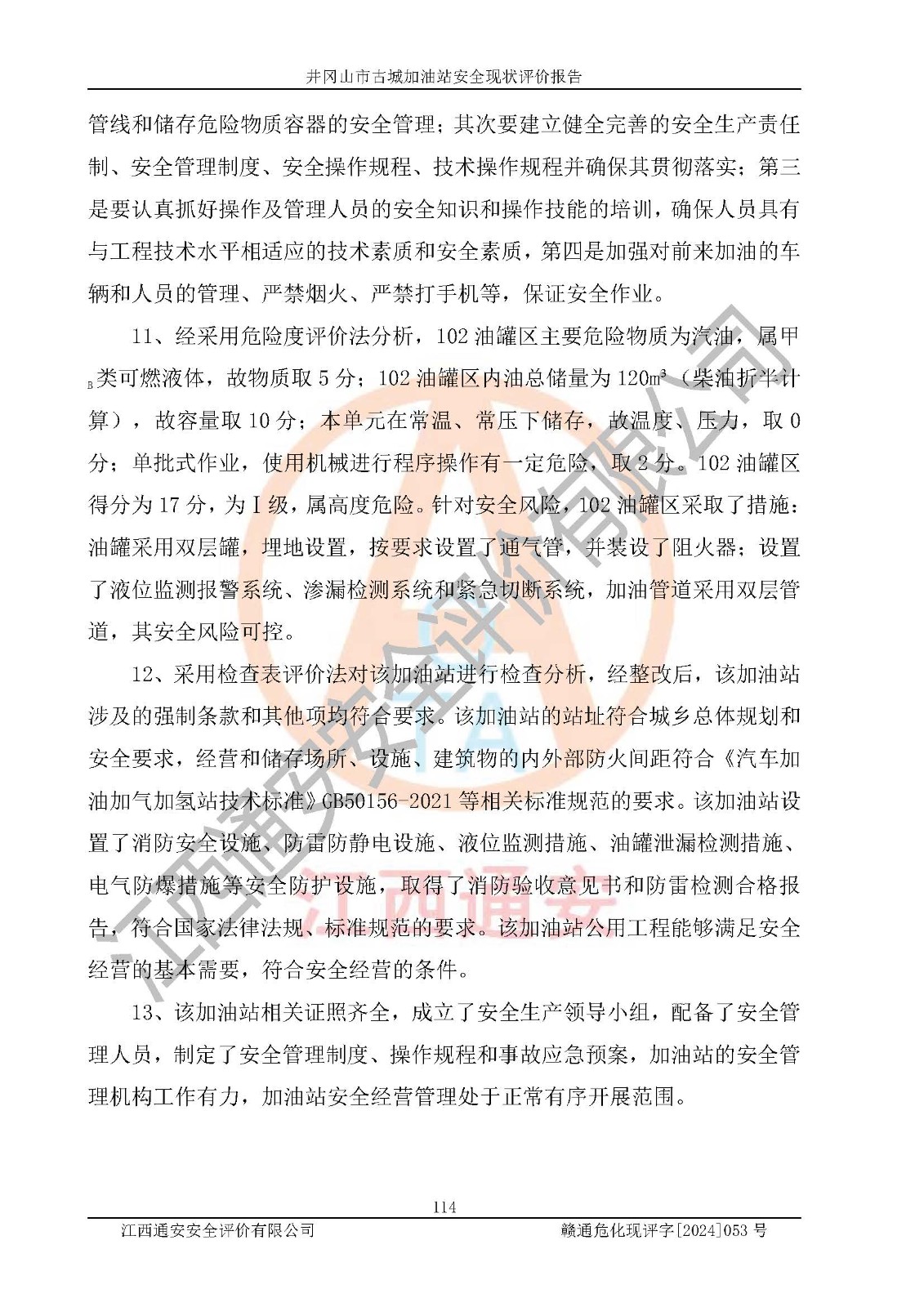 項目名稱 | 井岡山市古城加油站安全現(xiàn)狀評價報告 | ||||