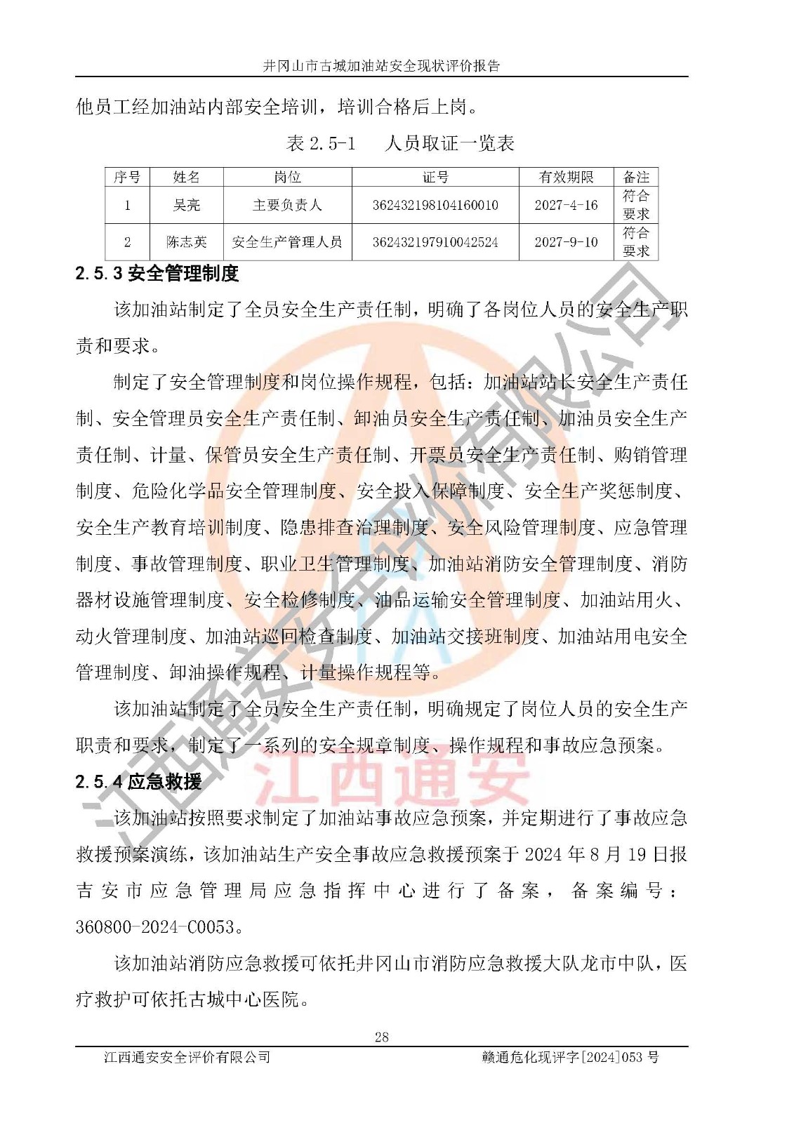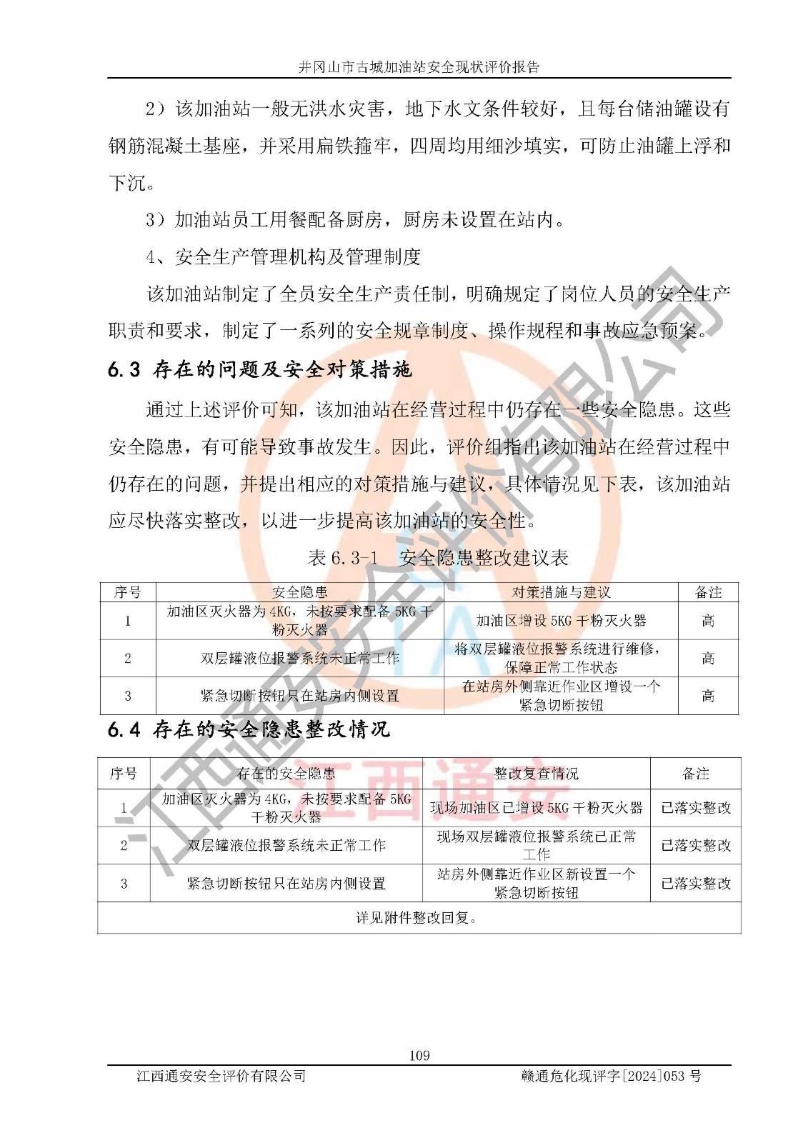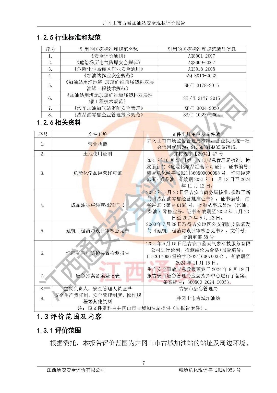 項目名稱 | 井岡山市古城加油站安全現(xiàn)狀評價報告 | ||||