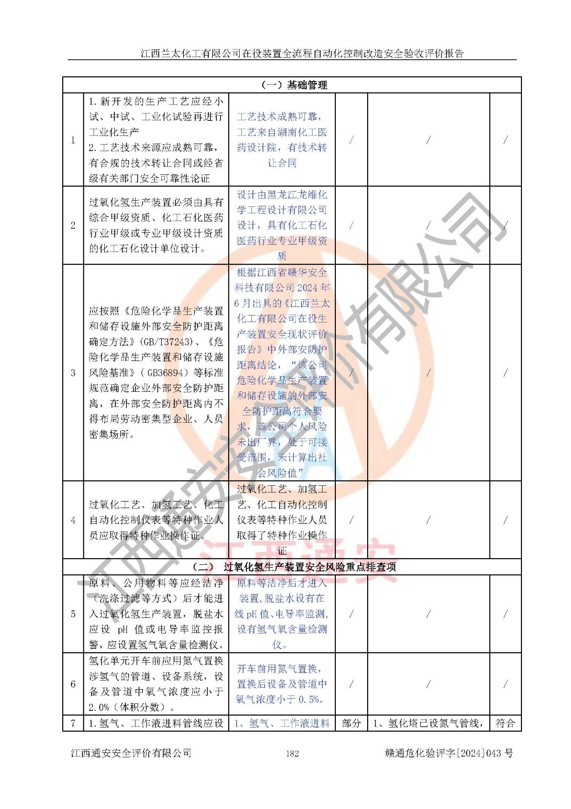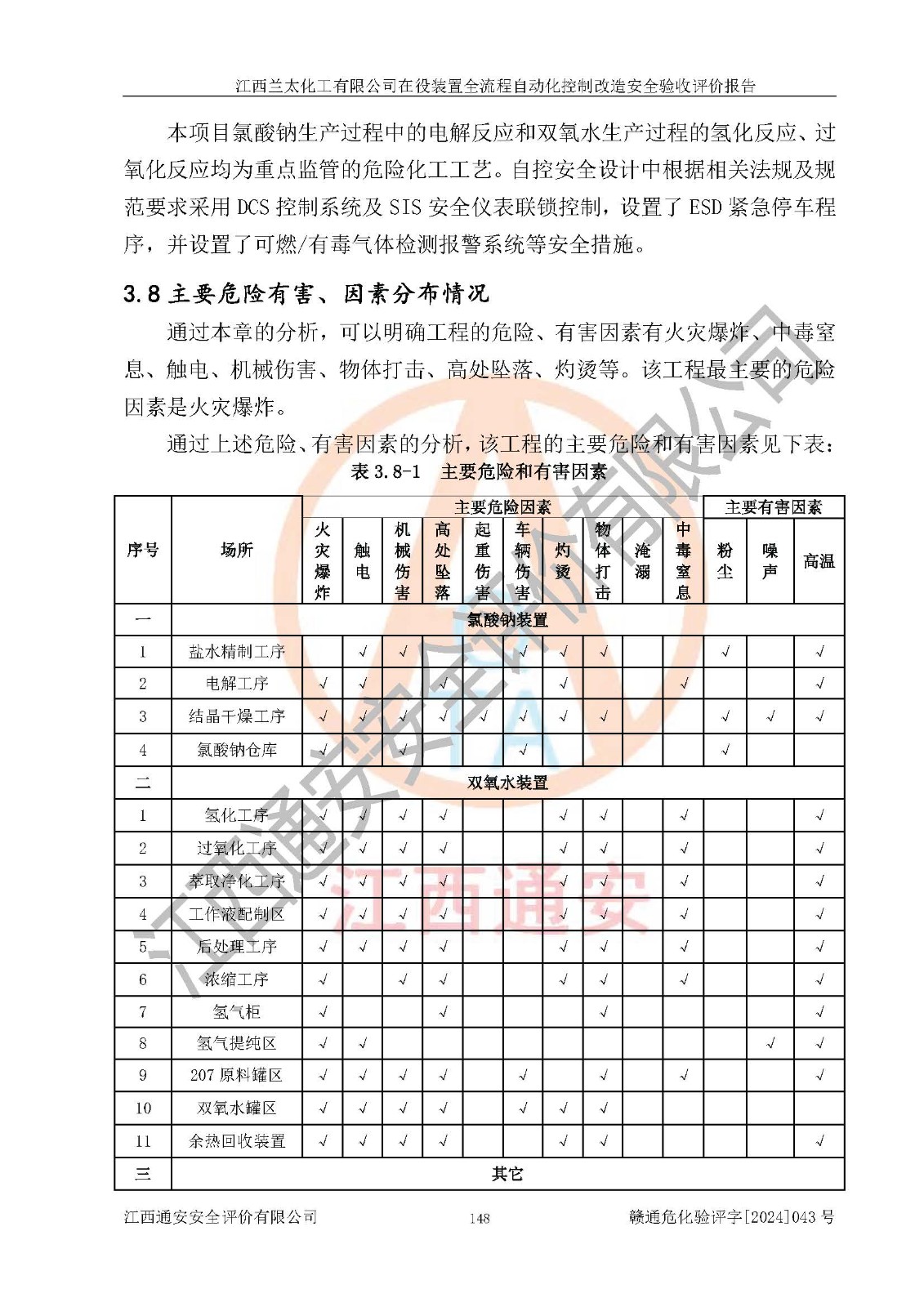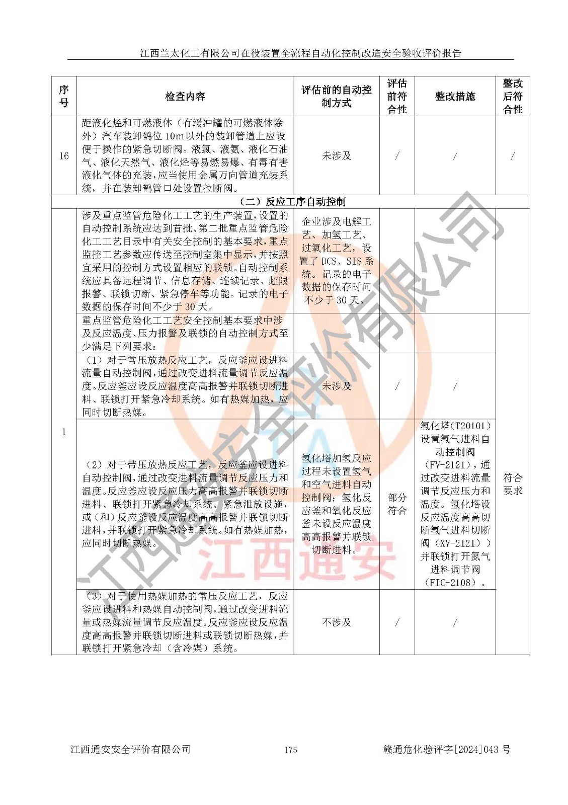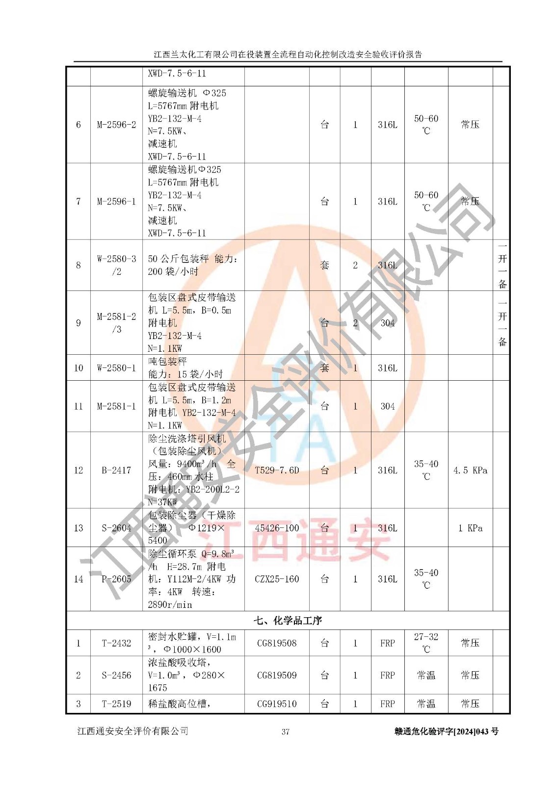 江西蘭太化工有限公司于2008年5月成立,公司位于江西省吉安市新干縣鹽化工業(yè)城北區(qū),公司法人**:李威。公司類型:有限責(zé)任公司(自然人投資或控股)。江西蘭太化工有限公司是一家氯酸鈉、雙氧水產(chǎn)品的生產(chǎn)、銷售(憑許可證**期限經(jīng)營);化工產(chǎn)品(不含化學(xué)危險品及易制毒化學(xué)品)批發(fā)及零售;進(jìn)出口經(jīng)營權(quán)。(依法須經(jīng)批準(zhǔn)的項目經(jīng)相關(guān)部門批準(zhǔn)后方可開展經(jīng)營活動)的有限責(zé)任公司。 江西蘭太化工有限公司現(xiàn)有安全生產(chǎn)許可證**期至2024年8月30日,證書編號:(贛) WH 安許證字【2012】 0714 號,許可范圍:氯酸鈉 (50kt/a ) 、雙氧水 (27.5%、 35% 、50% ,折合 27.5% 、150kt/a )。 項目生產(chǎn)過程中涉及的物料和成品中屬于危險化學(xué)品的有:氯酸鈉、雙氧水、氯化氫、氫氣、次氯酸鈉、重鉻酸鈉、氯氣(尾氣產(chǎn)生微量)、氫氧化鈉、鹽酸、磷酸、氮氣[壓縮的]、芳烴(以**苯為主)、柴油(柴油發(fā)電機使用)等。項目涉及的鹽酸屬于第三類易制毒化學(xué)品。不涉及的重點監(jiān)管的危險化學(xué)品。該工程涉及的氯氣(尾氣產(chǎn)生微量)屬于劇毒化學(xué)品。該工程涉及的氯氣(尾氣產(chǎn)生微量)、重鉻酸鈉屬于高毒物品。該工程涉及的重鉻酸鈉、氯酸鈉、雙氧水屬于易制爆化學(xué)品。項目氯酸鈉生產(chǎn)過程中的電解反應(yīng)和雙氧水生產(chǎn)過程的氫化反應(yīng)、過氧化反應(yīng)均為重點監(jiān)管的危險化工工藝。公司201罐區(qū)構(gòu)成三級危險化學(xué)品重大危險源,202氯酸鈉危險化學(xué)品倉庫、205氯酸鈉危險化學(xué)品倉庫、206氯酸鈉危險化學(xué)品倉庫分別構(gòu)成四級危險化學(xué)品重大危險源。 |