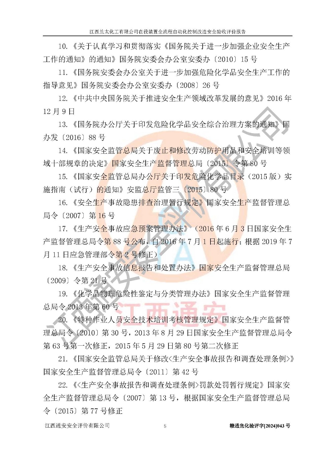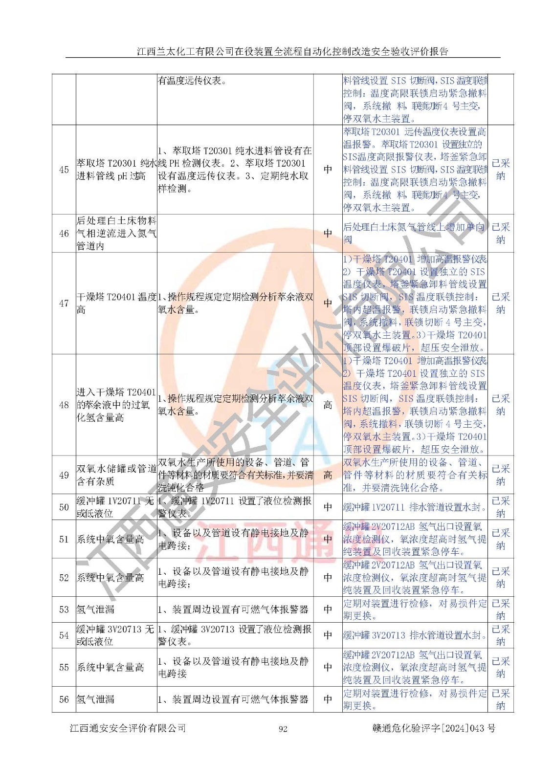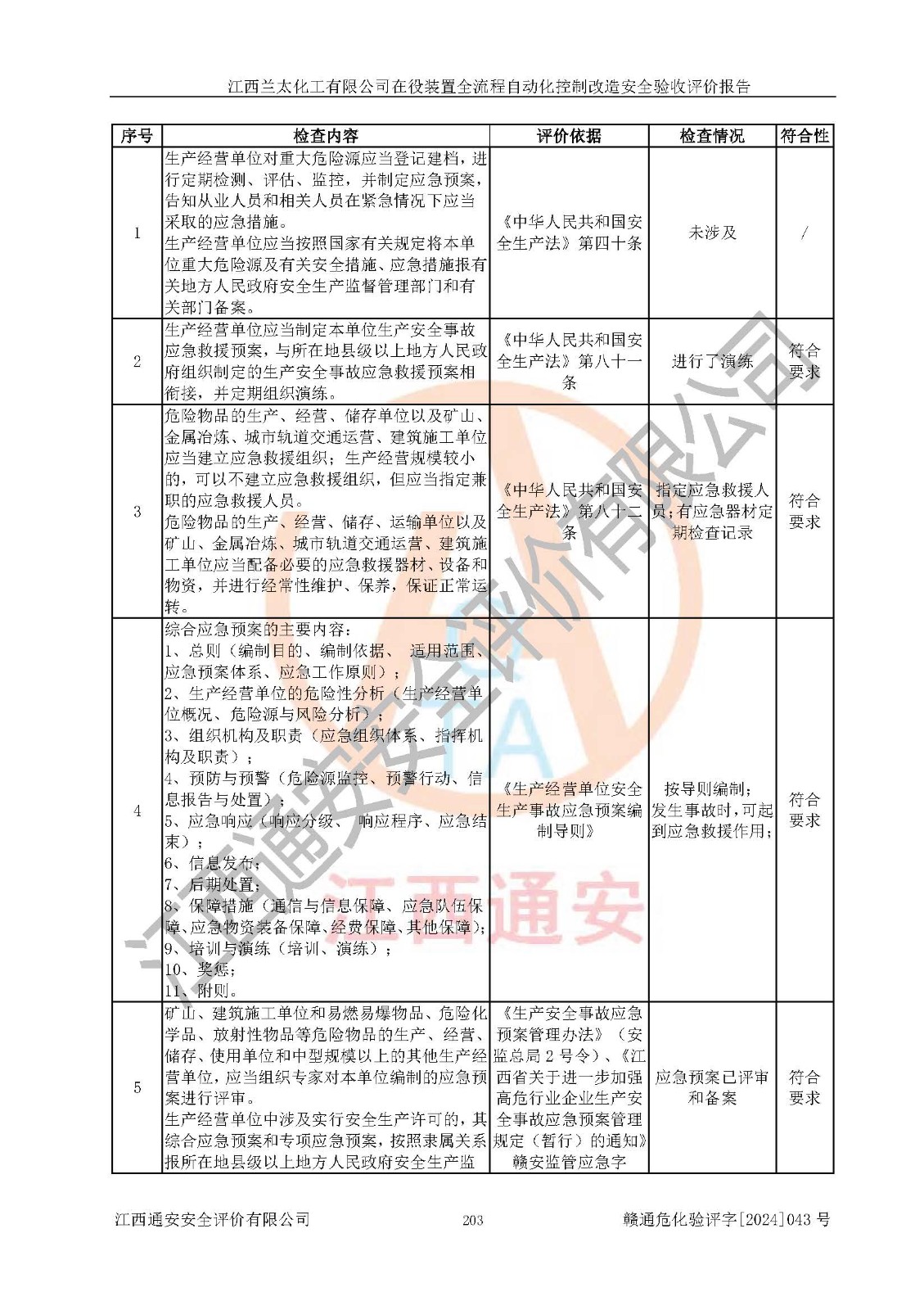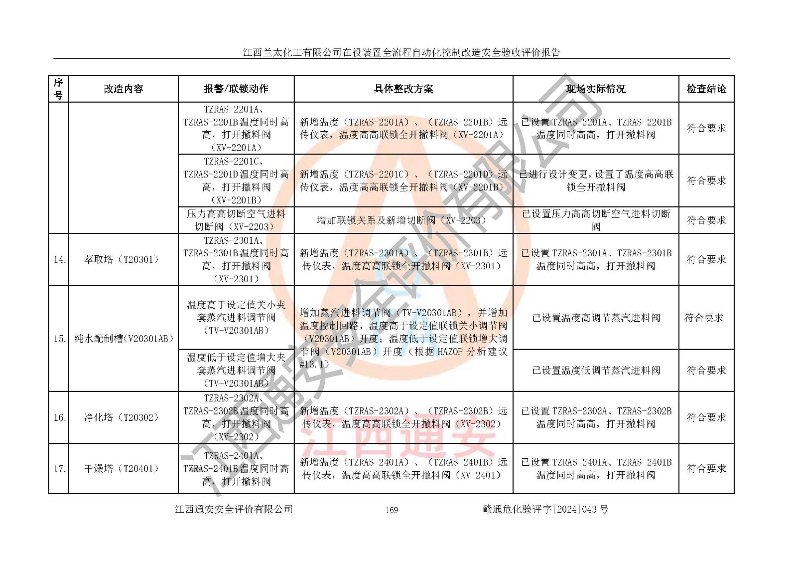 江西蘭太化工有限公司于2008年5月成立,公司位于江西省吉安市新干縣鹽化工業(yè)城北區(qū),公司法人**:李威。公司類型:有限責(zé)任公司(自然人投資或控股)。江西蘭太化工有限公司是一家氯酸鈉、雙氧水產(chǎn)品的生產(chǎn)、銷售(憑許可證**期限經(jīng)營);化工產(chǎn)品(不含化學(xué)危險品及易制毒化學(xué)品)批發(fā)及零售;進(jìn)出口經(jīng)營權(quán)。(依法須經(jīng)批準(zhǔn)的項目經(jīng)相關(guān)部門批準(zhǔn)后方可開展經(jīng)營活動)的有限責(zé)任公司。 江西蘭太化工有限公司現(xiàn)有安全生產(chǎn)許可證**期至2024年8月30日,證書編號:(贛) WH 安許證字【2012】 0714 號,許可范圍:氯酸鈉 (50kt/a ) 、雙氧水 (27.5%、 35% 、50% ,折合 27.5% 、150kt/a )。 項目生產(chǎn)過程中涉及的物料和成品中屬于危險化學(xué)品的有:氯酸鈉、雙氧水、氯化氫、氫氣、次氯酸鈉、重鉻酸鈉、氯氣(尾氣產(chǎn)生微量)、氫氧化鈉、鹽酸、磷酸、氮氣[壓縮的]、芳烴(以**苯為主)、柴油(柴油發(fā)電機使用)等。項目涉及的鹽酸屬于第三類易制毒化學(xué)品。不涉及的重點監(jiān)管的危險化學(xué)品。該工程涉及的氯氣(尾氣產(chǎn)生微量)屬于劇毒化學(xué)品。該工程涉及的氯氣(尾氣產(chǎn)生微量)、重鉻酸鈉屬于高毒物品。該工程涉及的重鉻酸鈉、氯酸鈉、雙氧水屬于易制爆化學(xué)品。項目氯酸鈉生產(chǎn)過程中的電解反應(yīng)和雙氧水生產(chǎn)過程的氫化反應(yīng)、過氧化反應(yīng)均為重點監(jiān)管的危險化工工藝。公司201罐區(qū)構(gòu)成三級危險化學(xué)品重大危險源,202氯酸鈉危險化學(xué)品倉庫、205氯酸鈉危險化學(xué)品倉庫、206氯酸鈉危險化學(xué)品倉庫分別構(gòu)成四級危險化學(xué)品重大危險源。 |