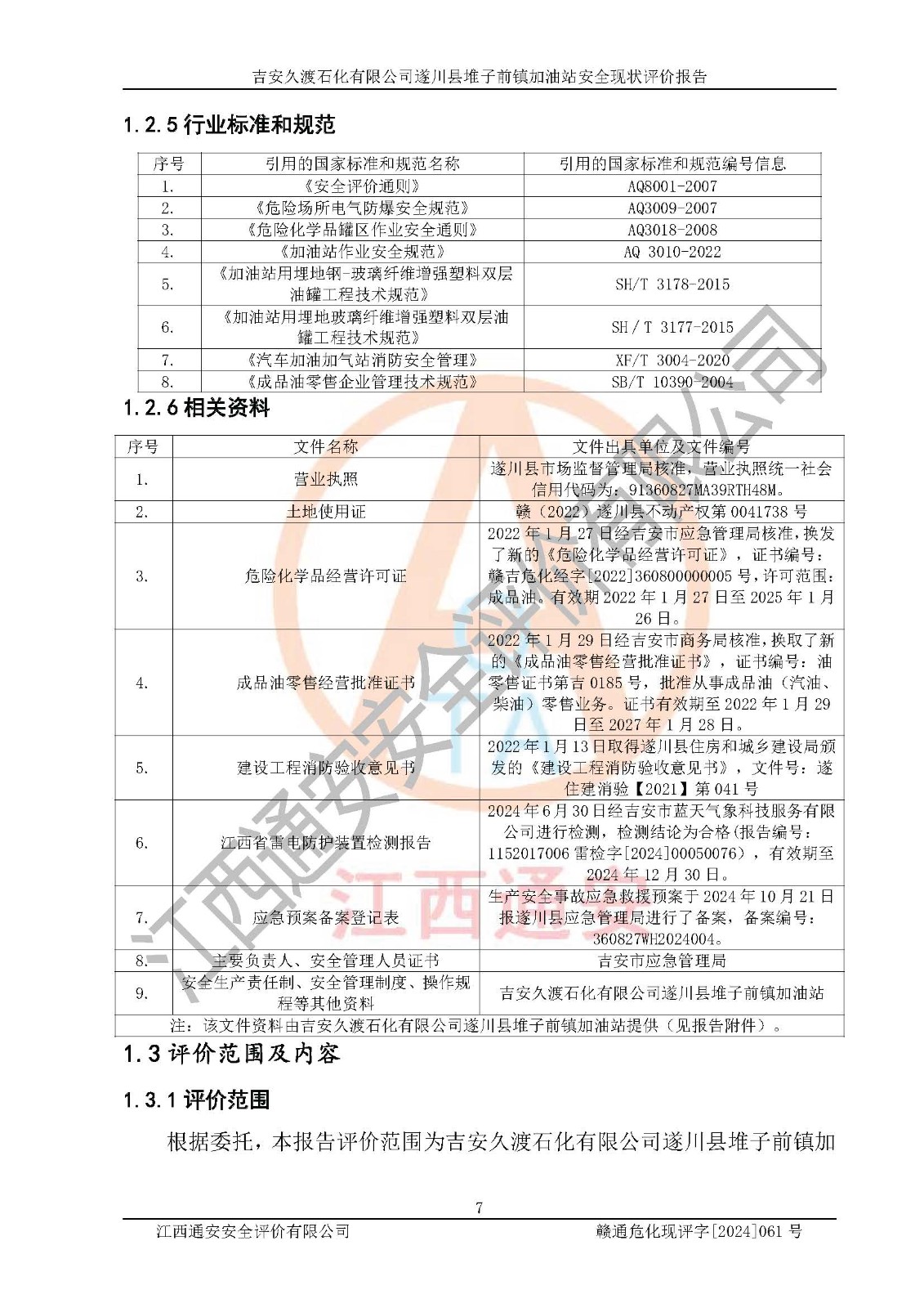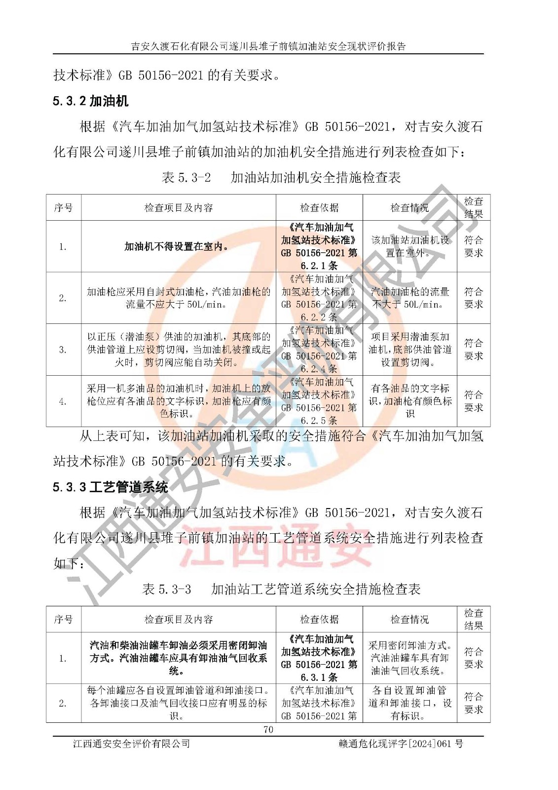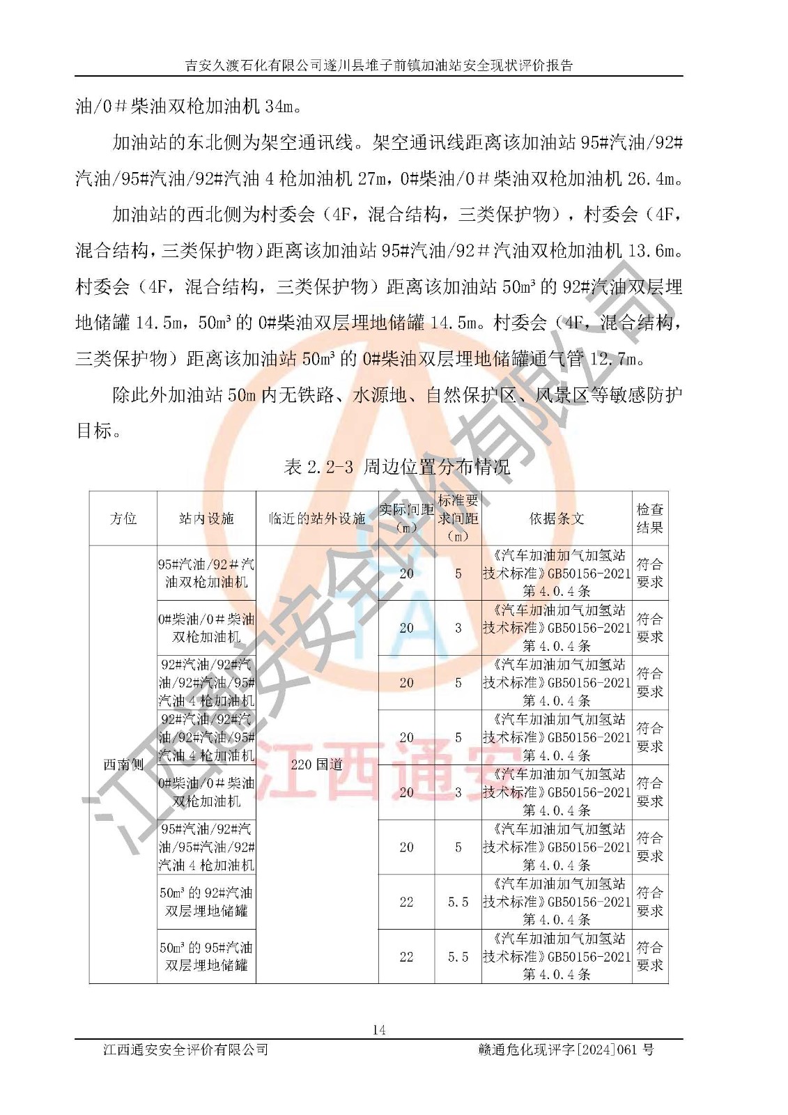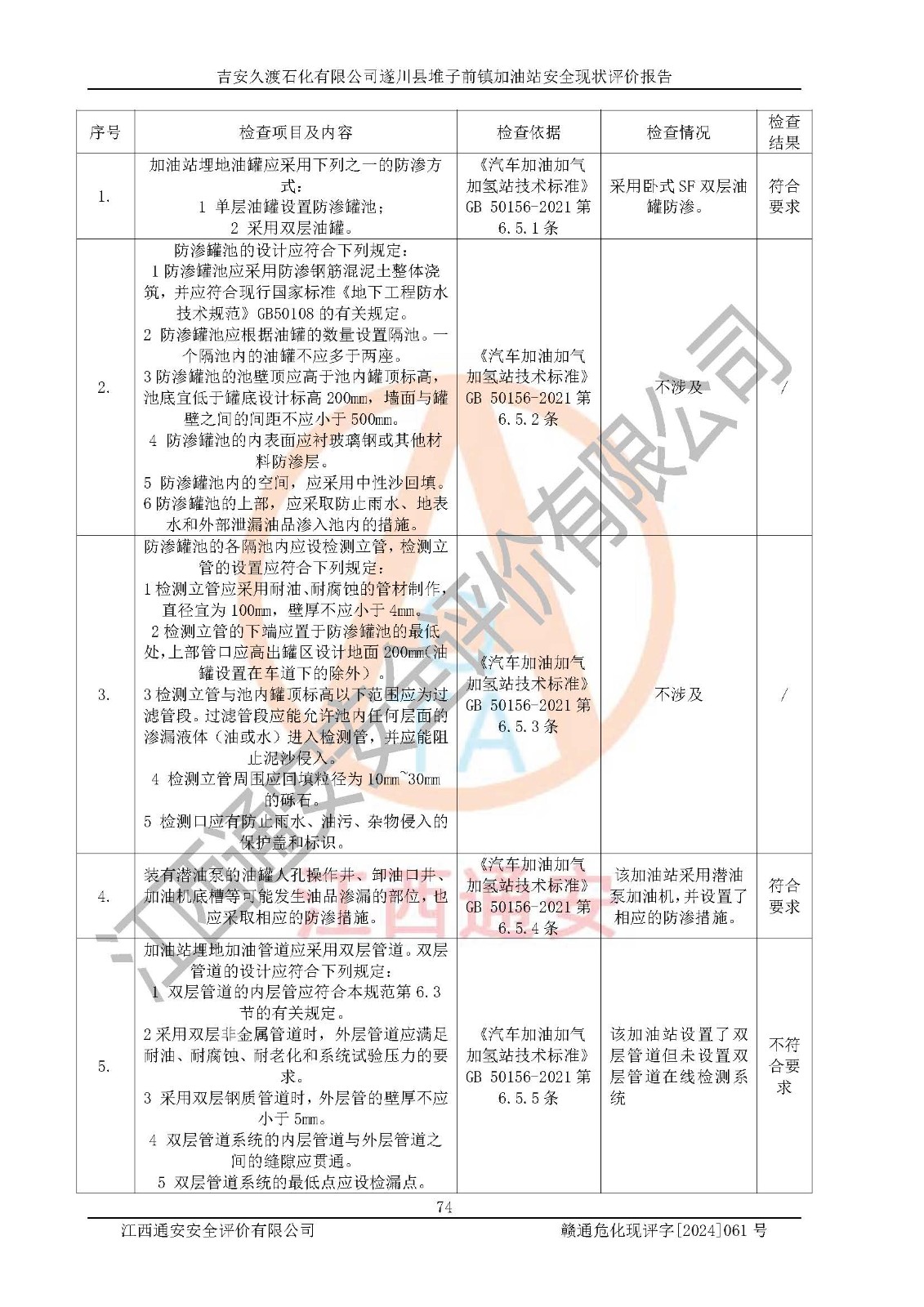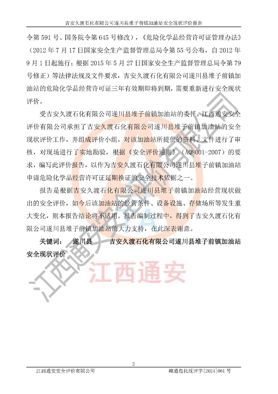項(xiàng)目名稱 | 吉安久渡石化有限公司遂川縣堆子前鎮(zhèn)加油站安全現(xiàn)狀評價報告 | ||||