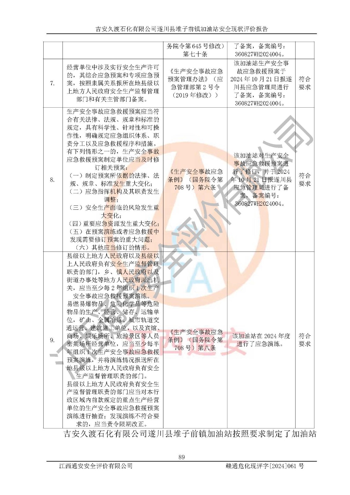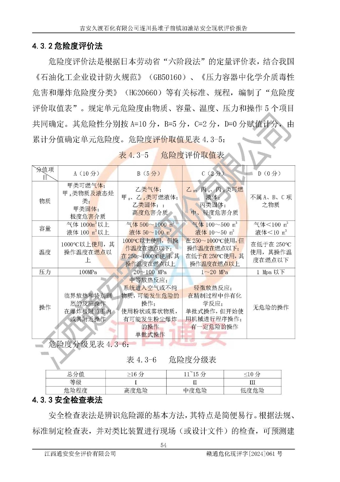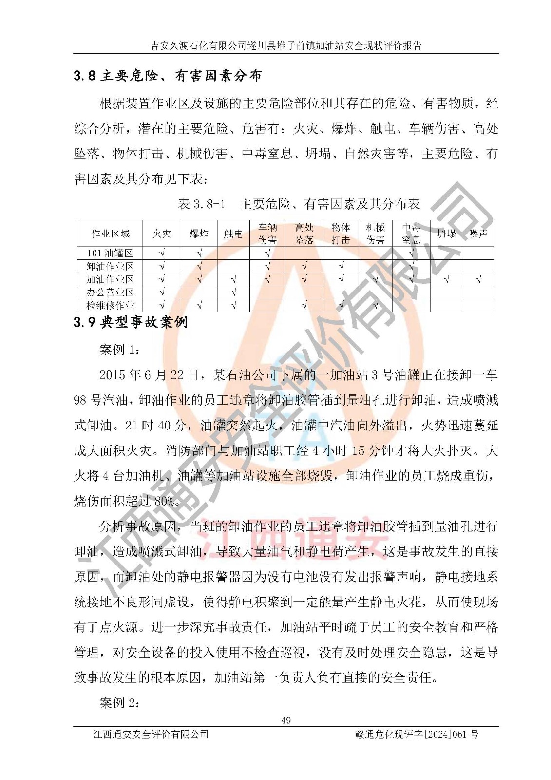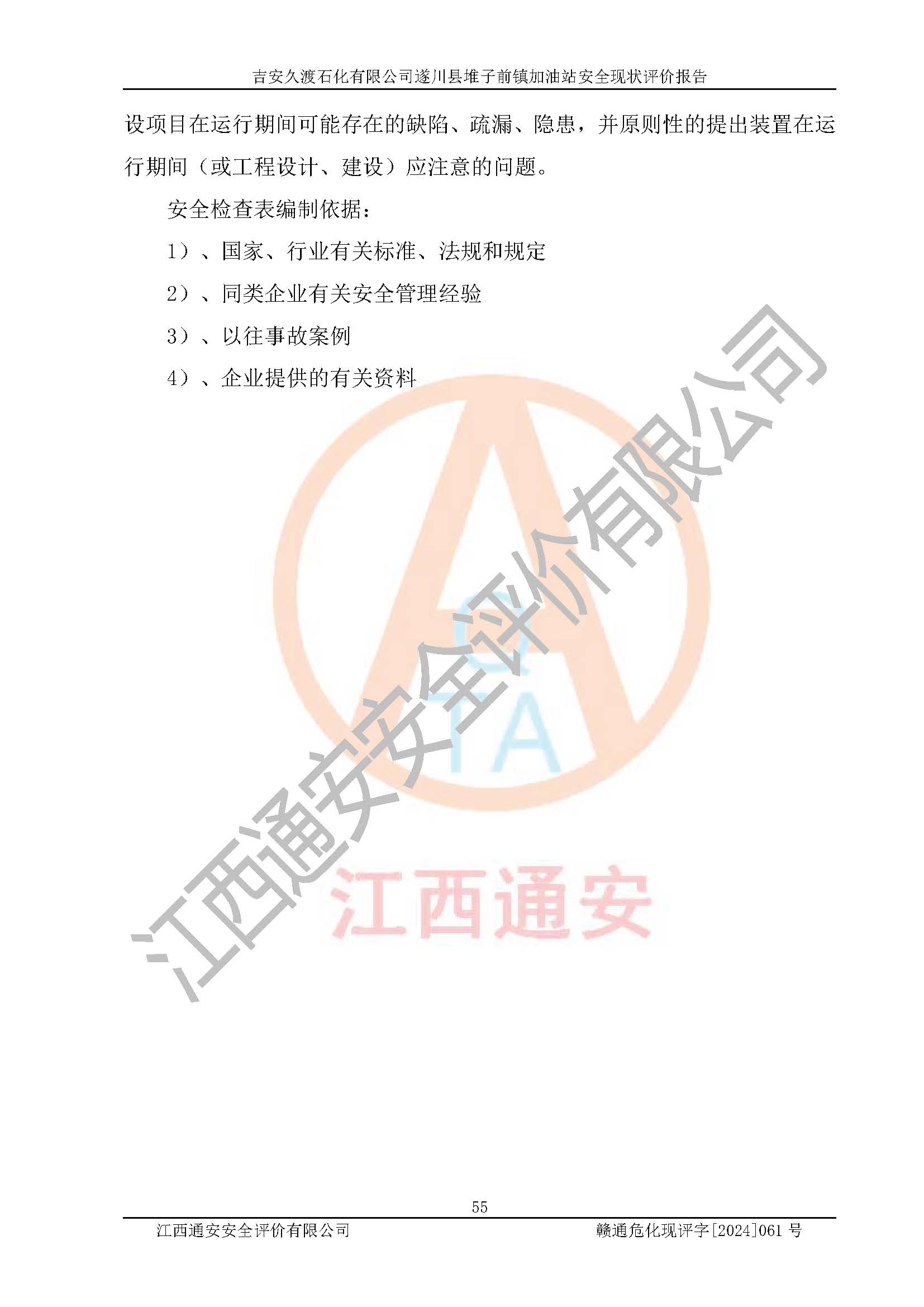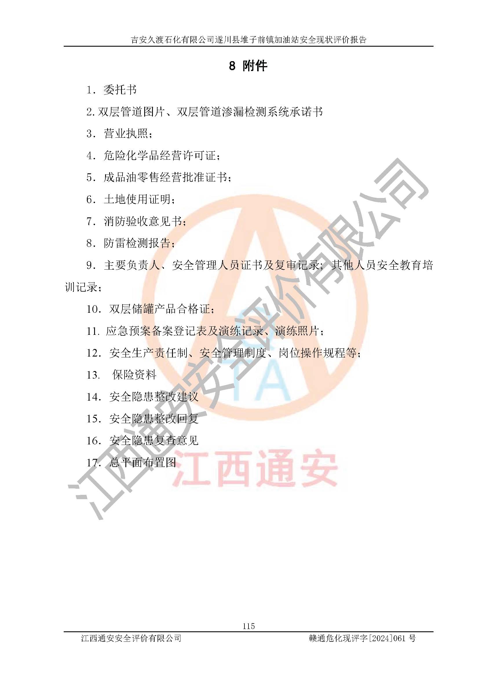 項(xiàng)目名稱 | 吉安久渡石化有限公司遂川縣堆子前鎮(zhèn)加油站安全現(xiàn)狀評價報告 | ||||