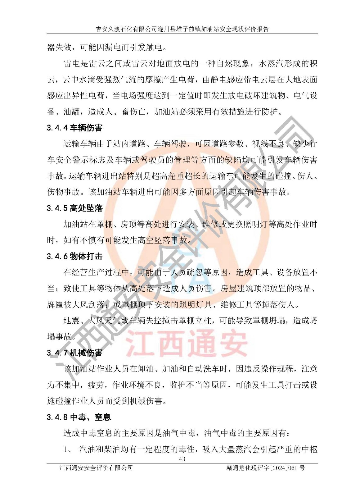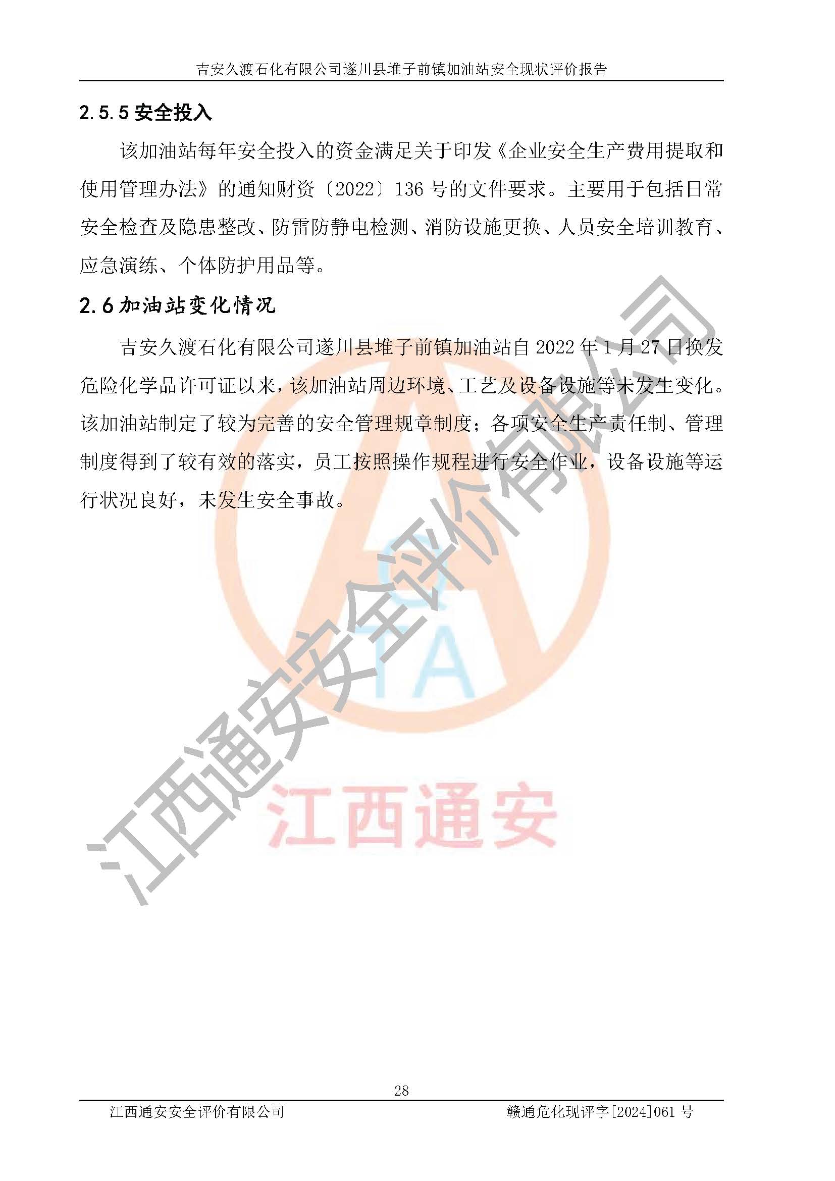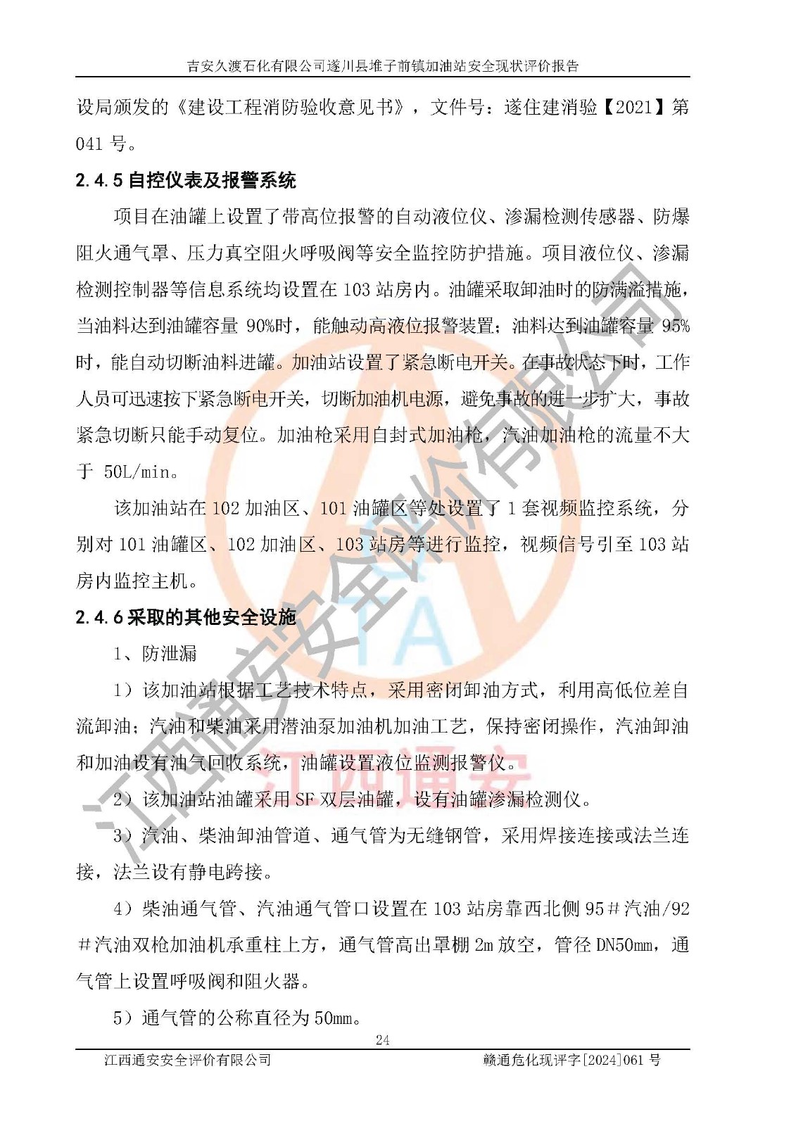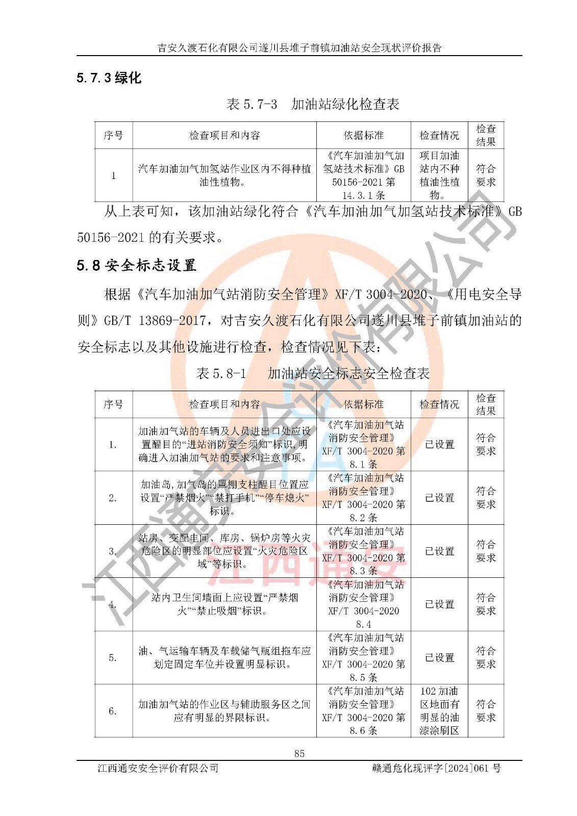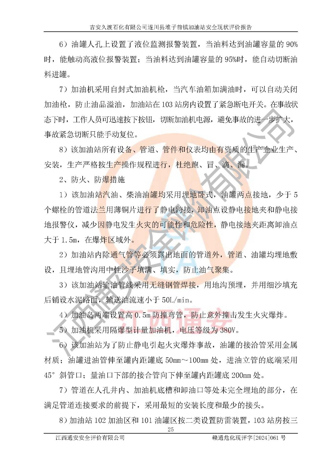 項(xiàng)目名稱 | 吉安久渡石化有限公司遂川縣堆子前鎮(zhèn)加油站安全現(xiàn)狀評價報告 | ||||