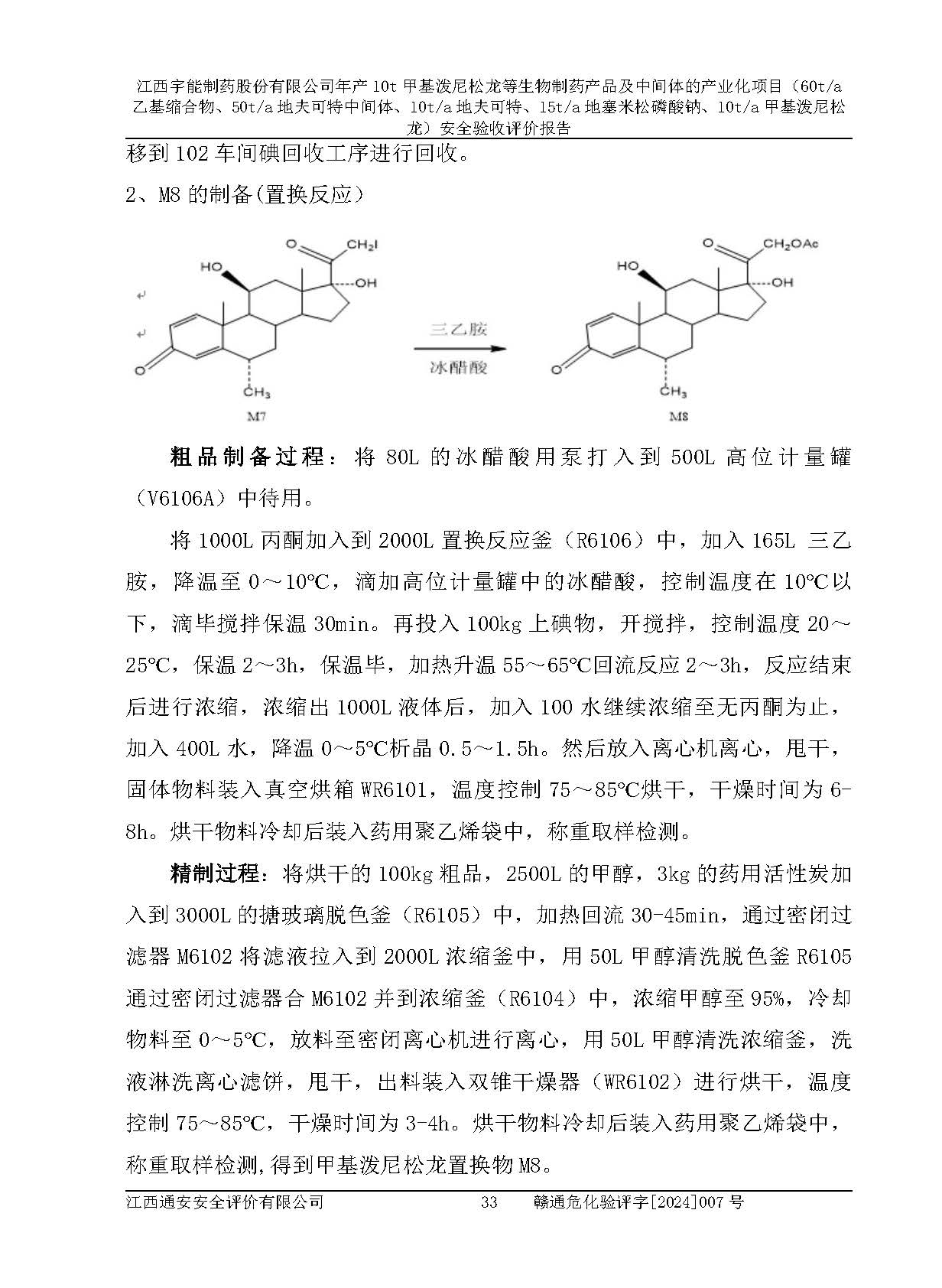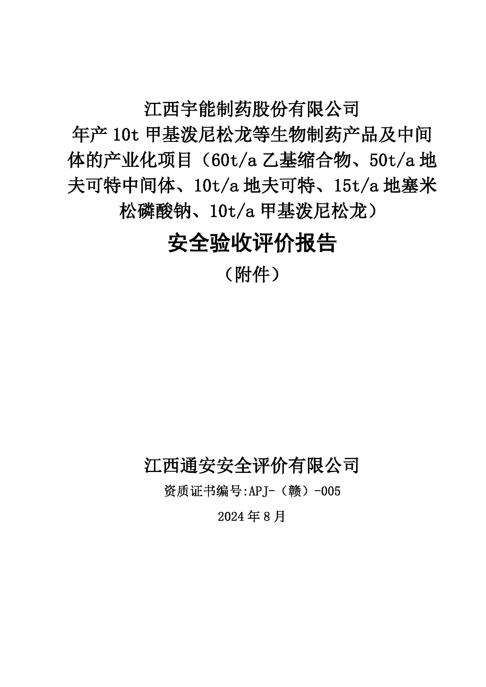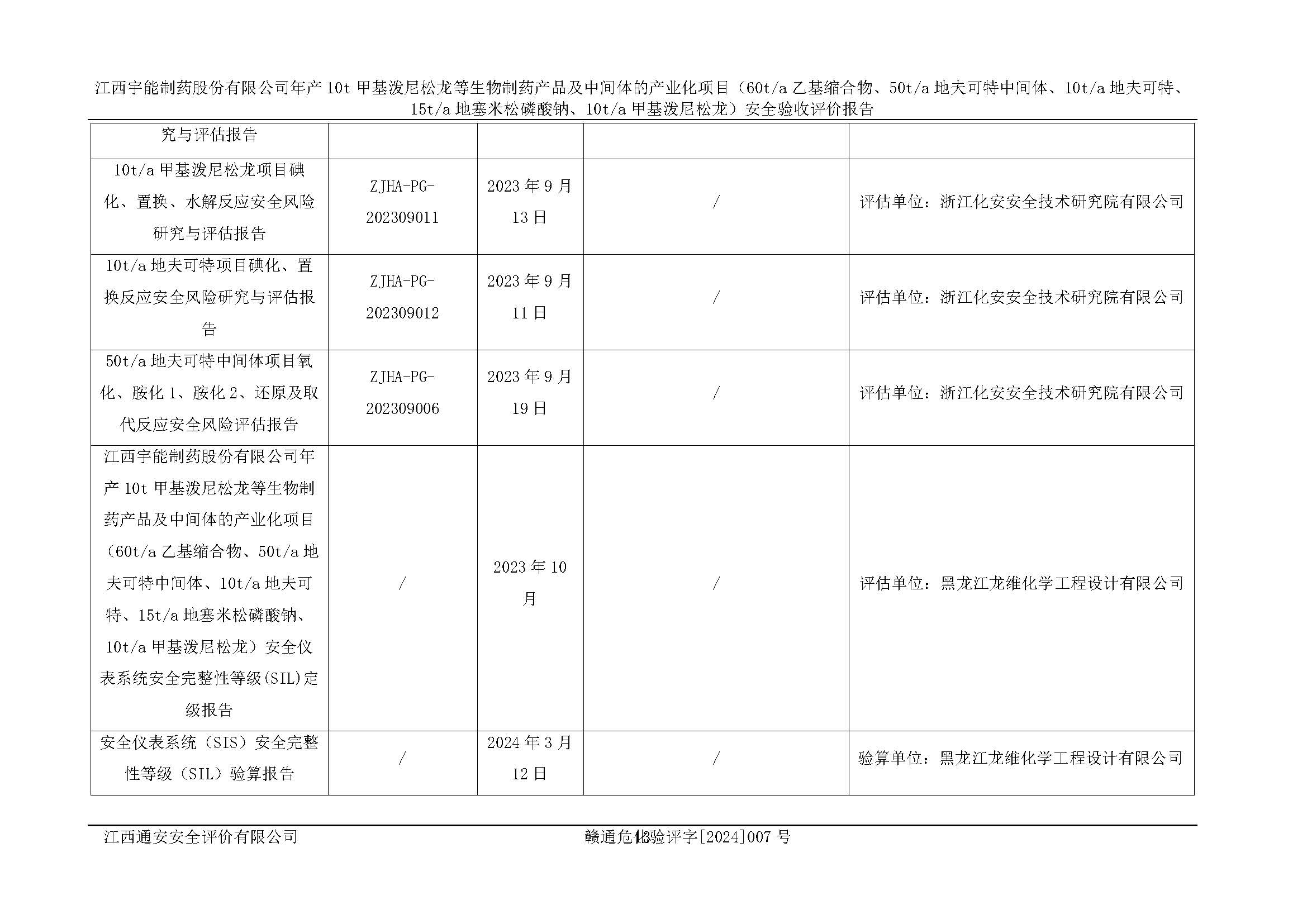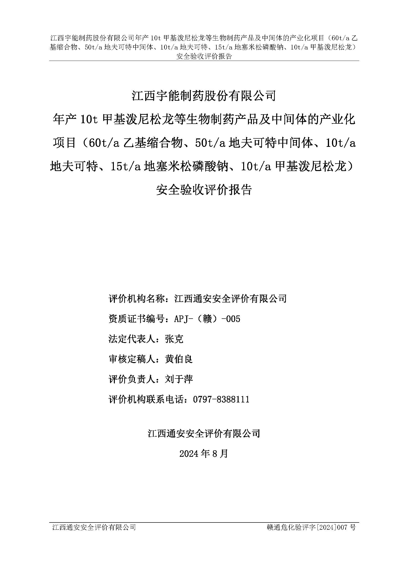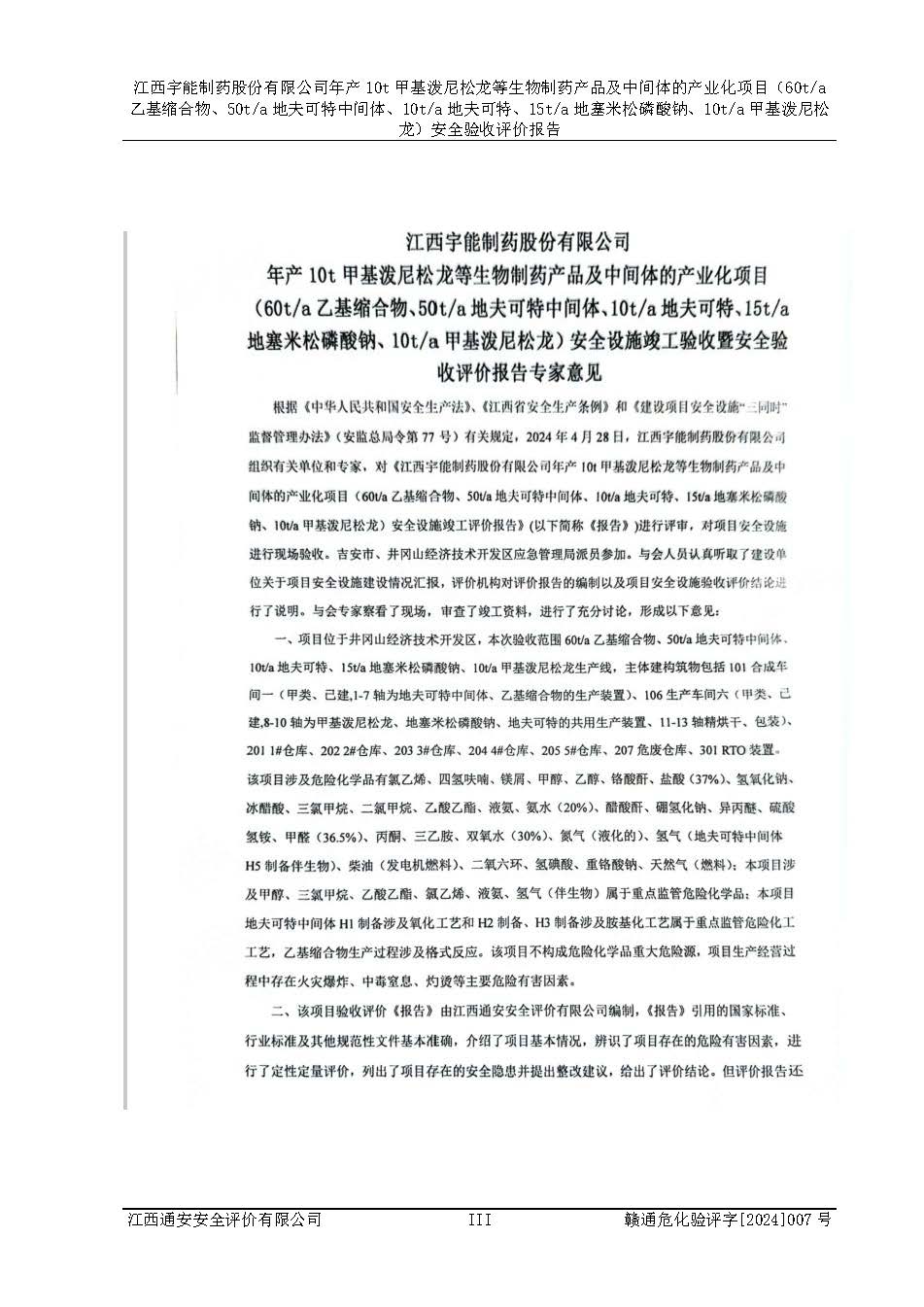 評(píng)價(jià)報(bào)告名稱 | 江西宇能制藥股份有限公司年產(chǎn)10t甲基潑尼松龍等生物制藥產(chǎn)品及中間體的產(chǎn)業(yè)化項(xiàng)目(60t/a乙基縮合物、50t/a地夫可特中間體、10t/a地夫可特、15t/a地塞米松磷酸鈉、10t/a甲基潑尼松龍)安全驗(yàn)收評(píng)價(jià)報(bào)告 | |||