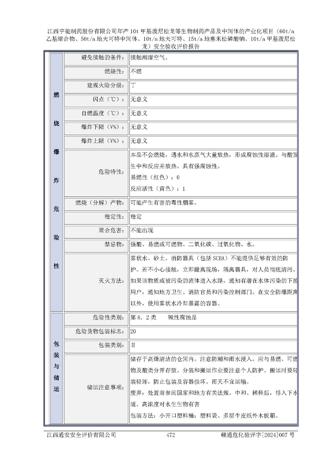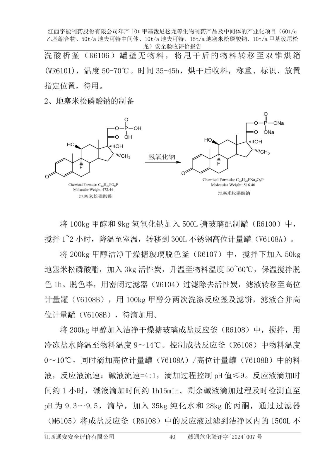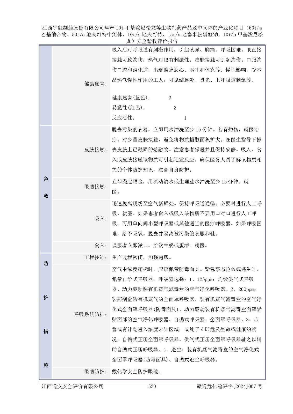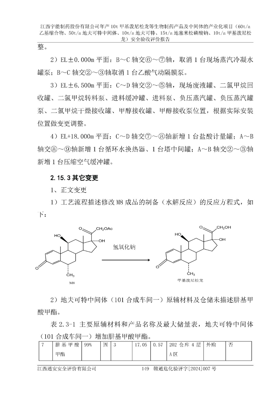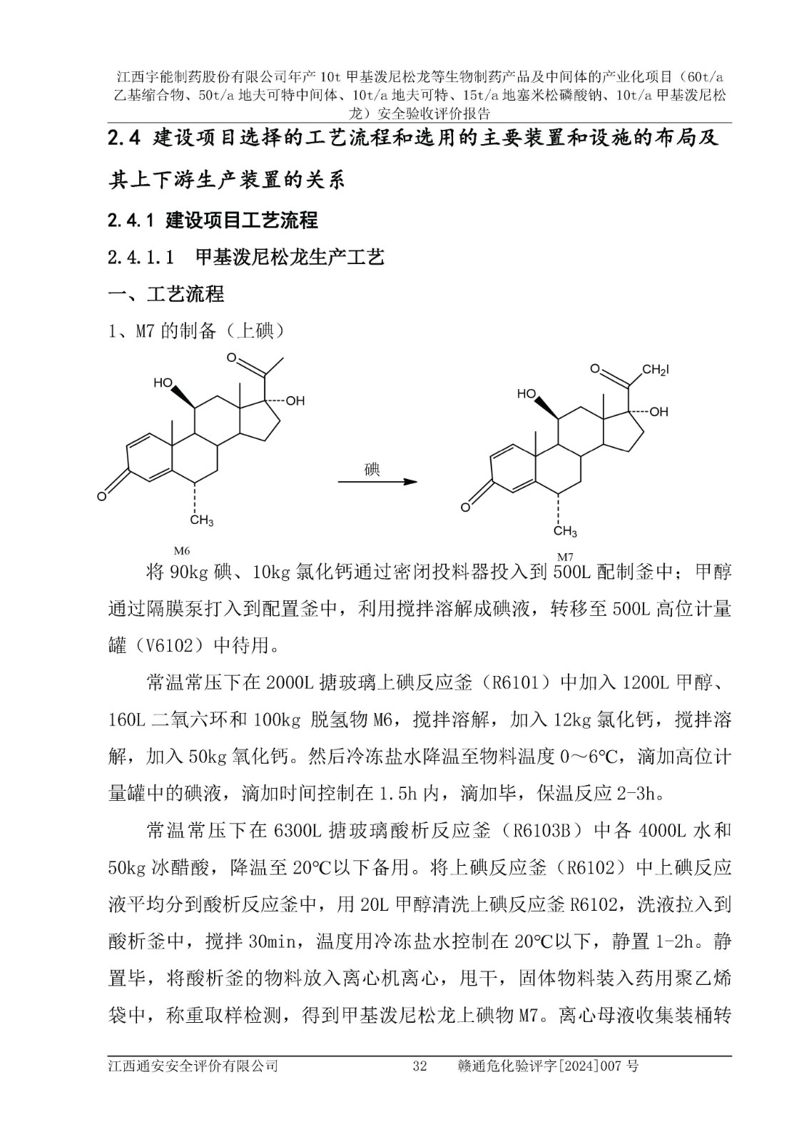 評(píng)價(jià)報(bào)告名稱 | 江西宇能制藥股份有限公司年產(chǎn)10t甲基潑尼松龍等生物制藥產(chǎn)品及中間體的產(chǎn)業(yè)化項(xiàng)目(60t/a乙基縮合物、50t/a地夫可特中間體、10t/a地夫可特、15t/a地塞米松磷酸鈉、10t/a甲基潑尼松龍)安全驗(yàn)收評(píng)價(jià)報(bào)告 | |||