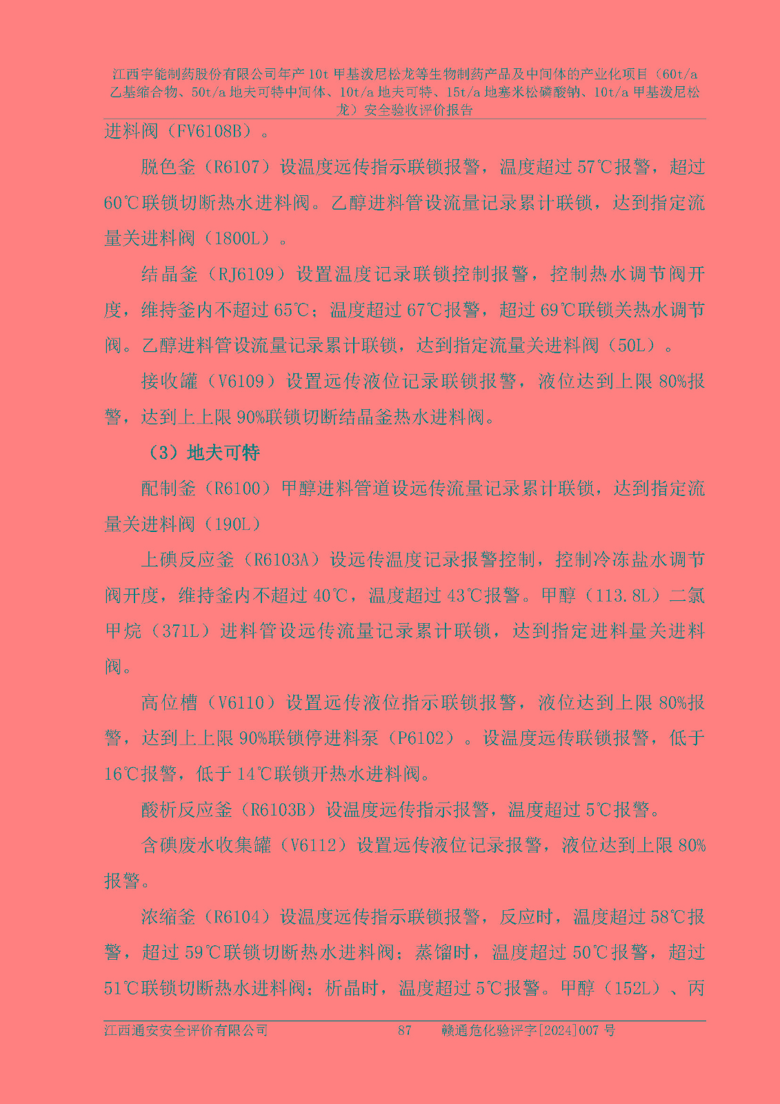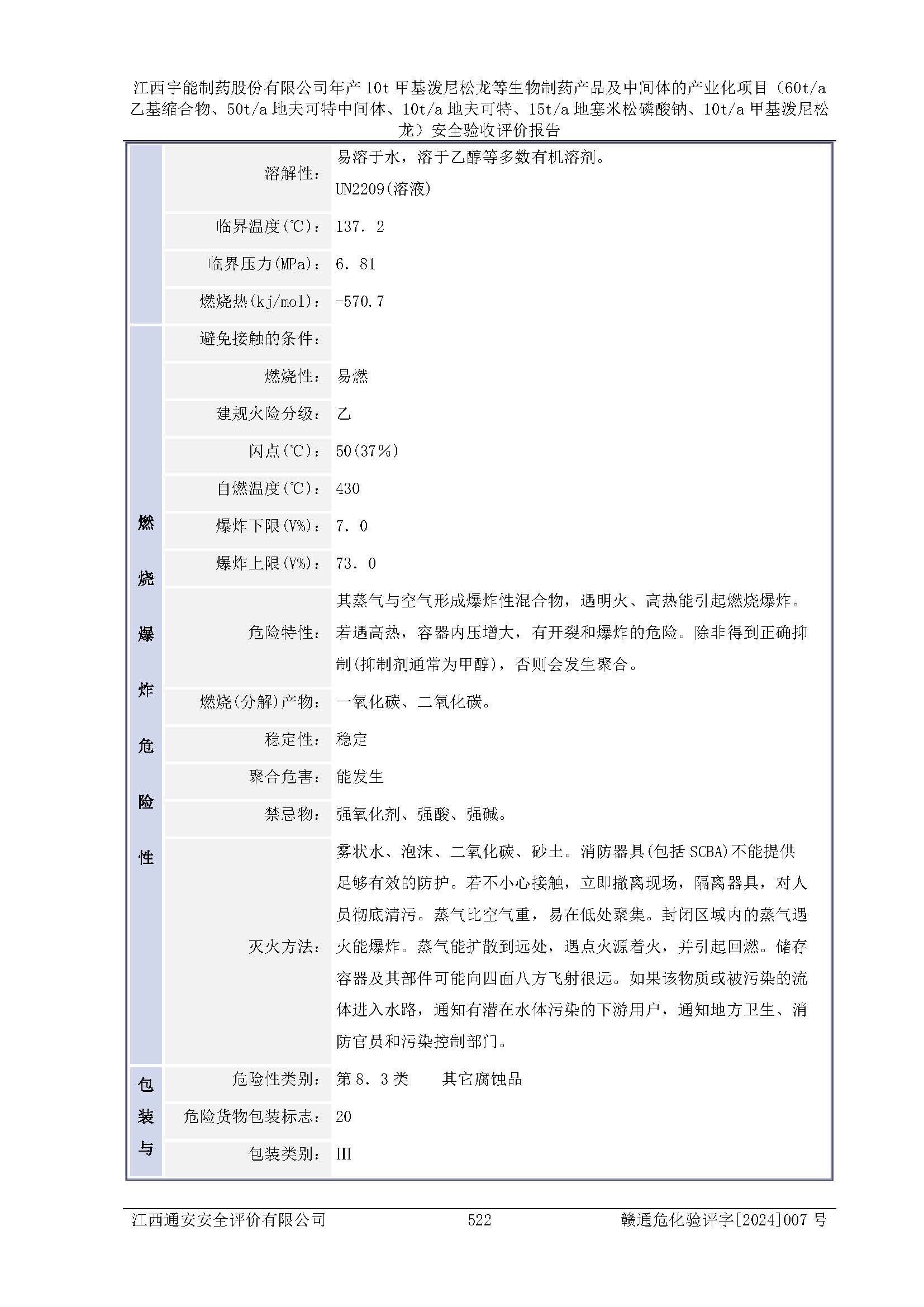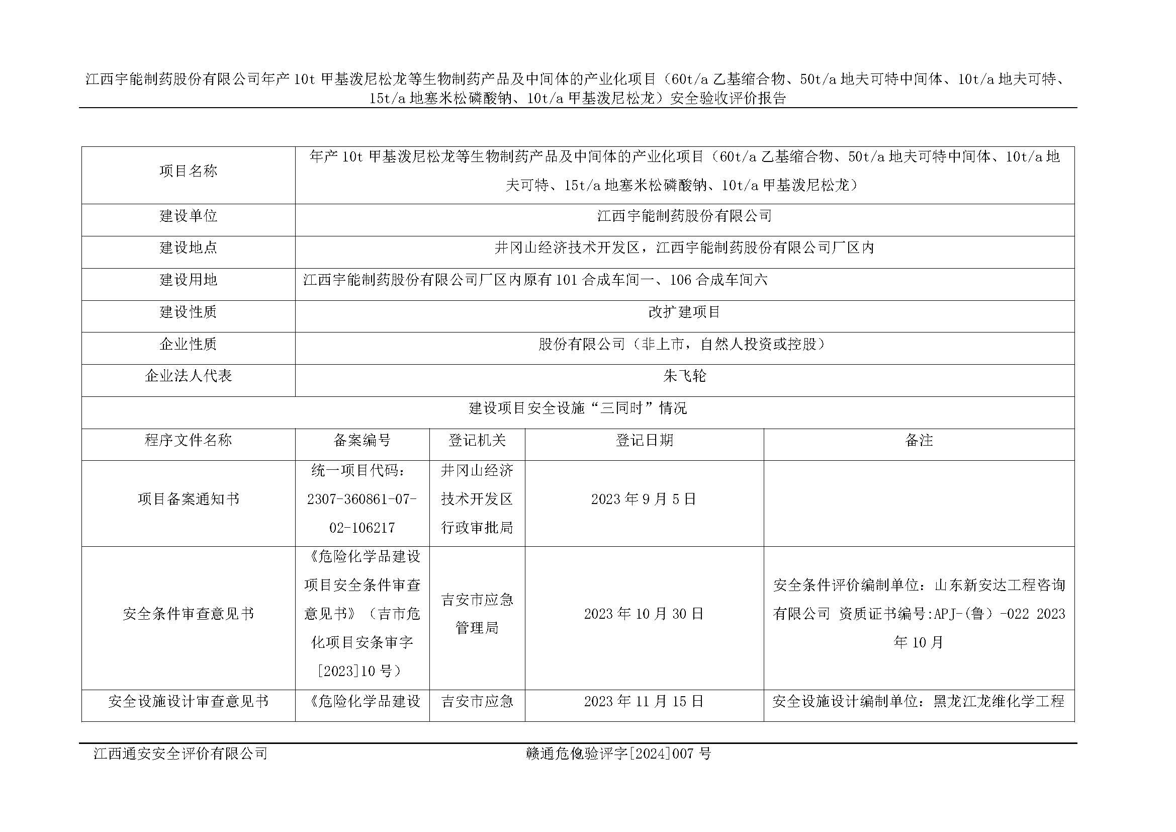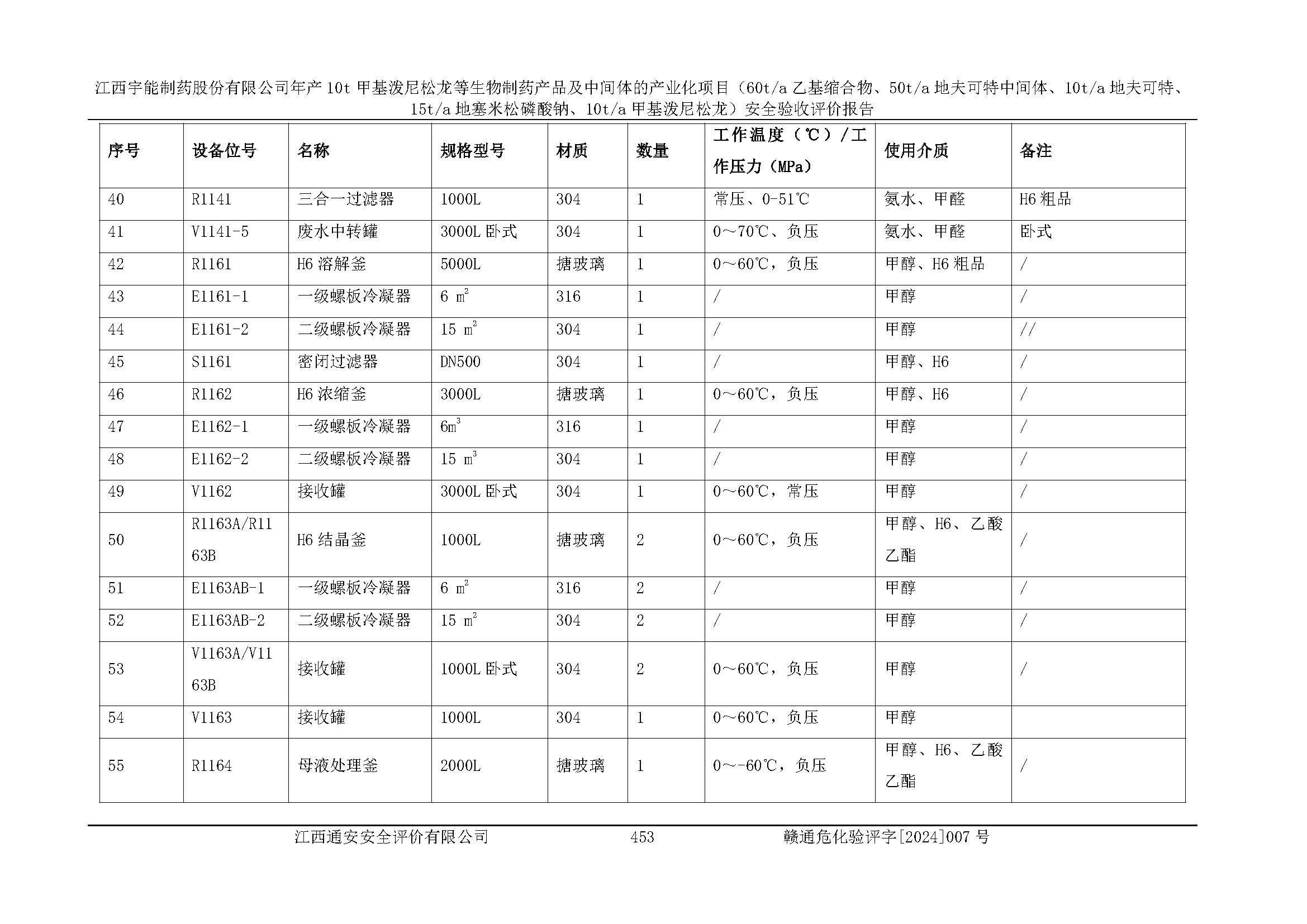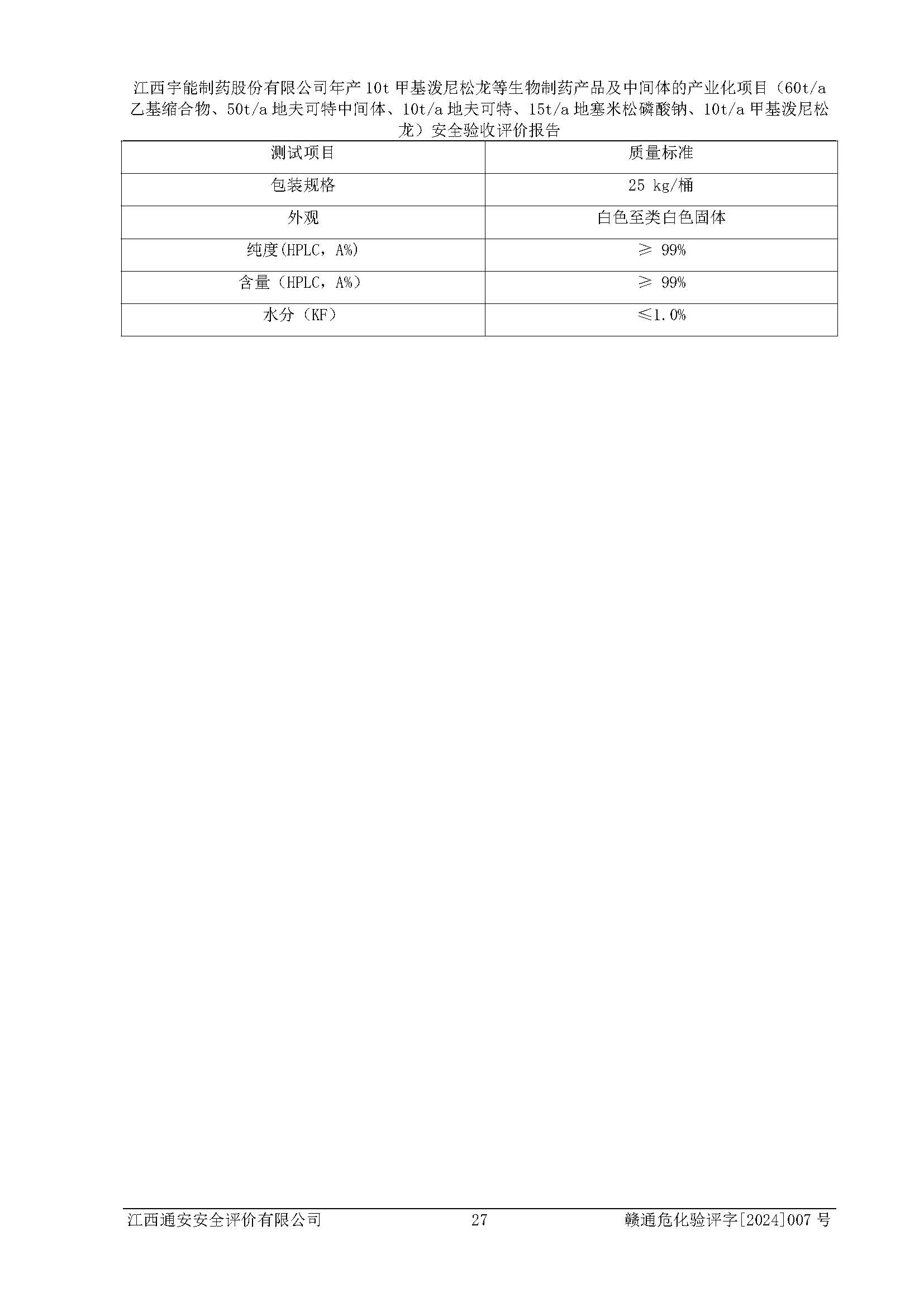 評(píng)價(jià)報(bào)告名稱 | 江西宇能制藥股份有限公司年產(chǎn)10t甲基潑尼松龍等生物制藥產(chǎn)品及中間體的產(chǎn)業(yè)化項(xiàng)目(60t/a乙基縮合物、50t/a地夫可特中間體、10t/a地夫可特、15t/a地塞米松磷酸鈉、10t/a甲基潑尼松龍)安全驗(yàn)收評(píng)價(jià)報(bào)告 | |||