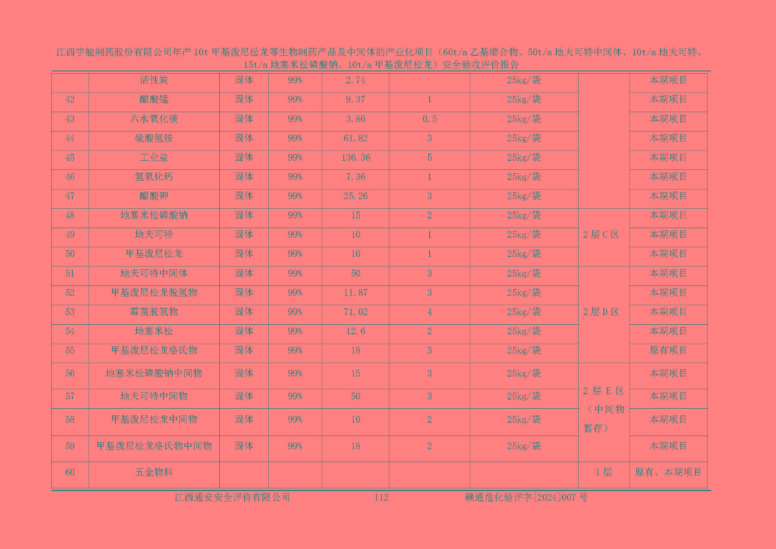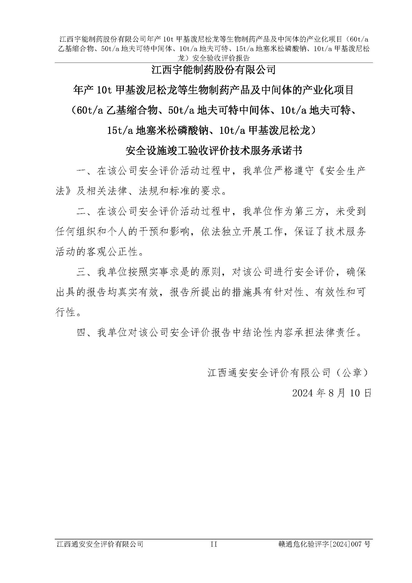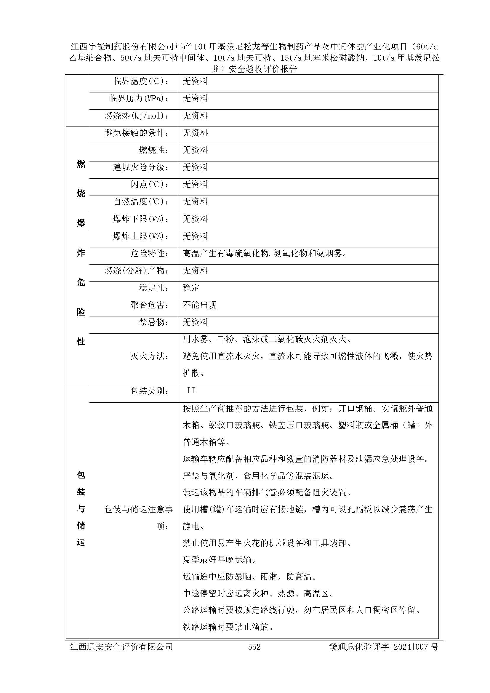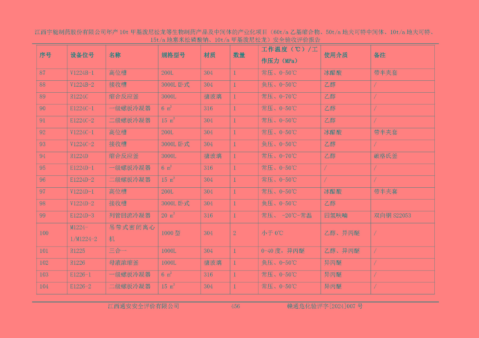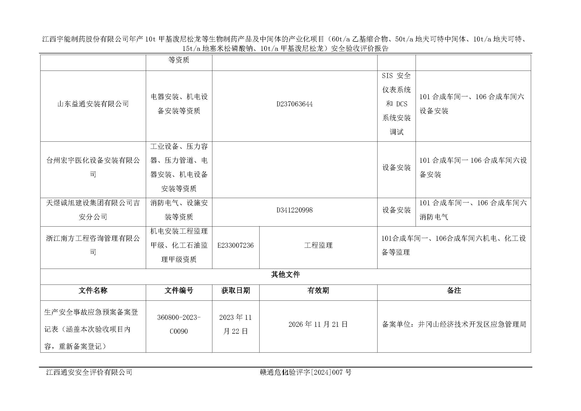 評(píng)價(jià)報(bào)告名稱 | 江西宇能制藥股份有限公司年產(chǎn)10t甲基潑尼松龍等生物制藥產(chǎn)品及中間體的產(chǎn)業(yè)化項(xiàng)目(60t/a乙基縮合物、50t/a地夫可特中間體、10t/a地夫可特、15t/a地塞米松磷酸鈉、10t/a甲基潑尼松龍)安全驗(yàn)收評(píng)價(jià)報(bào)告 | |||