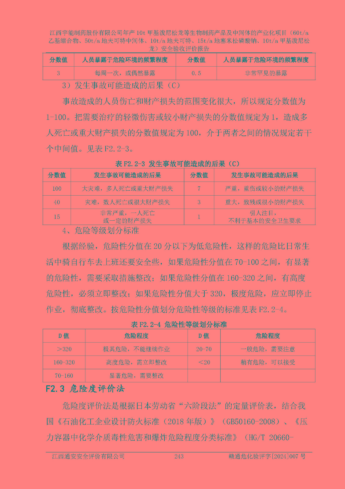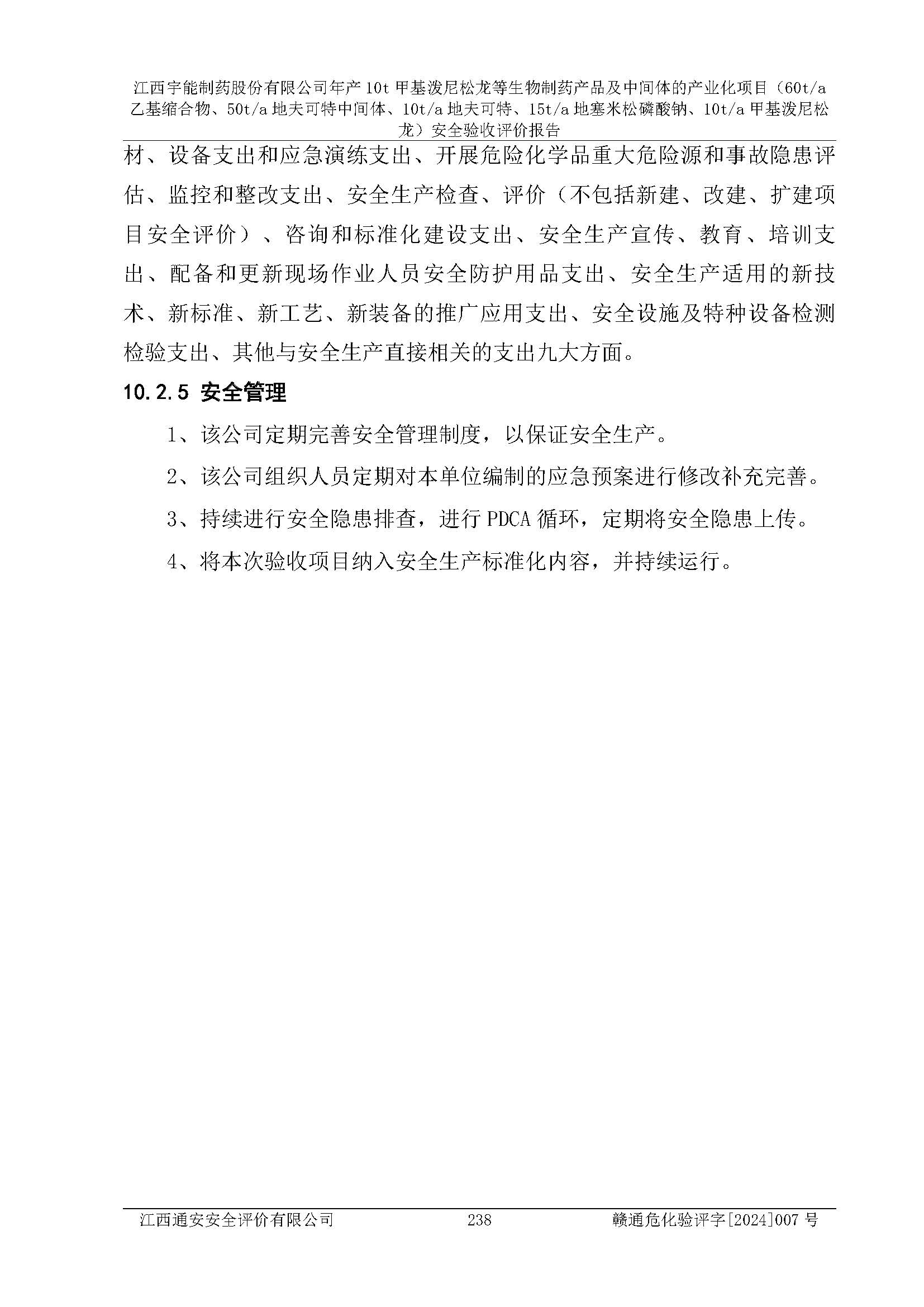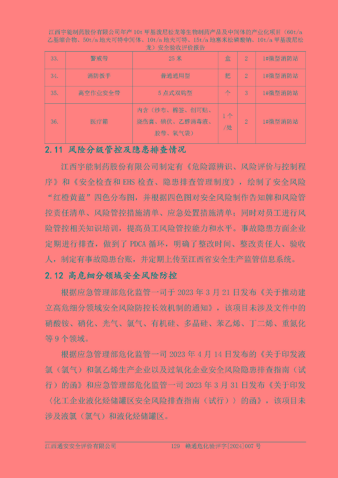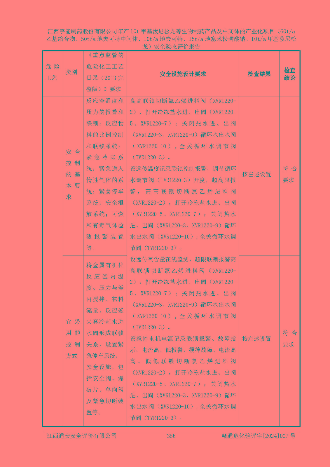 評(píng)價(jià)結(jié)論 | 評(píng)價(jià)結(jié)論:本評(píng)價(jià)認(rèn)為,江西宇能制藥股份有限公司年產(chǎn)10t甲基潑尼松龍等生物制藥產(chǎn)品及中間體的產(chǎn)業(yè)化項(xiàng)目(60t/a乙基縮合物、50t/a地夫可特中間體、10t/a地夫可特、15t/a地塞米松磷酸鈉、10t/a甲基潑尼松龍)工藝設(shè)備和安全設(shè)施運(yùn)行正常,該公司安全管理機(jī)制運(yùn)行正常,安全設(shè)施、措施達(dá)到設(shè)計(jì)要求和預(yù)期結(jié)果,可以滿足建設(shè)項(xiàng)目安全生產(chǎn)的要求,安全生產(chǎn)管理**,符合**有關(guān)安全生產(chǎn)法律、法規(guī)和有關(guān)標(biāo)準(zhǔn)、規(guī)范的要求,工程潛在的危險(xiǎn)、有害因素可得到**控制,風(fēng)險(xiǎn)在**控制和可接受范圍內(nèi)。具備安全設(shè)施竣工驗(yàn)收條件。 | |||