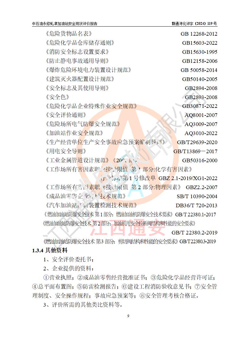 評價報告名稱 | 中國石油天然氣股份有限公司江西九江永修縣虬津加油站安全現(xiàn)狀評價報告 | |||