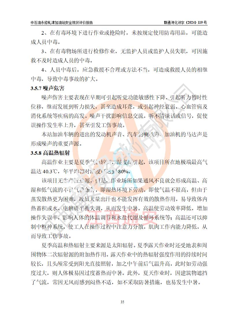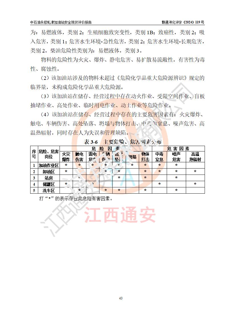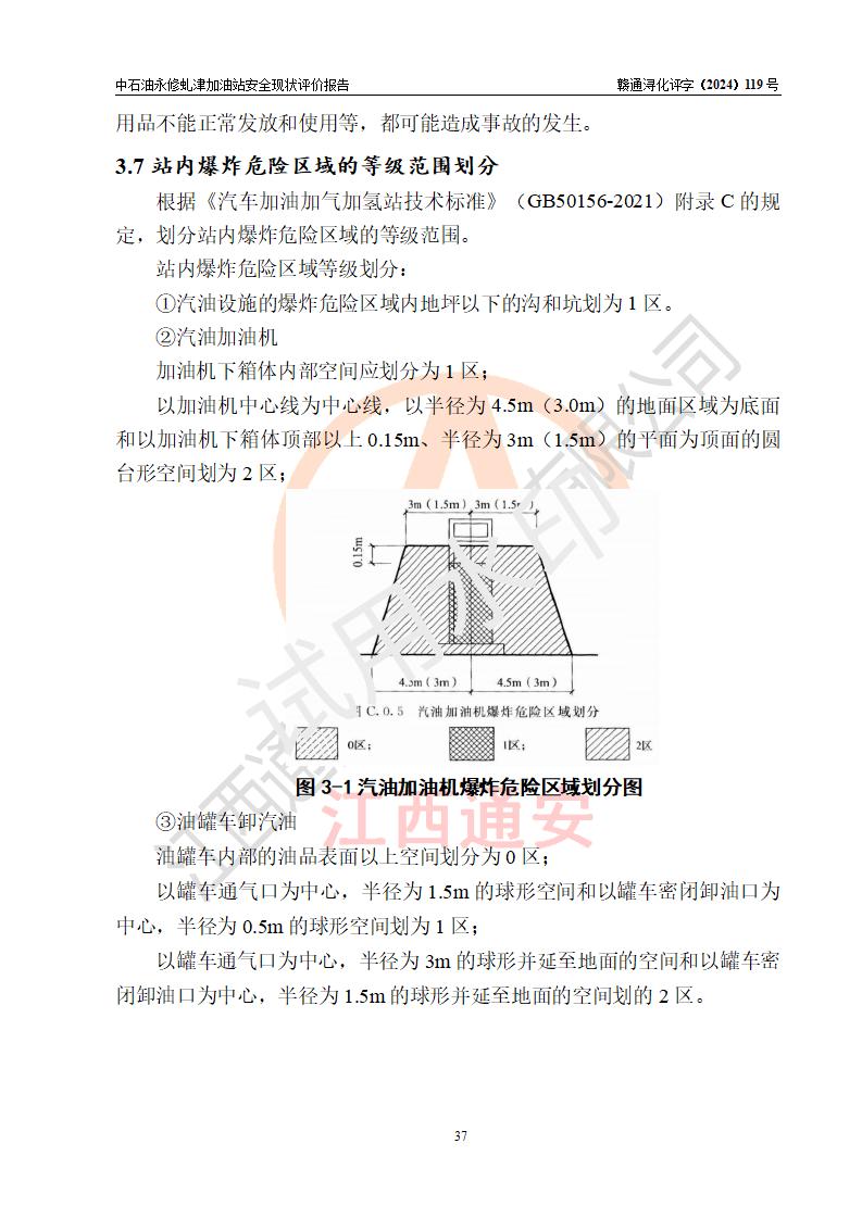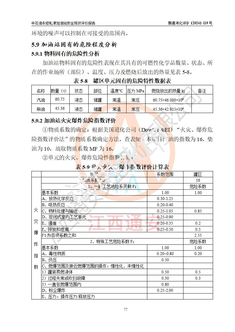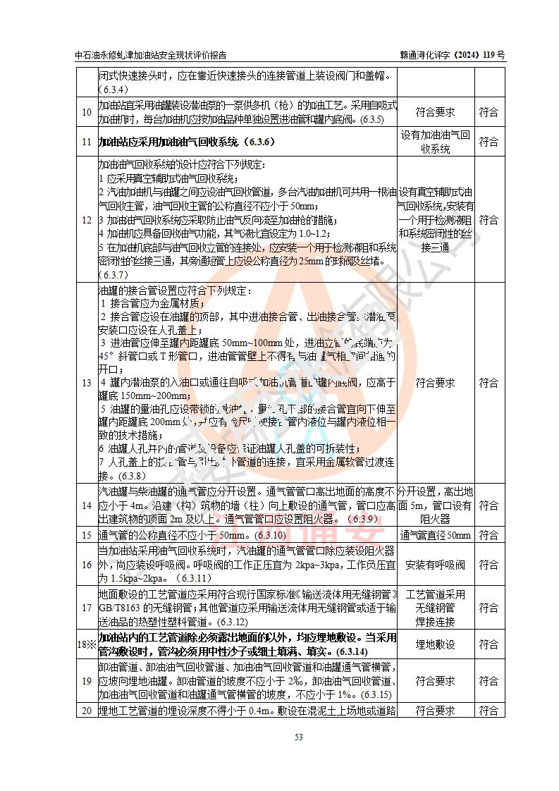 評價結論 | 中國石油天然氣股份有限公司江西九江永修縣虬津加油站涉及的安全條件、安全經(jīng)營條件、安全生產(chǎn)管理符合《危險化學品經(jīng)營許可證管理辦法》、《汽車加油加氣加氫站技術標準》等**有關法規(guī)、標準、規(guī)范要求,能滿足危險化學品經(jīng)營安全條件。 | |||