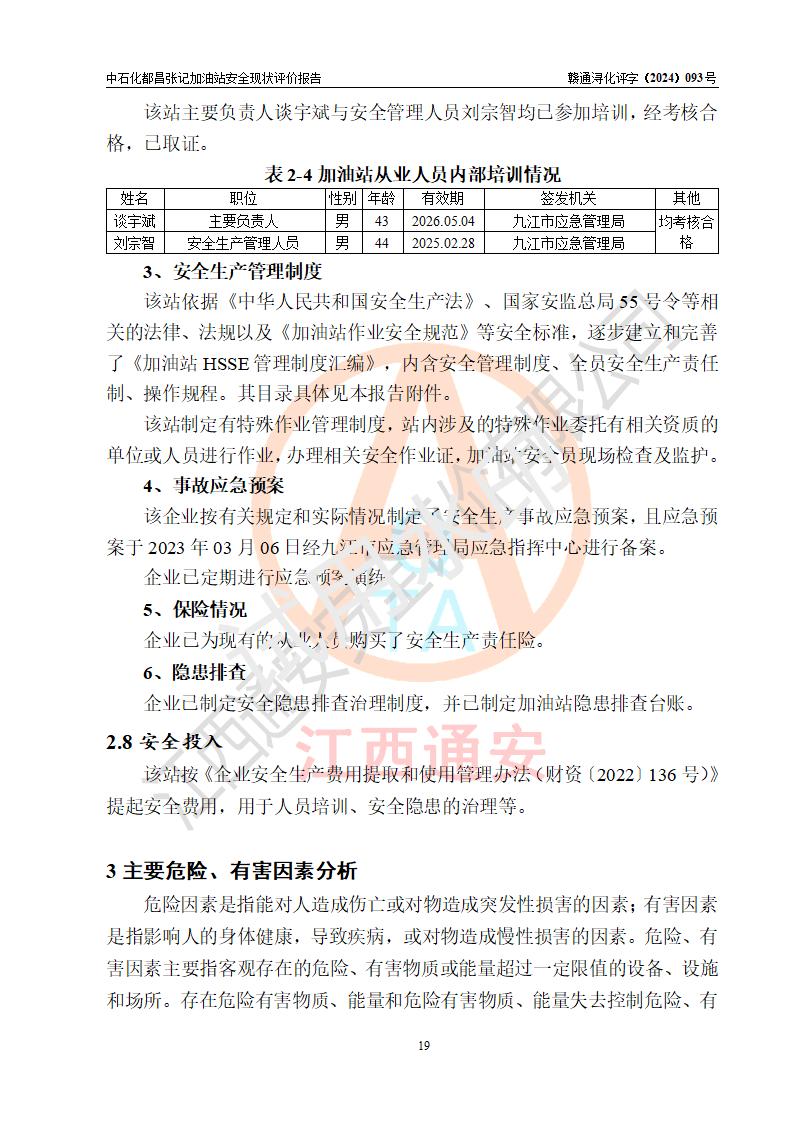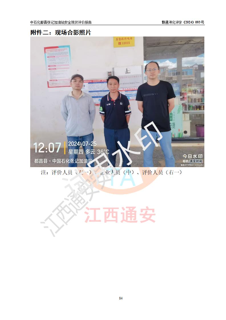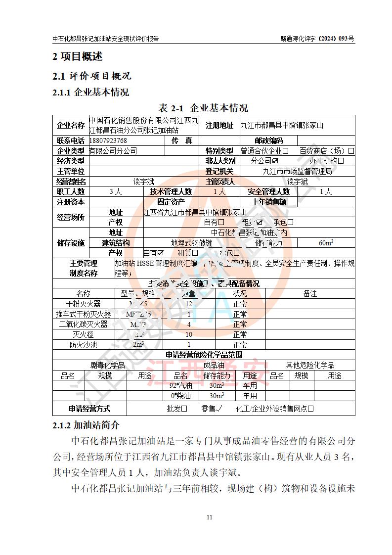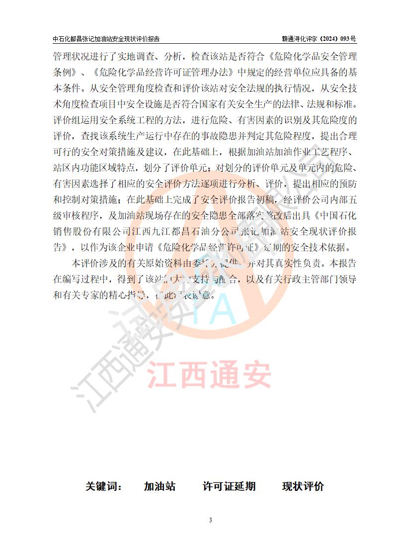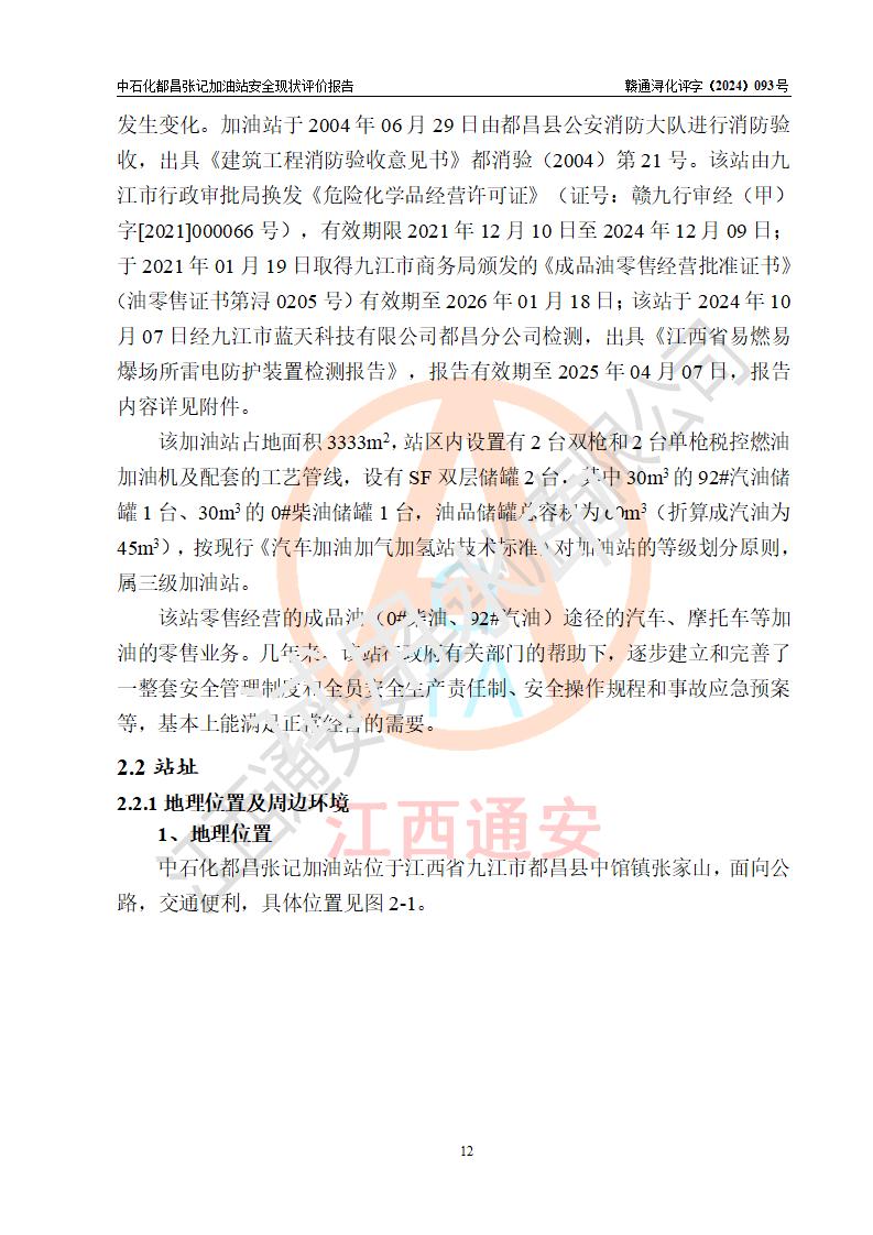 評價報告名稱 | 中國石化銷售股份有限公司江西九江都昌石油分公司張記加油站安全現狀評價報告 | |||