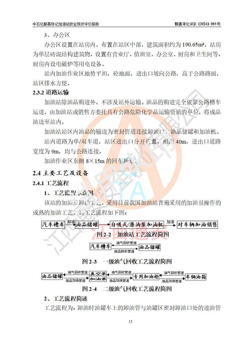 項目簡介 | 中國石化銷售股份有限公司江西九江都昌石油分公司張記加油站是一家專門從事成品油零售經營的有限公司分公司(外商投資企業(yè)分公司),經營場所位于江西省九江市都昌縣中館鎮(zhèn)張家山?,F有從業(yè)人員3名,其中安全管理人員1人,加油站負責人談宇斌。 該加油站占地面積3333m2,站區(qū)內設置有2臺雙槍和2臺單槍稅控燃油加油機及配套的工藝管線,設有SF雙層儲罐2臺,其中30m3的92#汽油儲罐1臺、30m3的0#柴油儲罐1臺,油品儲罐總容積為60m3(折算成汽油為45m3),按現行《汽車加油加氣加氫站技術標準》對加油站的等級劃分原則,屬三級加油站。 該站由九江市行政審批局換發(fā)《危險化學品經營許可證》(證號:贛九行審經(甲)字[2021]000066號),**期限2021年12月10日至2024年12月09日。 | |||