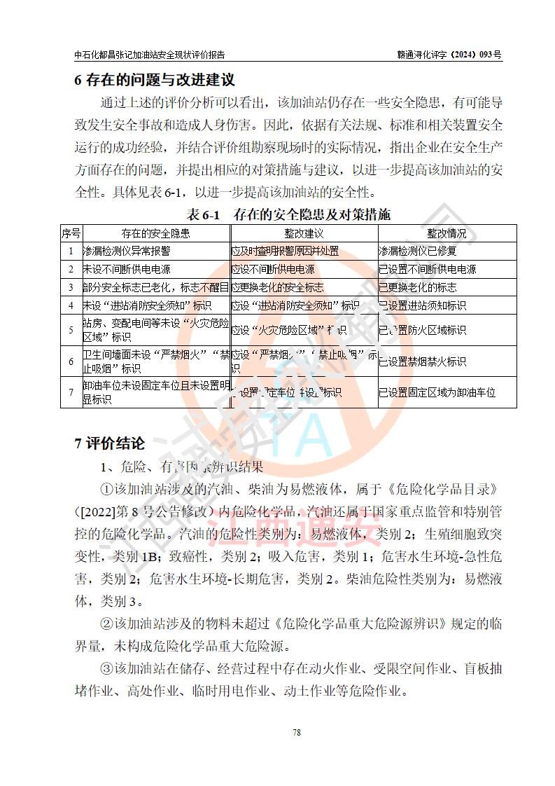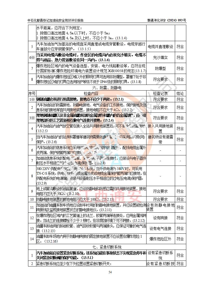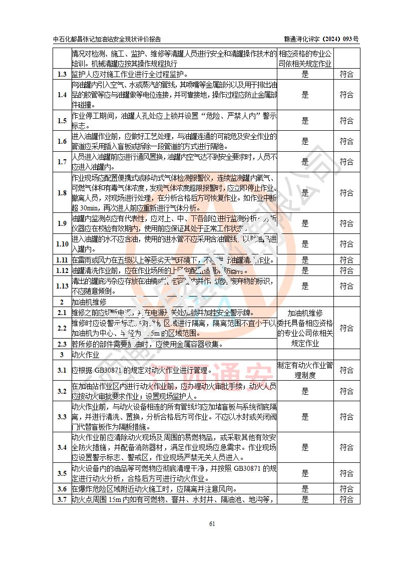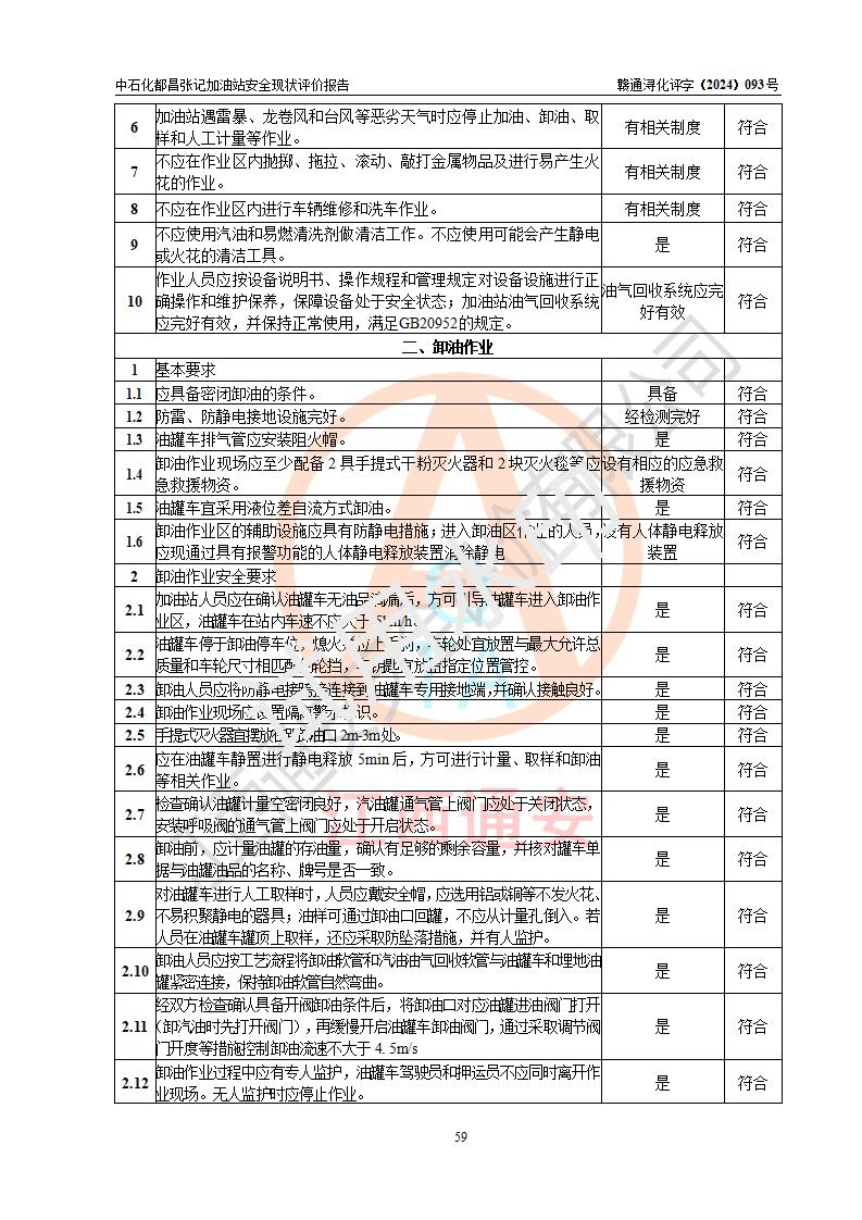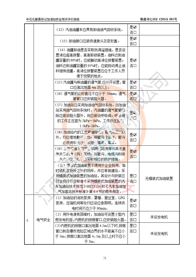 評價結論 | 中國石化銷售股份有限公司江西九江都昌石油分公司張記加油站涉及的安全條件、安全經營條件、安全生產管理符合《危險化學品經營許可證管理辦法》、《汽車加油加氣加氫站技術標準》等**有關法規(guī)、標準、規(guī)范要求,能滿足危險化學品經營安全條件。 | |||