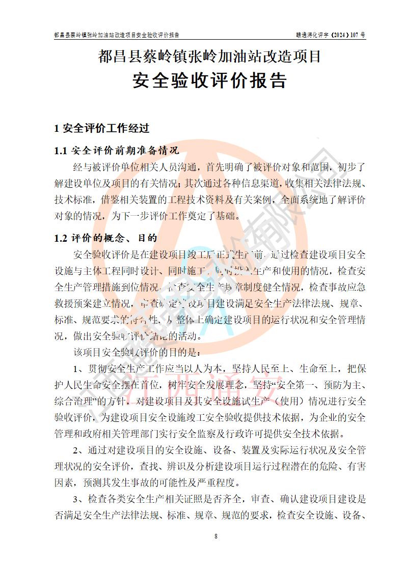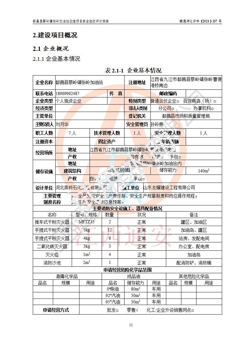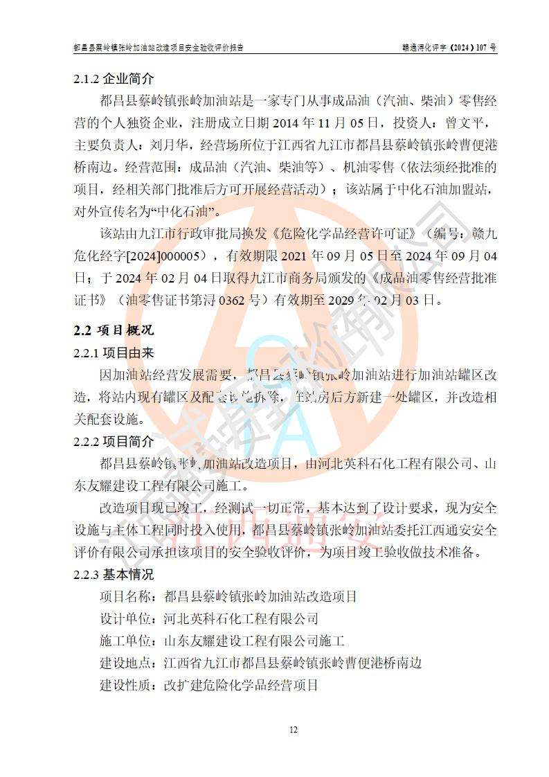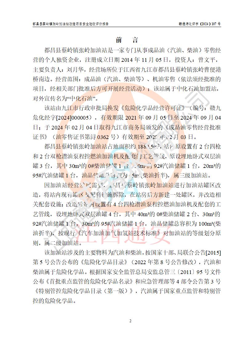 評價報告名稱 | 都昌縣蔡嶺鎮(zhèn)張嶺加油站改造項目安全驗收評價報告 | |||