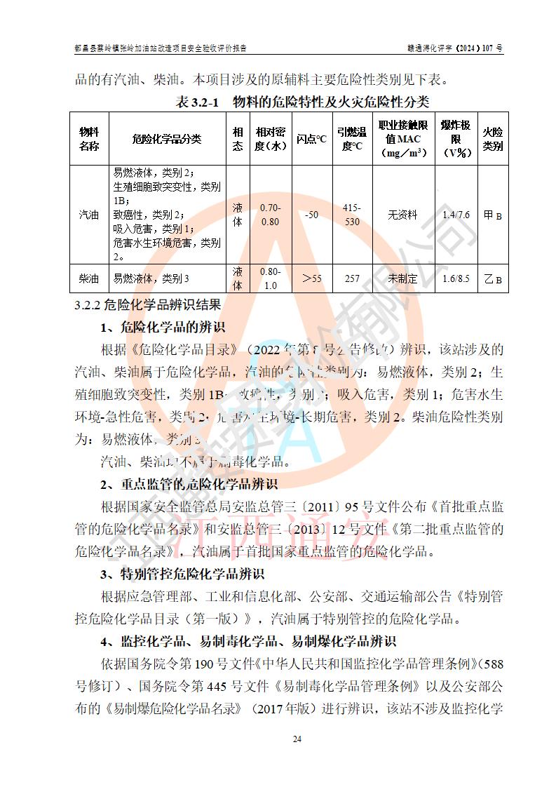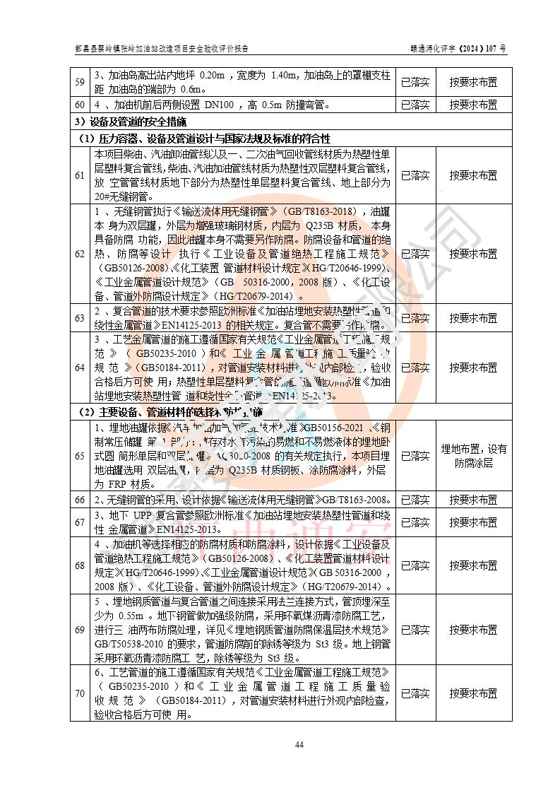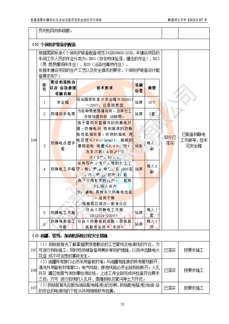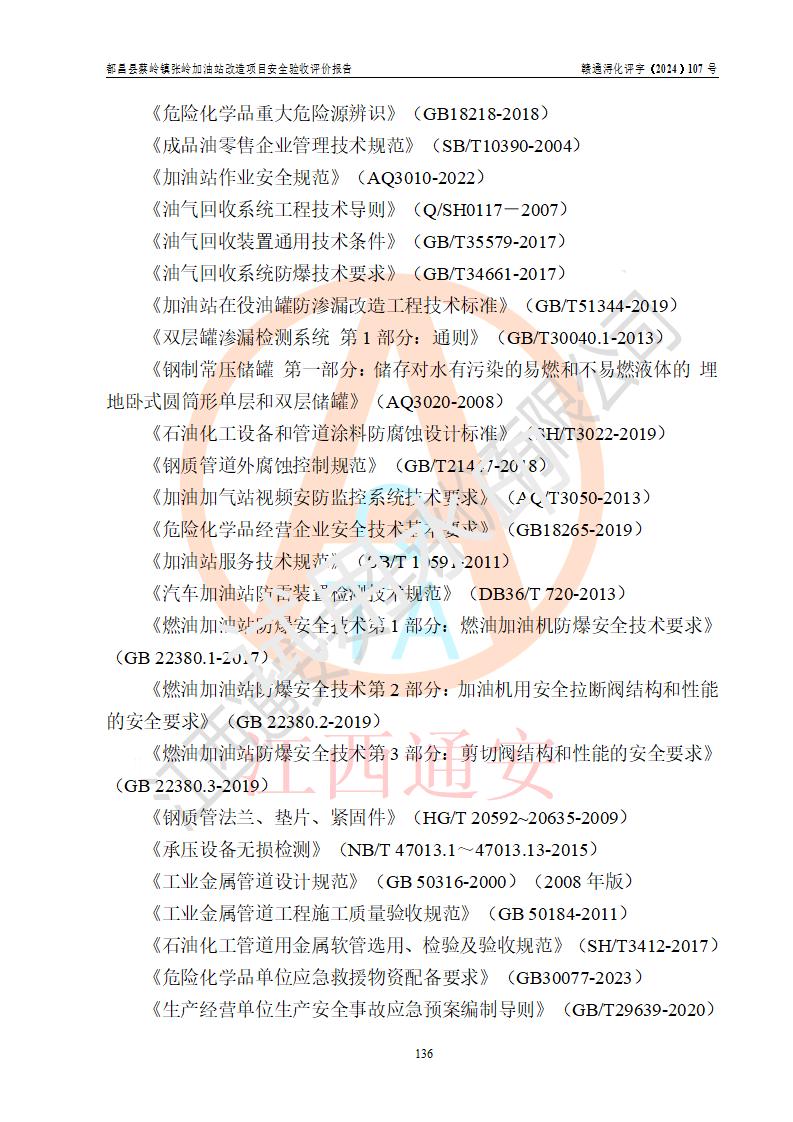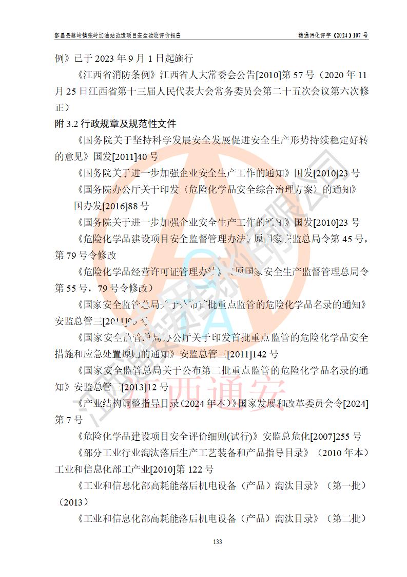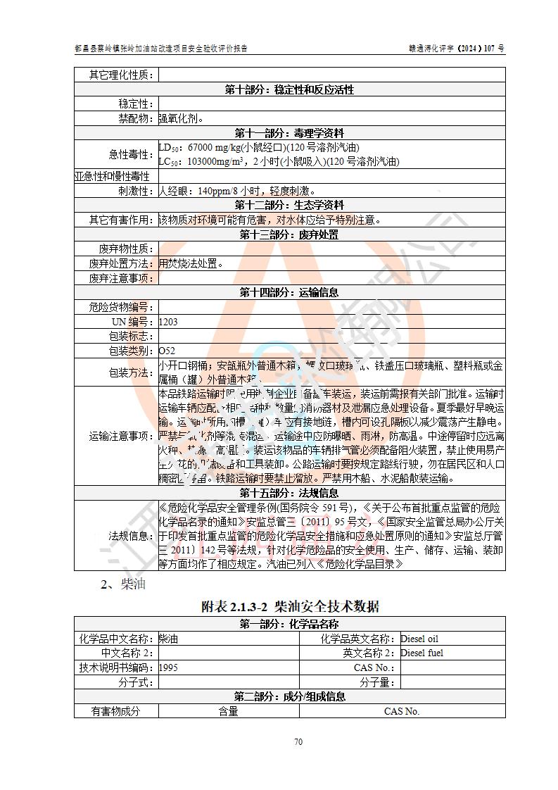 評價結論 | 都昌縣蔡嶺鎮(zhèn)張嶺加油站改造項目涉及的安全條件、安全生產(chǎn)條件、安全生產(chǎn)管理符合《危險化學品經(jīng)營許可證管理辦法》、《汽車加油加氣加氫站技術標準》等**有關法規(guī)、標準、規(guī)范要求,能滿足成品油零售經(jīng)營單位的安全條件,具備項目竣工驗收的條件。 | |||