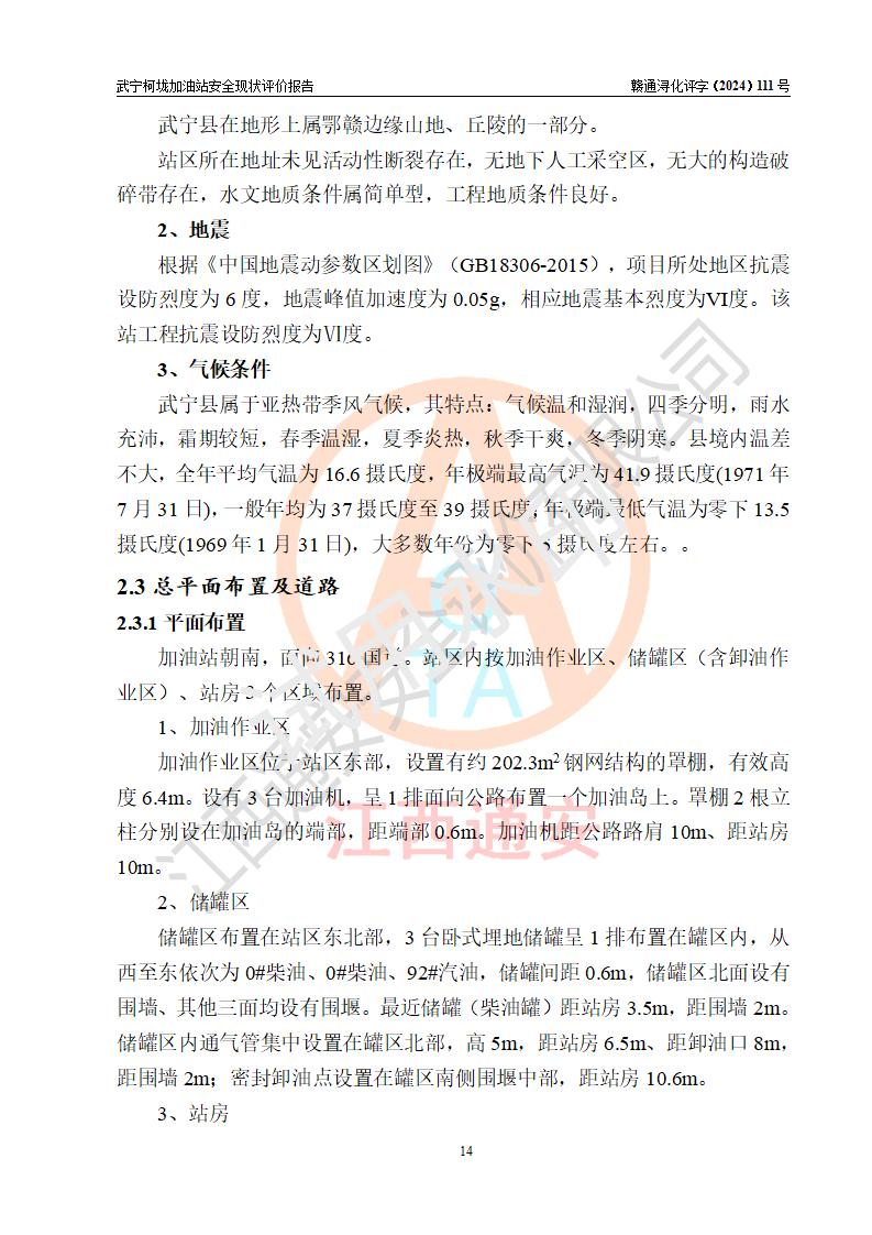 評價報(bào)告名稱 | 武寧柯垅加油站安全現(xiàn)狀評價報(bào)告 | |||