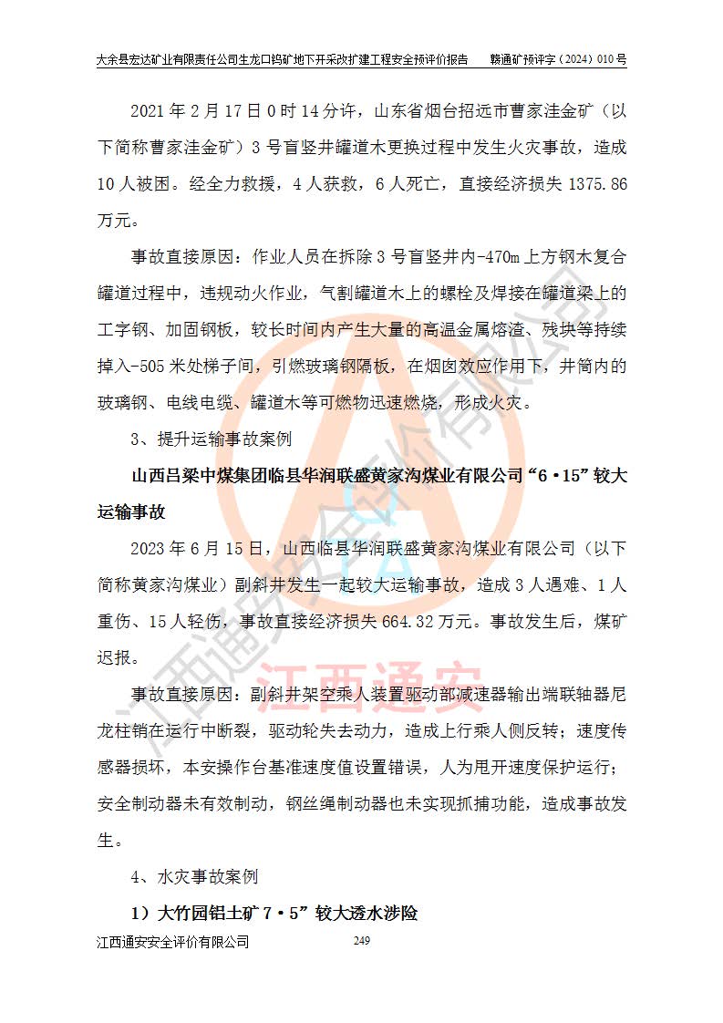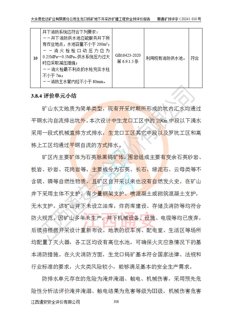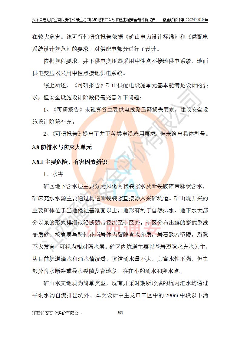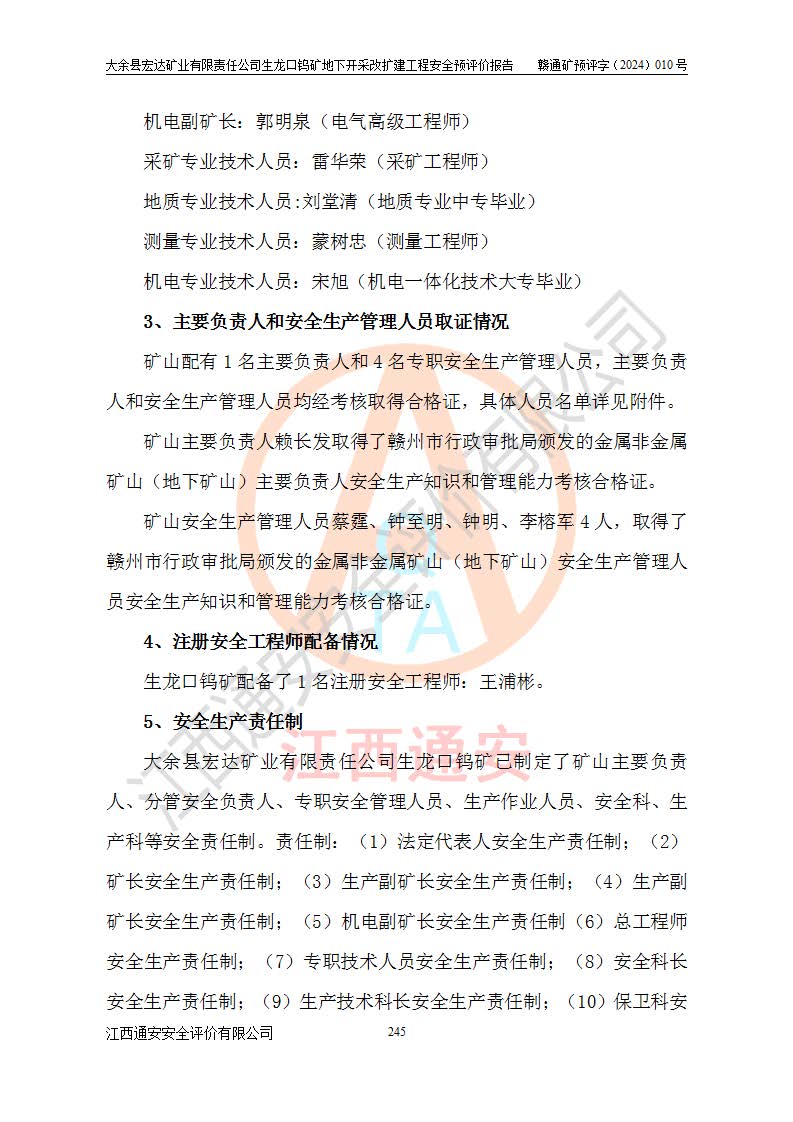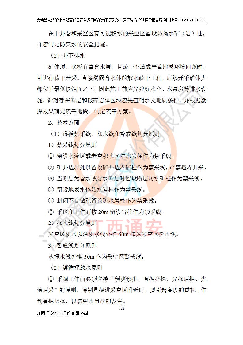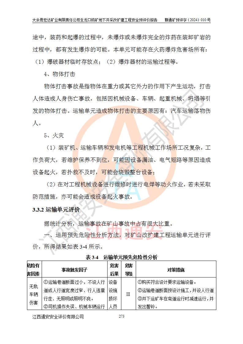 大余縣生龍口礦區(qū)鎢礦位于大余縣城北西 310°方位,距大余縣城直距 12 **,西接生龍口,北接蕩坪礦,南鄰黃木坑、西華山等礦區(qū),礦區(qū)正好是幾個(gè)礦區(qū)的銜接部位。隸屬大余縣浮江鄉(xiāng)管轄。其地理位置為:東經(jīng) 114°17′03″--114°20′11″;北緯 25°27′15″ --25 ° 28 ′ 10″ 。 礦 區(qū) 面 積 為5.97平方**。區(qū)內(nèi)交通較為方便,礦區(qū)東西兩側(cè)不遠(yuǎn)處均有公路通過(guò),西側(cè)為大余至崇義公路,東側(cè)為 大 余 至 蕩 坪 公路,通過(guò)這兩條公路均可向南與大余縣城與 323 國(guó)道相接,至贛州市區(qū)約100 **,往廣東省韶關(guān)贛韶高速約 150 **,向北達(dá)崇義縣城。 生龍口鎢礦建礦以前只有一些小規(guī)模的民采,2003年大余縣宏達(dá)礦業(yè)有限公司取得采礦權(quán),形成規(guī)模采礦,后期采礦證經(jīng)過(guò)多次延續(xù)與變更。生龍口鎢礦共設(shè)置了高棟上、羅坑、生龍口3個(gè)開(kāi)采工區(qū)。3個(gè)工區(qū)相距3**左右。 2024年9月江西晶楚工程技術(shù)有限公司編制完成了《大余縣宏達(dá)礦業(yè)有限責(zé)任公司生龍口鎢礦地下開(kāi)采改擴(kuò)建工程可行性研究報(bào)告》(以下簡(jiǎn)稱(chēng)《可研報(bào)告》)。2024年12月26日取得《江西省工業(yè)和信息化廳關(guān)于大余縣宏達(dá)礦業(yè)有限責(zé)任公司生龍口鎢礦地下開(kāi)采改擴(kuò)建工程核準(zhǔn)的批復(fù)》(贛工信有色〔2024〕49號(hào))。 根據(jù)《可研報(bào)告》,可研設(shè)計(jì)范圍為生龍口鎢礦礦區(qū)礦權(quán)范圍,平面范圍由15個(gè)拐點(diǎn)組成,開(kāi)采標(biāo)高范圍為746m~200m。本次開(kāi)采對(duì)象為開(kāi)采范圍內(nèi)的35條工業(yè)礦體,其中,大部分礦體以及接近地表處存在采空區(qū),為保護(hù)地表及井下安全作業(yè),需留設(shè)地表保安礦柱及采空區(qū)隔離礦柱;其中,高棟上工區(qū)V198、V197礦體因位于采空區(qū)后方,且資源量較少,暫不列為開(kāi)采對(duì)象;生龍口工區(qū)V98、V85、V84因利舊324m主平硐口,故作為保安礦柱,暫不予開(kāi)采??裳?*采用淺孔留礦嗣后充填法??裳?*采用平硐+盲斜坡道開(kāi)拓,一次性整體設(shè)計(jì),各工區(qū)礦石和廢石均通過(guò)溜井下放至相應(yīng)區(qū)段*低開(kāi)采中段、通過(guò)UK-6礦用自卸卡車(chē)裝載,利用內(nèi)部運(yùn)輸巷道和溜井運(yùn)至生龍口工區(qū)324m平硐(主運(yùn)輸巷道)集中出礦,各工區(qū)礦石、廢石分別運(yùn)至324平硐口附近的選礦廠和砂石骨料加工廠。井下中段**采用無(wú)軌運(yùn)輸。礦區(qū)采用分區(qū)通風(fēng)系統(tǒng)、每個(gè)工區(qū)采用單翼對(duì)角抽出機(jī)械式通風(fēng)方式;新風(fēng)主要從平硐口進(jìn)風(fēng),回風(fēng)井回風(fēng)。 本項(xiàng)目已經(jīng)符合編制安全預(yù)評(píng)價(jià)的前置條件,根據(jù)《中華人民共和國(guó)安全生產(chǎn)法》、《建設(shè)項(xiàng)目安全設(shè)施“三同時(shí)”監(jiān)督管理辦法》(**安全生產(chǎn)監(jiān)督管理局令第36號(hào))、《金屬非金屬礦山建設(shè)項(xiàng)目安全設(shè)施目錄》(**安全生產(chǎn)監(jiān)督管理總局令第75號(hào))和《**礦山安全監(jiān)察局關(guān)于進(jìn)一步加強(qiáng)非煤礦山安全生產(chǎn)行政許可工作的通知》(礦安〔2024〕70號(hào))的規(guī)定,大余縣宏達(dá)礦業(yè)有限責(zé)任公司2024年10月8日委托江西通安安全評(píng)價(jià)有限公司對(duì)其生龍口鎢礦地下開(kāi)采改擴(kuò)建工程進(jìn)行安全預(yù)評(píng)價(jià)。 |