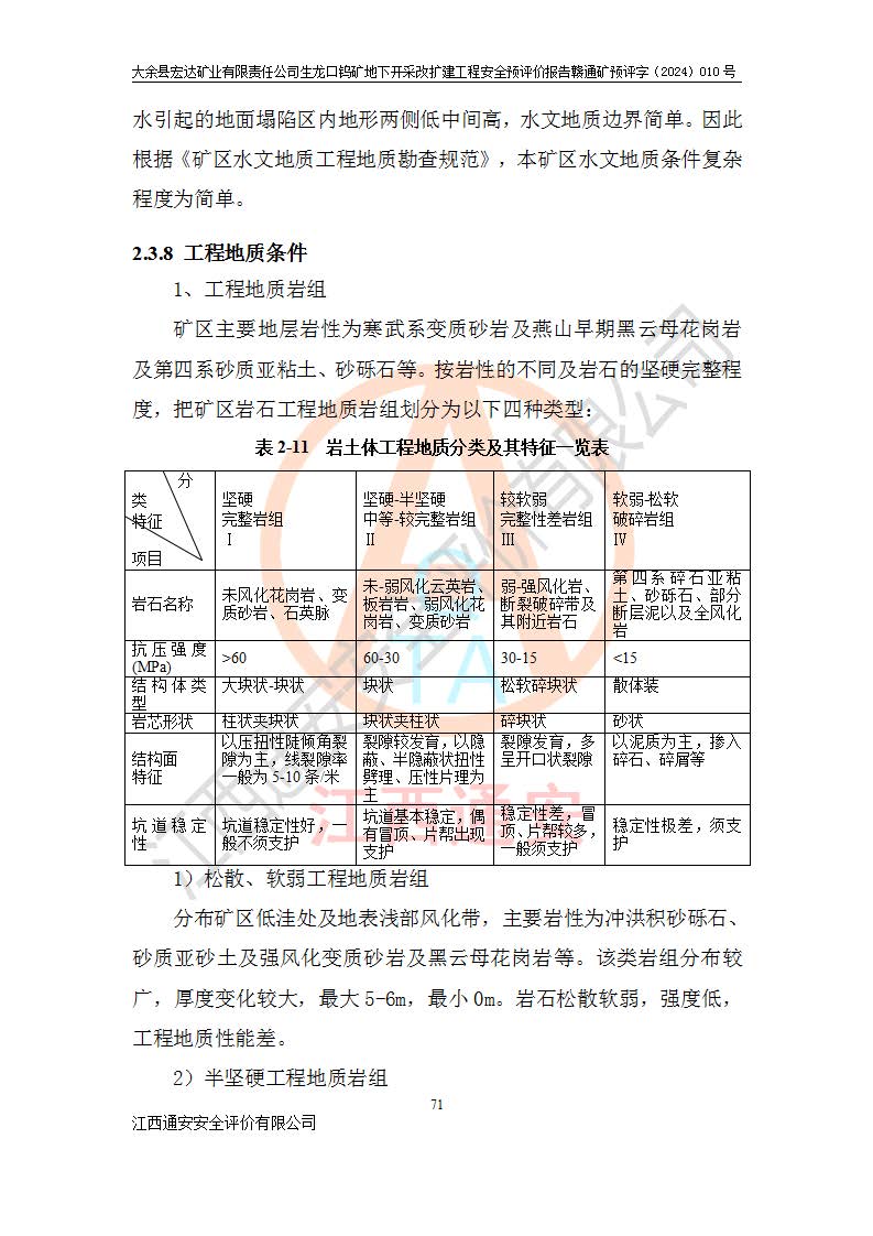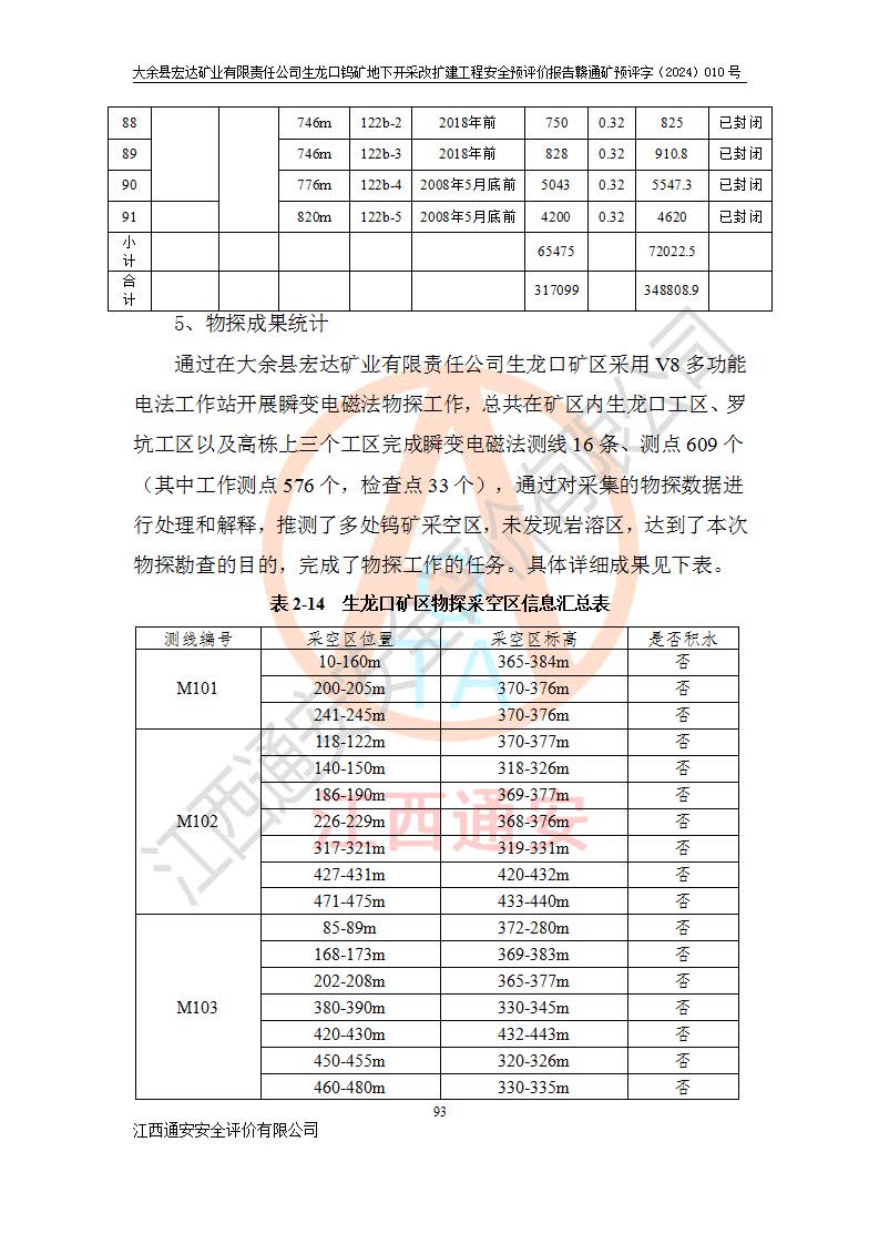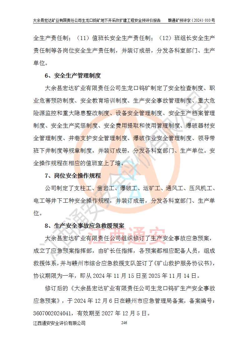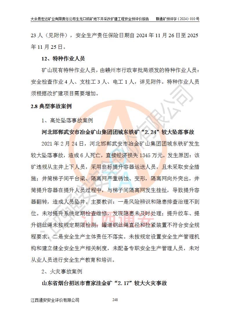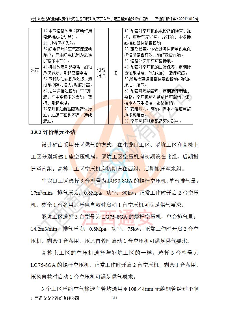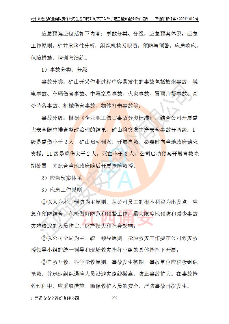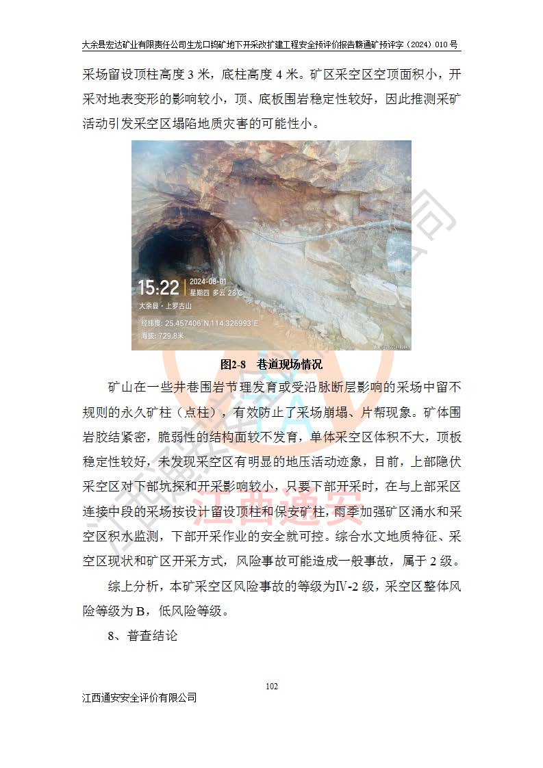 大余縣生龍口礦區(qū)鎢礦位于大余縣城北西 310°方位,距大余縣城直距 12 **,西接生龍口,北接蕩坪礦,南鄰黃木坑、西華山等礦區(qū),礦區(qū)正好是幾個(gè)礦區(qū)的銜接部位。隸屬大余縣浮江鄉(xiāng)管轄。其地理位置為:東經(jīng) 114°17′03″--114°20′11″;北緯 25°27′15″ --25 ° 28 ′ 10″ 。 礦 區(qū) 面 積 為5.97平方**。區(qū)內(nèi)交通較為方便,礦區(qū)東西兩側(cè)不遠(yuǎn)處均有公路通過(guò),西側(cè)為大余至崇義公路,東側(cè)為 大 余 至 蕩 坪 公路,通過(guò)這兩條公路均可向南與大余縣城與 323 國(guó)道相接,至贛州市區(qū)約100 **,往廣東省韶關(guān)贛韶高速約 150 **,向北達(dá)崇義縣城。 生龍口鎢礦建礦以前只有一些小規(guī)模的民采,2003年大余縣宏達(dá)礦業(yè)有限公司取得采礦權(quán),形成規(guī)模采礦,后期采礦證經(jīng)過(guò)多次延續(xù)與變更。生龍口鎢礦共設(shè)置了高棟上、羅坑、生龍口3個(gè)開(kāi)采工區(qū)。3個(gè)工區(qū)相距3**左右。 2024年9月江西晶楚工程技術(shù)有限公司編制完成了《大余縣宏達(dá)礦業(yè)有限責(zé)任公司生龍口鎢礦地下開(kāi)采改擴(kuò)建工程可行性研究報(bào)告》(以下簡(jiǎn)稱(chēng)《可研報(bào)告》)。2024年12月26日取得《江西省工業(yè)和信息化廳關(guān)于大余縣宏達(dá)礦業(yè)有限責(zé)任公司生龍口鎢礦地下開(kāi)采改擴(kuò)建工程核準(zhǔn)的批復(fù)》(贛工信有色〔2024〕49號(hào))。 根據(jù)《可研報(bào)告》,可研設(shè)計(jì)范圍為生龍口鎢礦礦區(qū)礦權(quán)范圍,平面范圍由15個(gè)拐點(diǎn)組成,開(kāi)采標(biāo)高范圍為746m~200m。本次開(kāi)采對(duì)象為開(kāi)采范圍內(nèi)的35條工業(yè)礦體,其中,大部分礦體以及接近地表處存在采空區(qū),為保護(hù)地表及井下安全作業(yè),需留設(shè)地表保安礦柱及采空區(qū)隔離礦柱;其中,高棟上工區(qū)V198、V197礦體因位于采空區(qū)后方,且資源量較少,暫不列為開(kāi)采對(duì)象;生龍口工區(qū)V98、V85、V84因利舊324m主平硐口,故作為保安礦柱,暫不予開(kāi)采??裳?*采用淺孔留礦嗣后充填法??裳?*采用平硐+盲斜坡道開(kāi)拓,一次性整體設(shè)計(jì),各工區(qū)礦石和廢石均通過(guò)溜井下放至相應(yīng)區(qū)段*低開(kāi)采中段、通過(guò)UK-6礦用自卸卡車(chē)裝載,利用內(nèi)部運(yùn)輸巷道和溜井運(yùn)至生龍口工區(qū)324m平硐(主運(yùn)輸巷道)集中出礦,各工區(qū)礦石、廢石分別運(yùn)至324平硐口附近的選礦廠和砂石骨料加工廠。井下中段**采用無(wú)軌運(yùn)輸。礦區(qū)采用分區(qū)通風(fēng)系統(tǒng)、每個(gè)工區(qū)采用單翼對(duì)角抽出機(jī)械式通風(fēng)方式;新風(fēng)主要從平硐口進(jìn)風(fēng),回風(fēng)井回風(fēng)。 本項(xiàng)目已經(jīng)符合編制安全預(yù)評(píng)價(jià)的前置條件,根據(jù)《中華人民共和國(guó)安全生產(chǎn)法》、《建設(shè)項(xiàng)目安全設(shè)施“三同時(shí)”監(jiān)督管理辦法》(**安全生產(chǎn)監(jiān)督管理局令第36號(hào))、《金屬非金屬礦山建設(shè)項(xiàng)目安全設(shè)施目錄》(**安全生產(chǎn)監(jiān)督管理總局令第75號(hào))和《**礦山安全監(jiān)察局關(guān)于進(jìn)一步加強(qiáng)非煤礦山安全生產(chǎn)行政許可工作的通知》(礦安〔2024〕70號(hào))的規(guī)定,大余縣宏達(dá)礦業(yè)有限責(zé)任公司2024年10月8日委托江西通安安全評(píng)價(jià)有限公司對(duì)其生龍口鎢礦地下開(kāi)采改擴(kuò)建工程進(jìn)行安全預(yù)評(píng)價(jià)。 |
