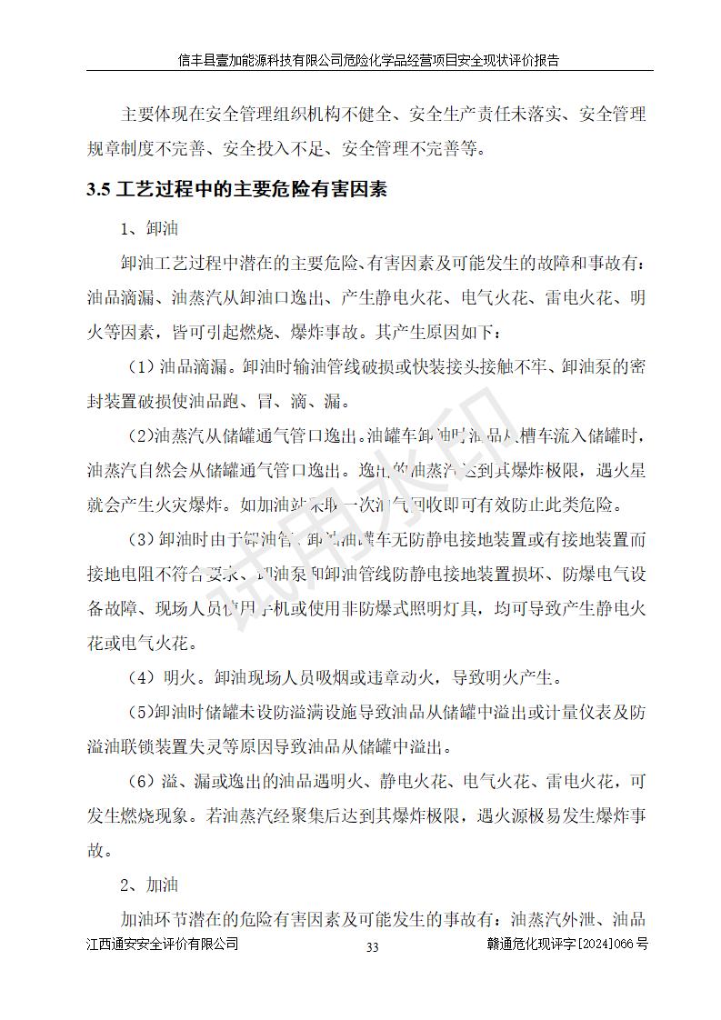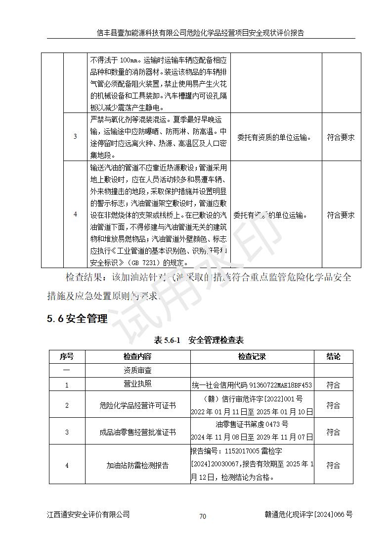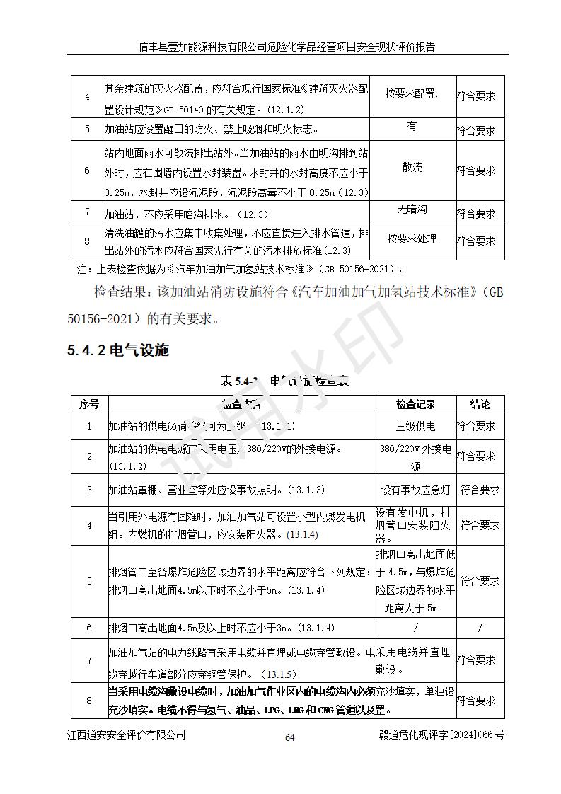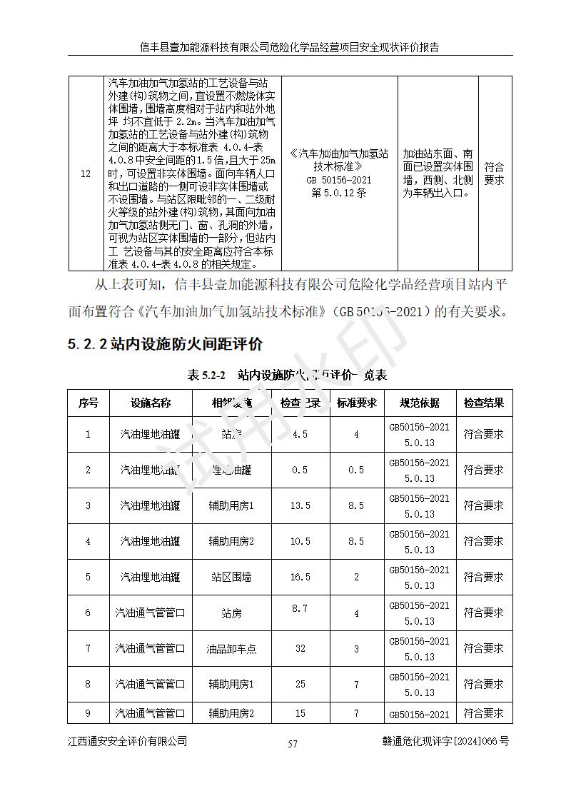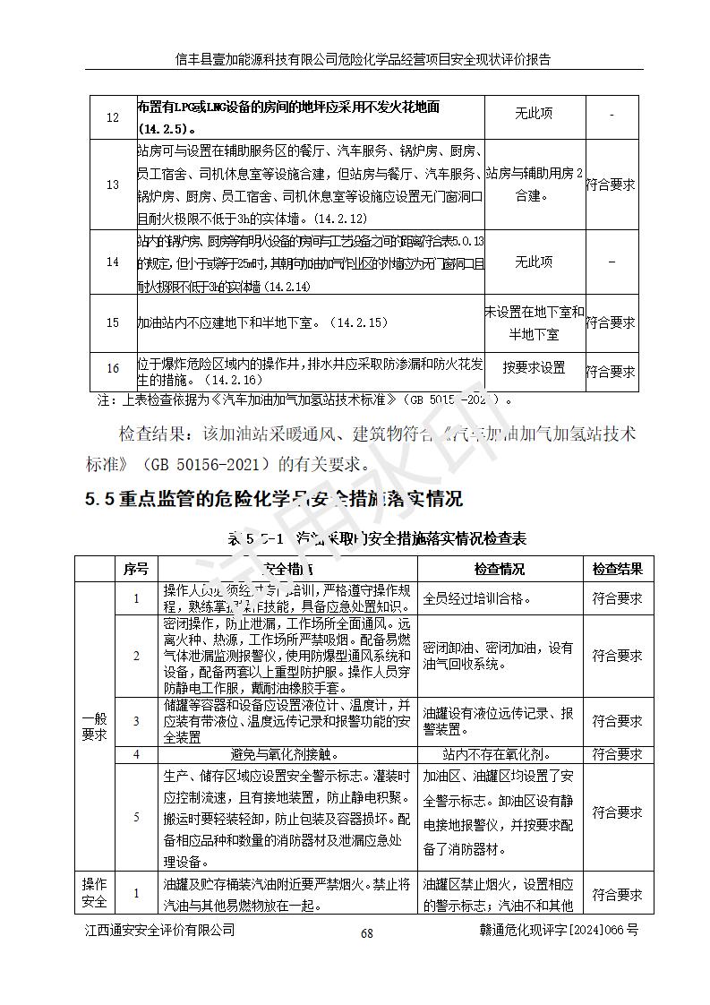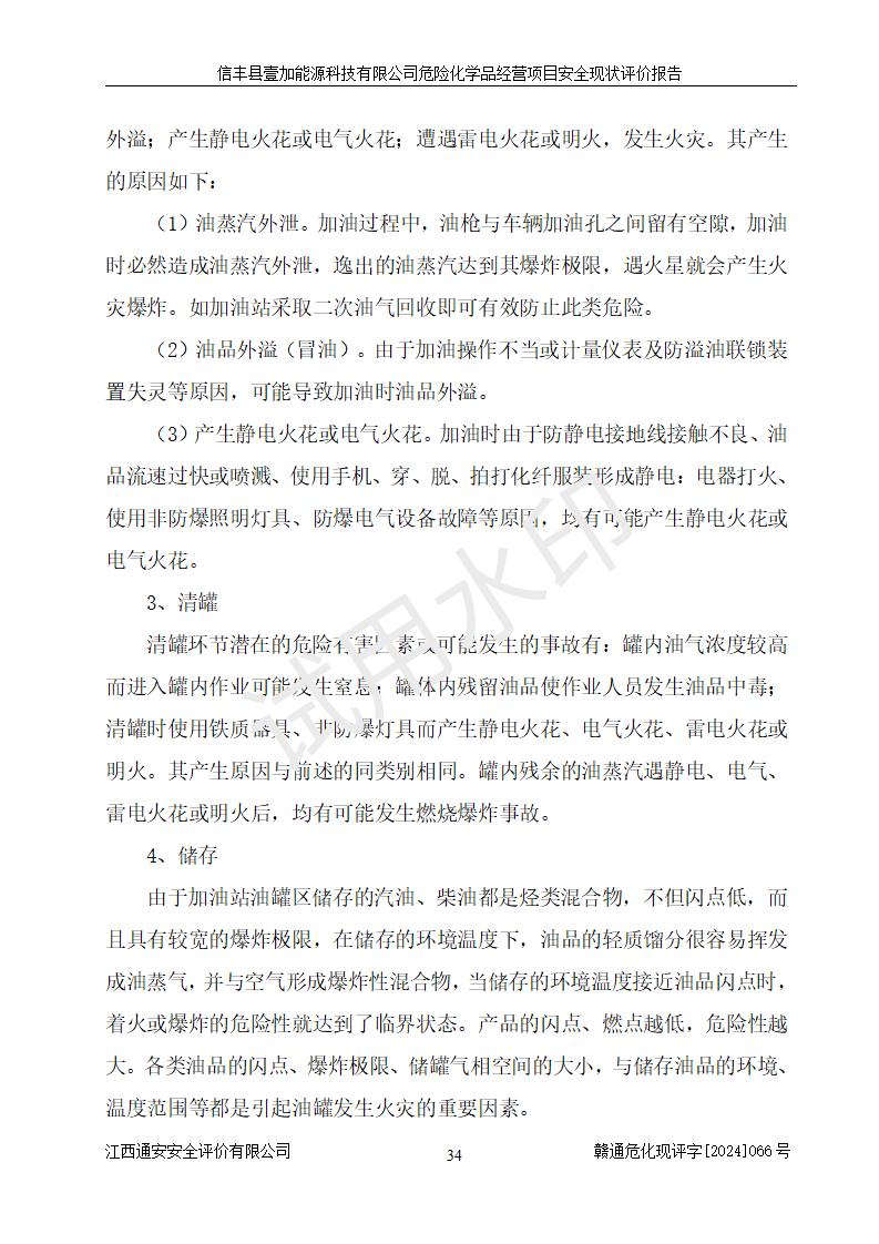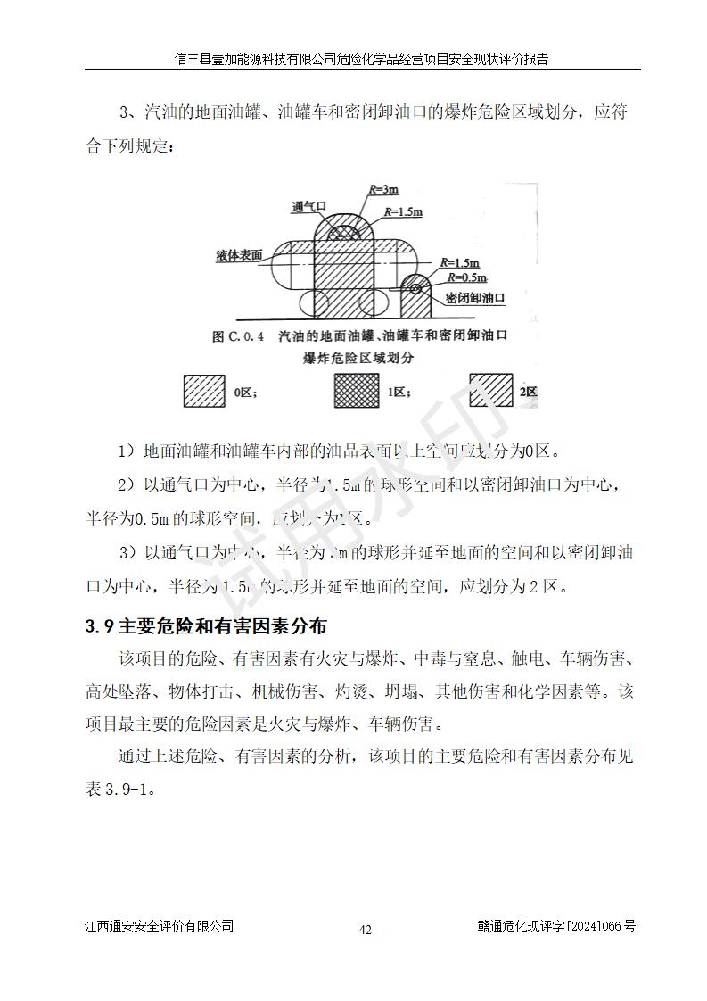 項(xiàng)目簡(jiǎn)介 | 信豐縣壹加能源科技有限公司成立于2024年09月27日,地址位于信豐縣大塘埠鎮(zhèn)大塘村坑里組,法定**人為戴連智,現(xiàn)有員工6人,其中安全管理人員1人,注冊(cè)資本伍拾萬(wàn)元整,經(jīng)營(yíng)范圍為一般項(xiàng)目:潤(rùn)滑油銷(xiāo)售,汽車(chē)零配件零售,汽車(chē)服務(wù)等。 信豐縣壹加能源科技有限公司2024年9月20日與信豐縣大坪路加油站簽訂了租賃經(jīng)營(yíng)合同,由公司負(fù)責(zé)租賃期間加油站的經(jīng)營(yíng)。信豐縣大坪路加油站2022年01月11日取得了危險(xiǎn)化學(xué)品經(jīng)營(yíng)許可證,登記編號(hào)為(贛)信行審危許字[2022]001號(hào),經(jīng)營(yíng)方式為零售(帶有儲(chǔ)存設(shè)施經(jīng)營(yíng)),許可范圍為汽油、柴油,**期限為2022年01月11日至2025年01月10日。該加油站2024年10月09日取得了成品油零售經(jīng)營(yíng)批準(zhǔn)證書(shū),編號(hào)為油零售證書(shū)第虔0473號(hào),**期限為2024年11月08日至2029年11月07日。加油站設(shè)有4臺(tái)埋地油罐,分別為1臺(tái)50m30#柴油臥式儲(chǔ)罐、2臺(tái)40m392#汽油臥式油罐和1臺(tái)40m395#汽油臥式油罐,總儲(chǔ)存能力為145m3(柴油折半),為二級(jí)加油站。加油區(qū)設(shè)有4臺(tái)四槍加油機(jī)。該加油站目前運(yùn)行正常。 | |||