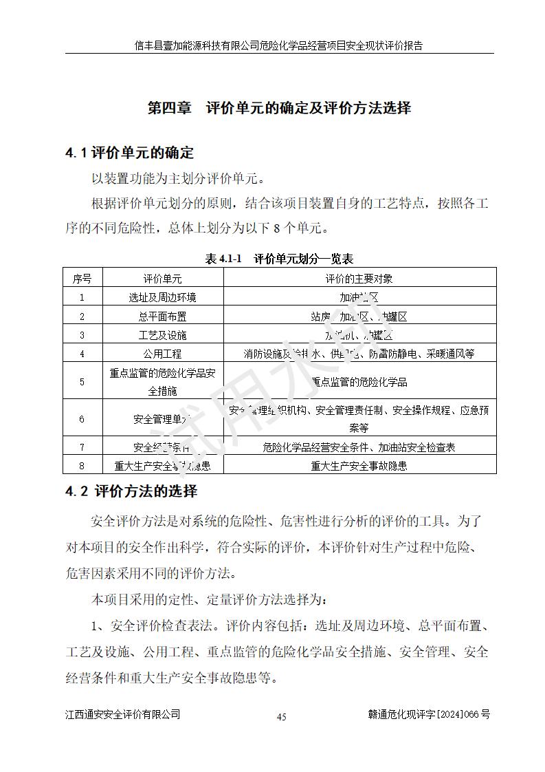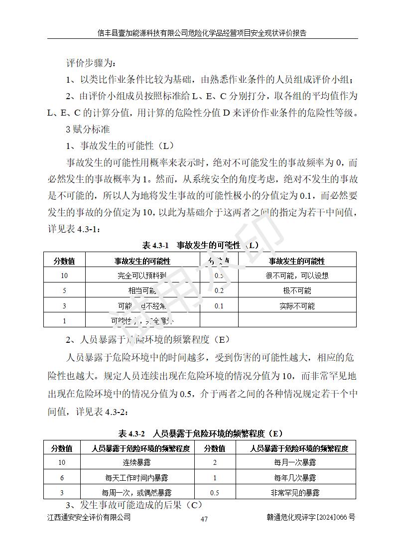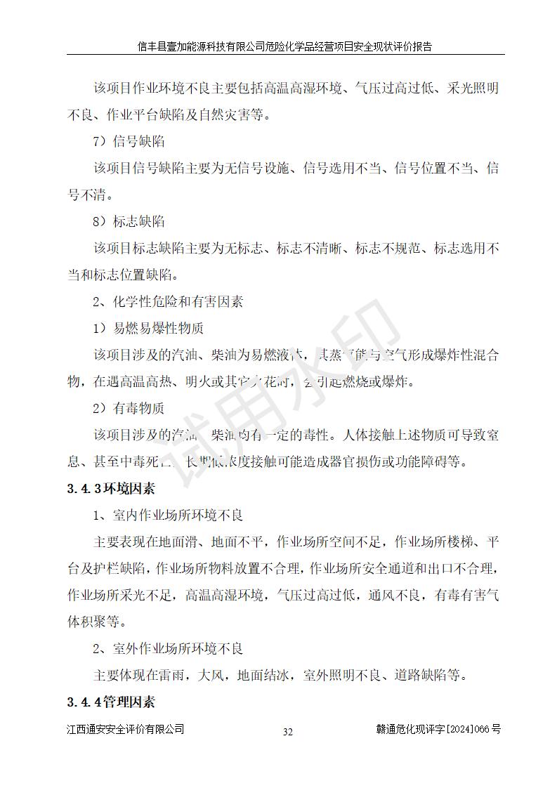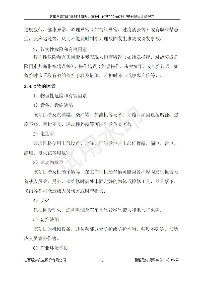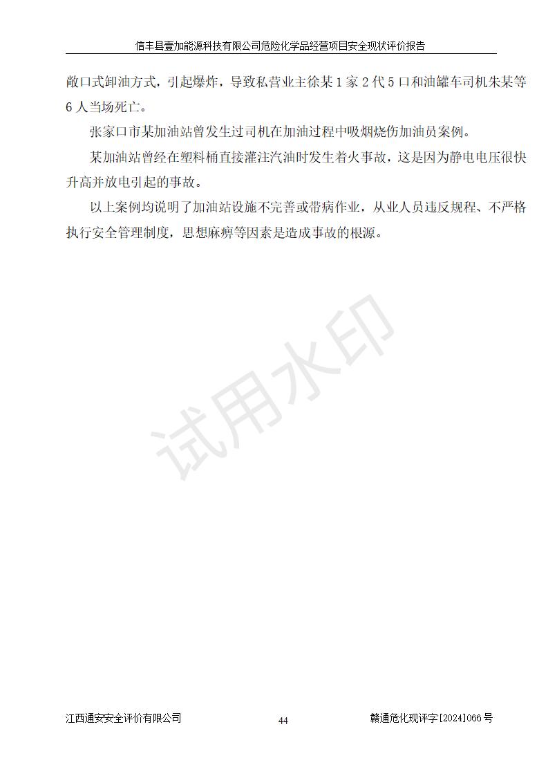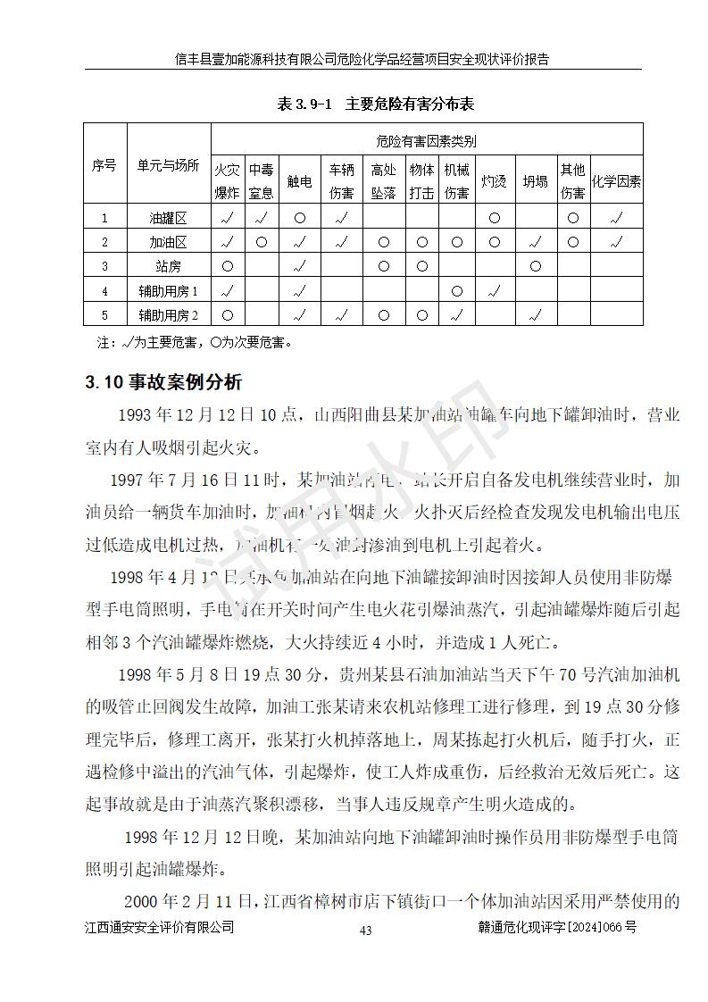 項(xiàng)目簡(jiǎn)介 | 信豐縣壹加能源科技有限公司成立于2024年09月27日,地址位于信豐縣大塘埠鎮(zhèn)大塘村坑里組,法定**人為戴連智,現(xiàn)有員工6人,其中安全管理人員1人,注冊(cè)資本伍拾萬(wàn)元整,經(jīng)營(yíng)范圍為一般項(xiàng)目:潤(rùn)滑油銷(xiāo)售,汽車(chē)零配件零售,汽車(chē)服務(wù)等。 信豐縣壹加能源科技有限公司2024年9月20日與信豐縣大坪路加油站簽訂了租賃經(jīng)營(yíng)合同,由公司負(fù)責(zé)租賃期間加油站的經(jīng)營(yíng)。信豐縣大坪路加油站2022年01月11日取得了危險(xiǎn)化學(xué)品經(jīng)營(yíng)許可證,登記編號(hào)為(贛)信行審危許字[2022]001號(hào),經(jīng)營(yíng)方式為零售(帶有儲(chǔ)存設(shè)施經(jīng)營(yíng)),許可范圍為汽油、柴油,**期限為2022年01月11日至2025年01月10日。該加油站2024年10月09日取得了成品油零售經(jīng)營(yíng)批準(zhǔn)證書(shū),編號(hào)為油零售證書(shū)第虔0473號(hào),**期限為2024年11月08日至2029年11月07日。加油站設(shè)有4臺(tái)埋地油罐,分別為1臺(tái)50m30#柴油臥式儲(chǔ)罐、2臺(tái)40m392#汽油臥式油罐和1臺(tái)40m395#汽油臥式油罐,總儲(chǔ)存能力為145m3(柴油折半),為二級(jí)加油站。加油區(qū)設(shè)有4臺(tái)四槍加油機(jī)。該加油站目前運(yùn)行正常。 | |||