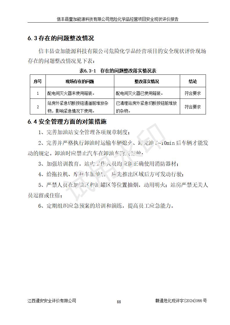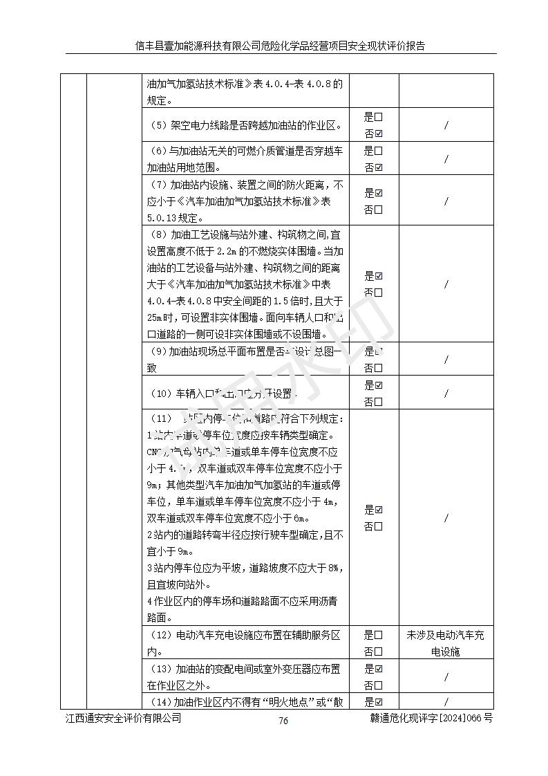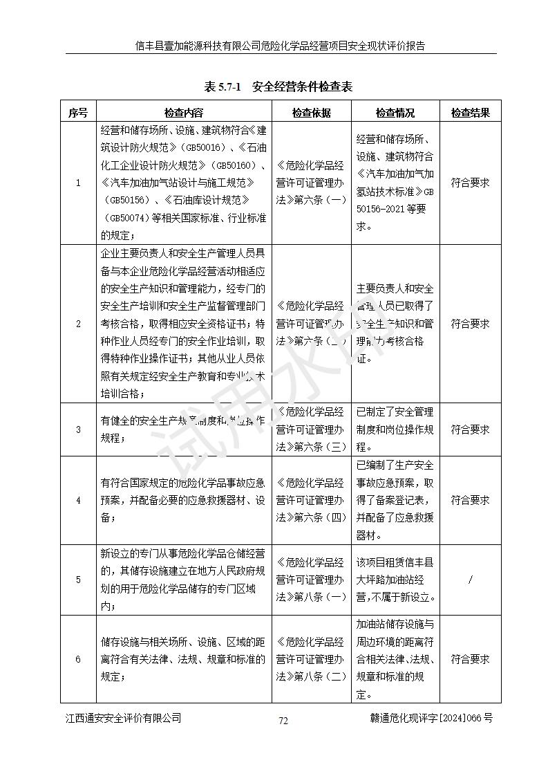 評(píng)價(jià)結(jié)論 | 信豐縣壹加能源科技有限公司危險(xiǎn)化學(xué)品經(jīng)營(yíng)項(xiàng)目安全現(xiàn)狀符合危險(xiǎn)化學(xué)品經(jīng)營(yíng)安全條件。 | |||