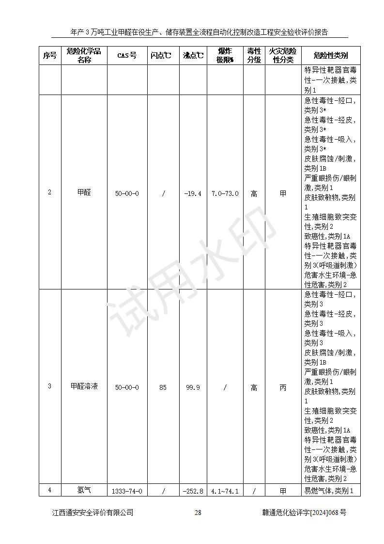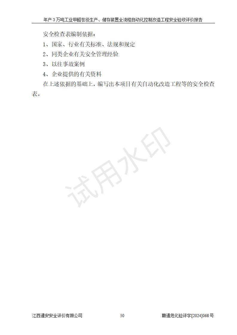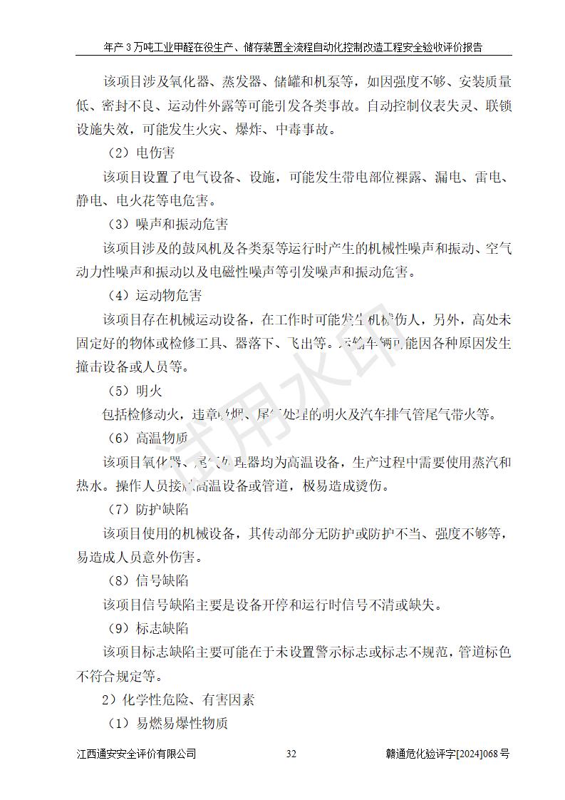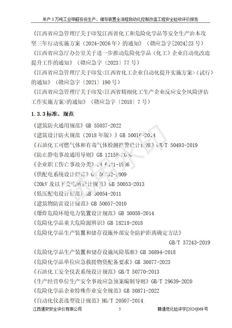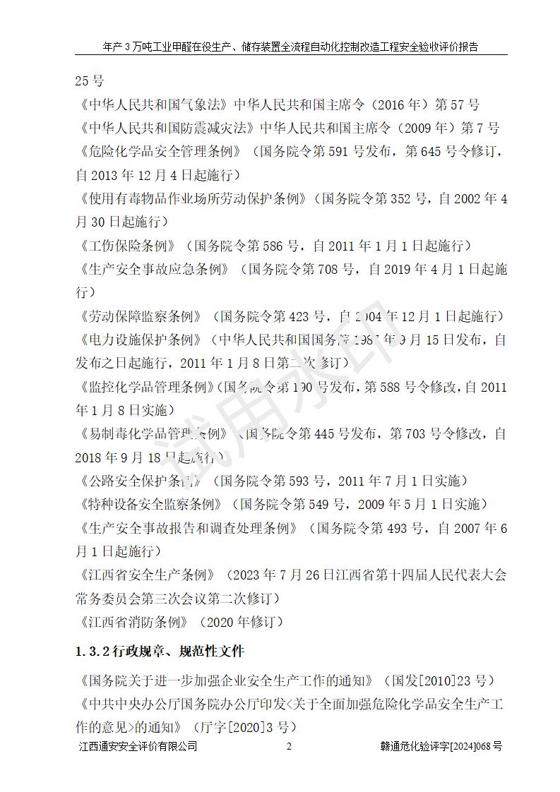 評(píng)價(jià)報(bào)告名稱 | 信豐縣東新合成材料有限公司年產(chǎn)3萬噸工業(yè)甲醛在役生產(chǎn)、儲(chǔ)存裝置全流程自動(dòng)化控制改造工程安全驗(yàn)收評(píng)價(jià)報(bào)告 | ||||||