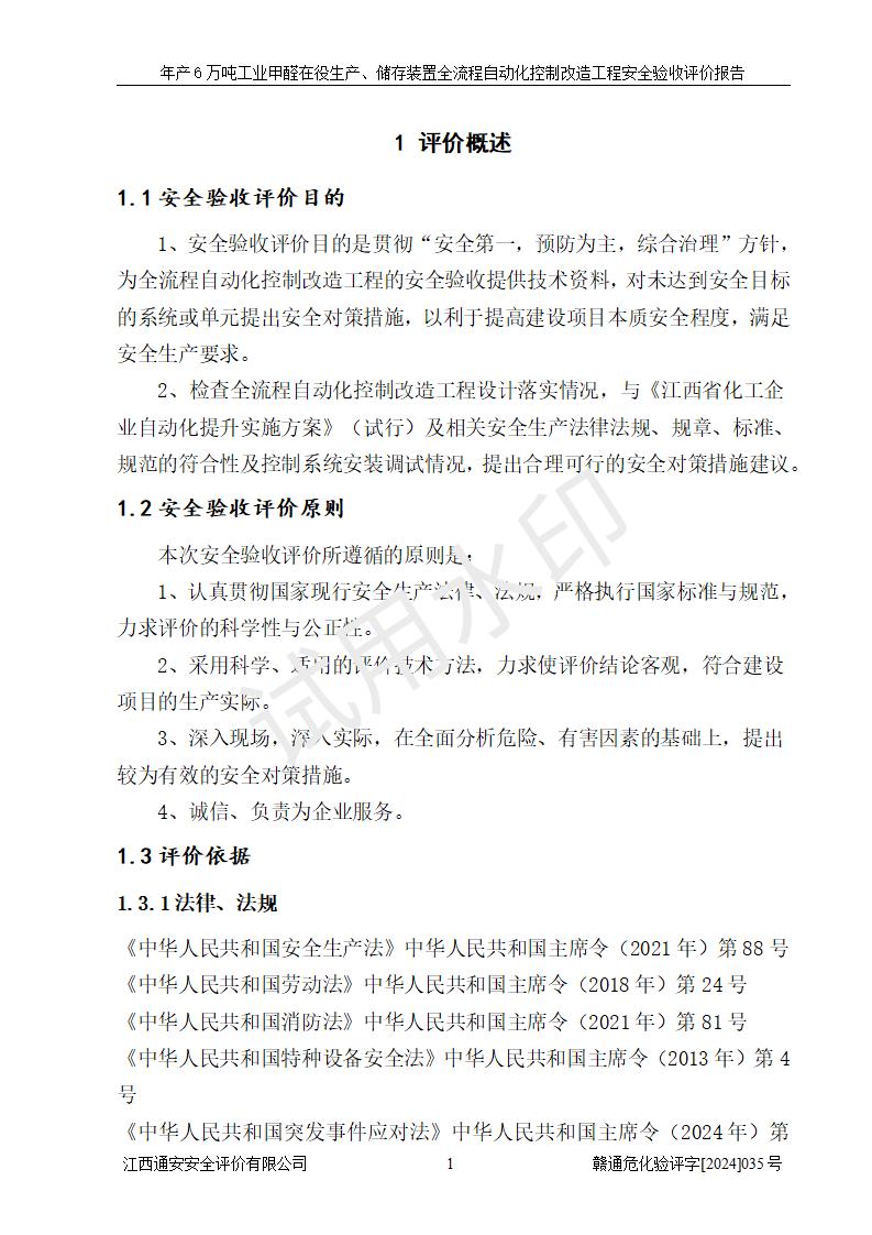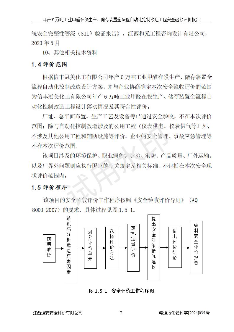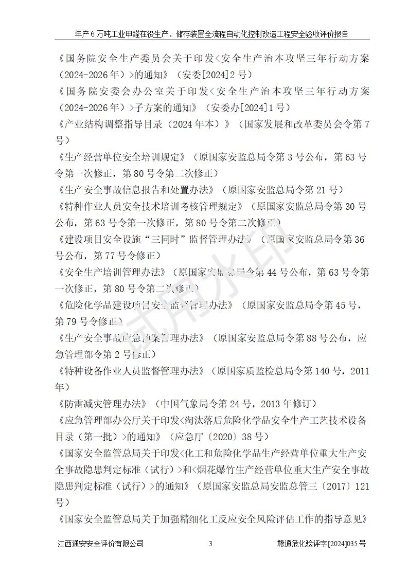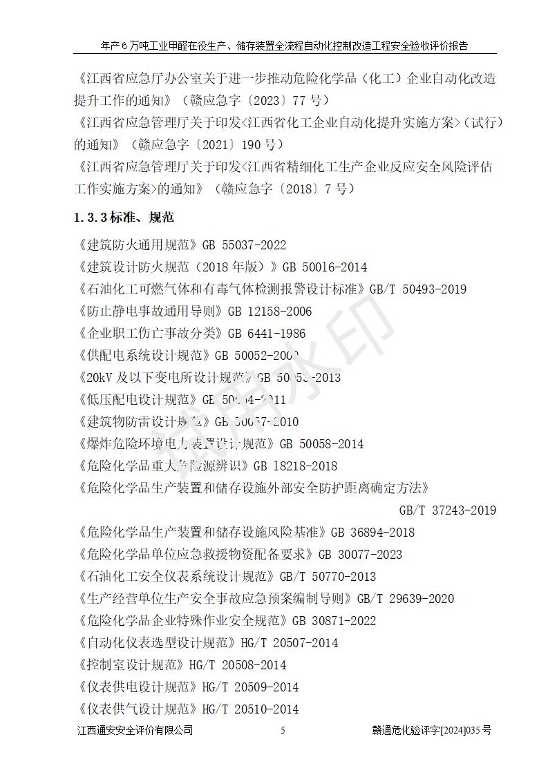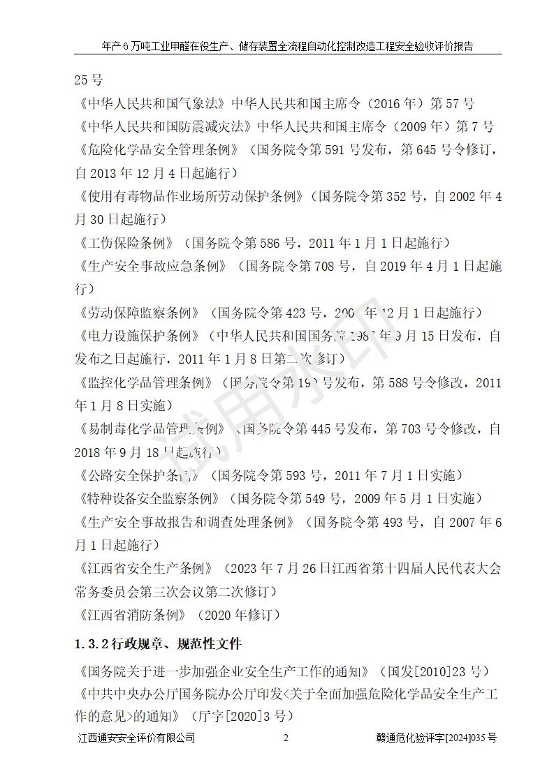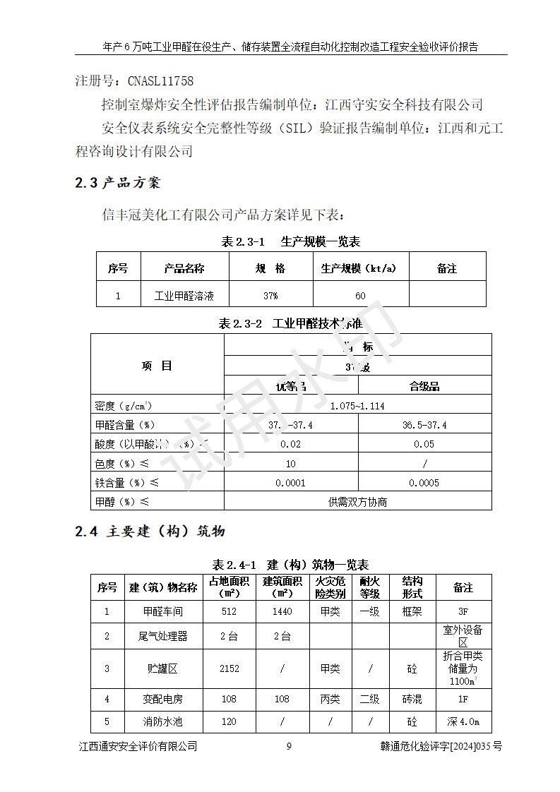 評(píng)價(jià)報(bào)告名稱 | 信豐冠美化工有限公司年產(chǎn)6萬(wàn)噸工業(yè)甲醛在役生產(chǎn)、儲(chǔ)存裝置全流程自動(dòng)化控制改造工程安全驗(yàn)收評(píng)價(jià)報(bào)告 | ||||||