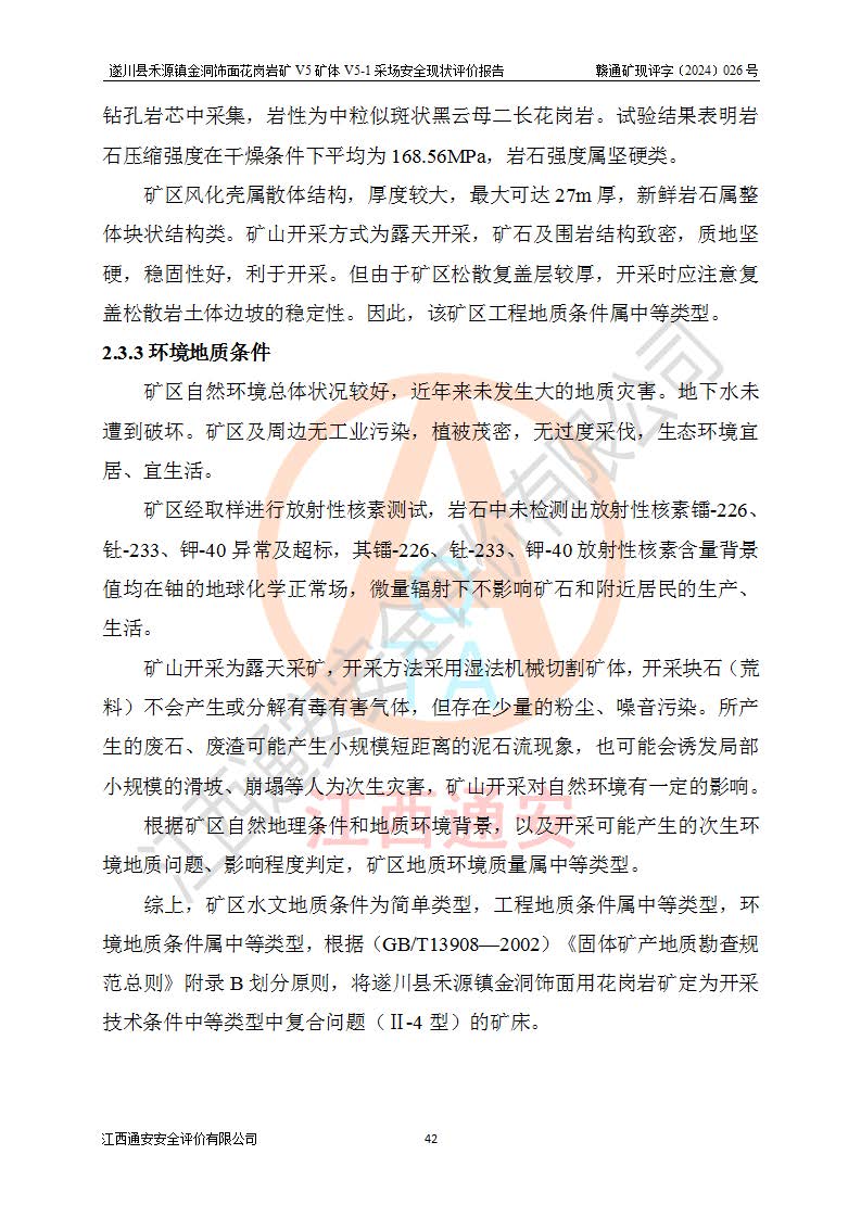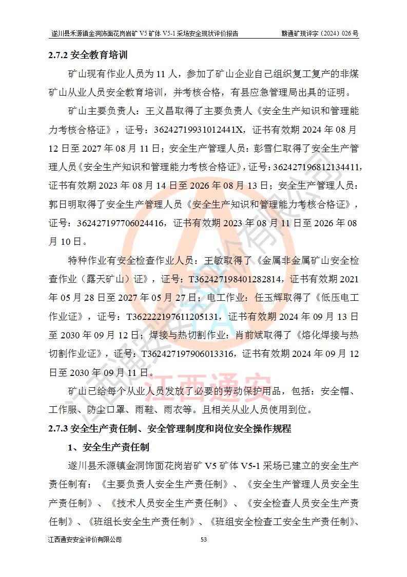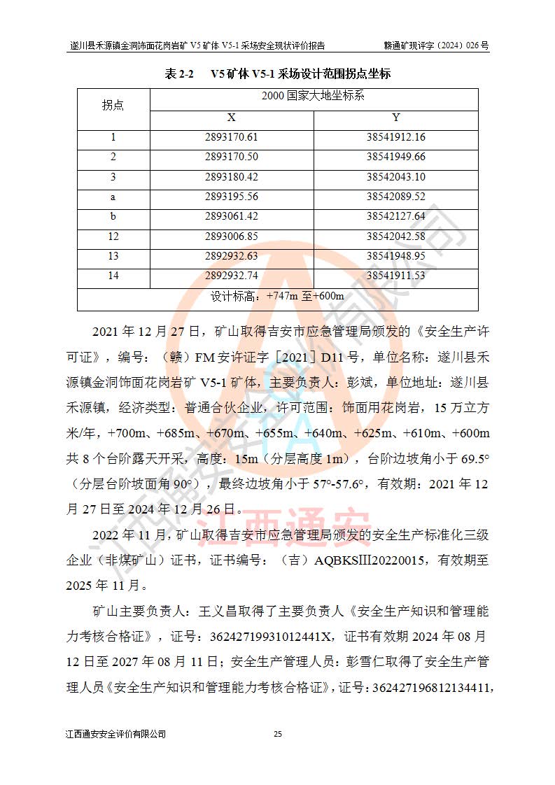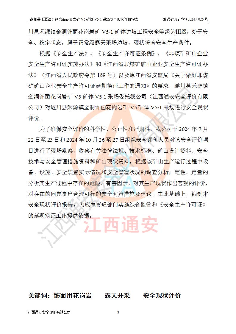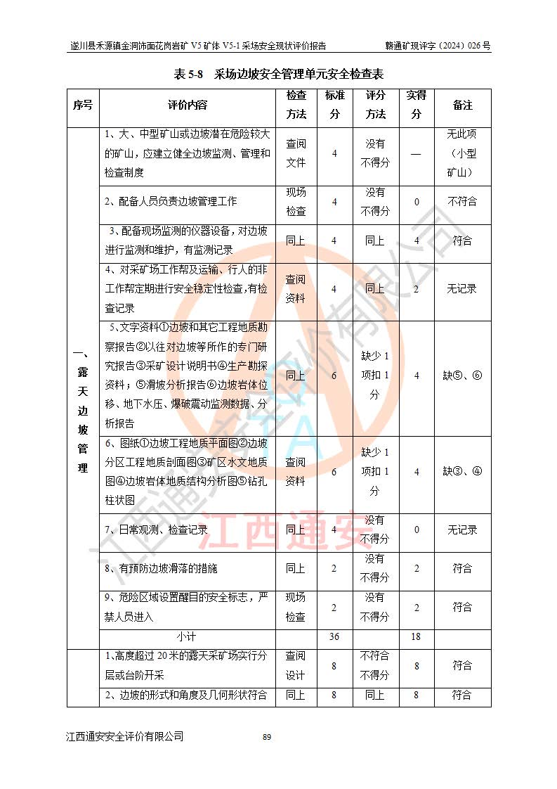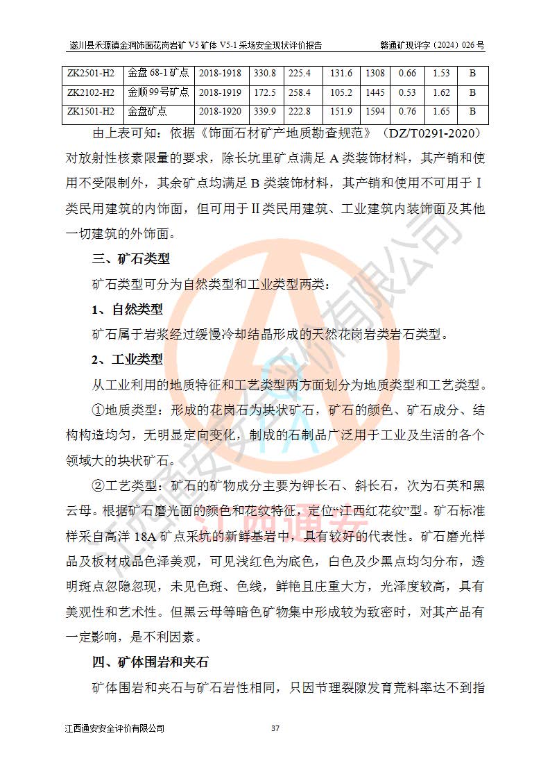 1、該評(píng)價(jià)項(xiàng)目中存在的主要危險(xiǎn)因素:火災(zāi),坍塌(滑坡),**傷害,機(jī)械傷害,觸電與雷擊,物體打擊,泥石流,起重傷害,高處墜落,淹溺,容器爆炸等危險(xiǎn)有害因素。 2、該評(píng)價(jià)項(xiàng)目中存在的有害因素包括:粉塵、噪聲與振動(dòng)、不良作業(yè)環(huán)境,如高溫、雷擊對(duì)礦山人員的傷害和其他不利的環(huán)境因素等。 3、該評(píng)價(jià)項(xiàng)目為非金屬露天礦山,無瓦斯和自燃發(fā)火危險(xiǎn),礦區(qū)范圍內(nèi)及周邊無較大水系,礦區(qū)水文地質(zhì)條件簡單。該礦山只是對(duì)飾面用石料進(jìn)行機(jī)械開采,不使用有毒有害危險(xiǎn)化學(xué)品藥劑。該評(píng)價(jià)項(xiàng)目使用的壓力容器為空壓機(jī)儲(chǔ)氣罐,其工作介質(zhì)為空氣,屬**性、非易燃介質(zhì)。綜合上述分析,本評(píng)價(jià)項(xiàng)目不存在重大危險(xiǎn)源。 上述主要危險(xiǎn)、有害因素在采取本報(bào)告第六章中提出的安全對(duì)策措施及建議后,能得到**控制。遂川縣禾源鎮(zhèn)金洞飾面花崗巖礦V5礦體V5-1采場(chǎng)設(shè)備、設(shè)施和場(chǎng)所符合**安全生產(chǎn)有關(guān)法律、法規(guī)、標(biāo)準(zhǔn)及規(guī)范的規(guī)定。礦山采用露天開采、公路開拓、汽車運(yùn)輸方式,安全生產(chǎn)條件一般,能滿足基本的安全生產(chǎn)活動(dòng);安全管理能滿足法規(guī)要求,礦山露天開采按照《安全設(shè)施設(shè)計(jì)》組織生產(chǎn)、具備安全生產(chǎn)條件。 |